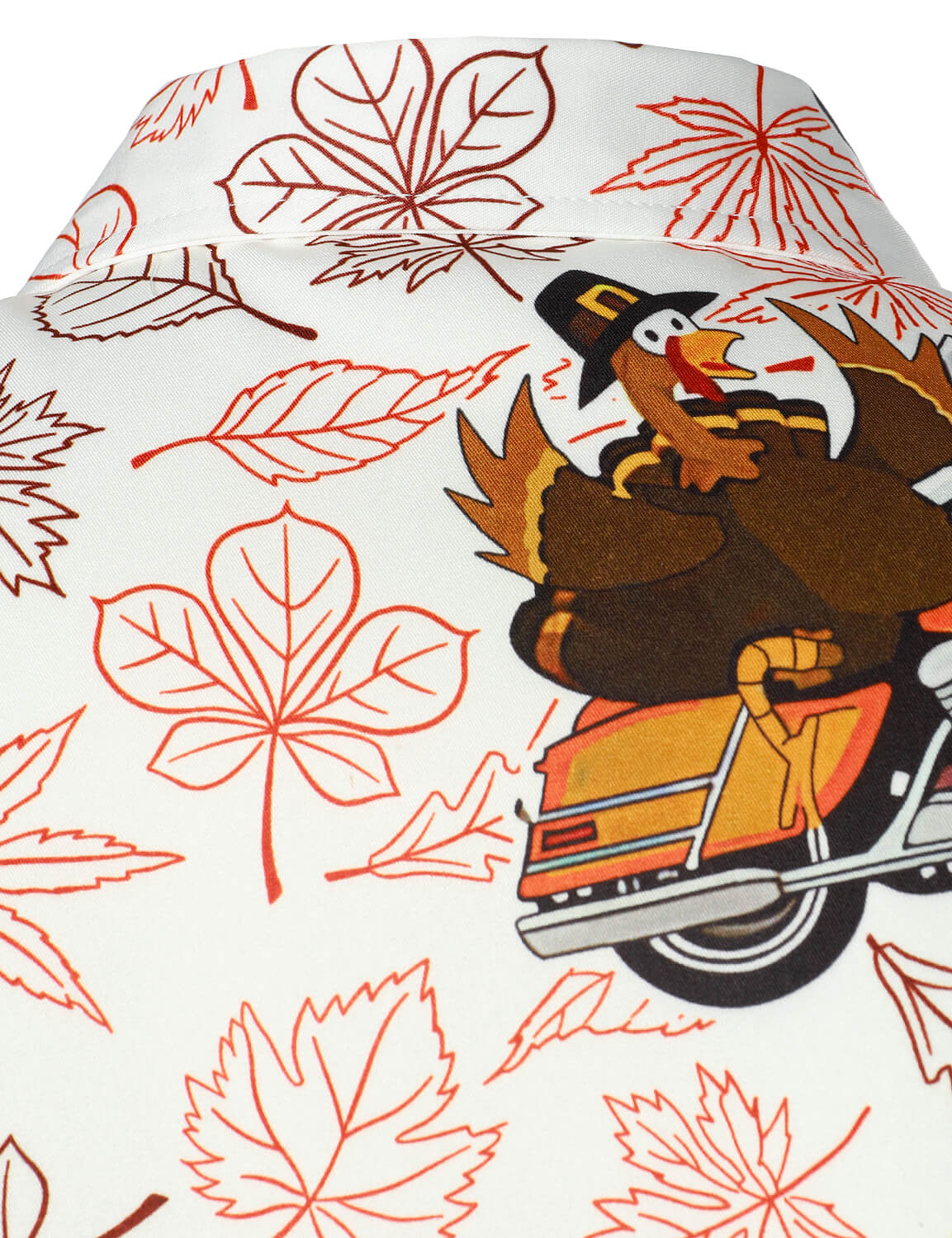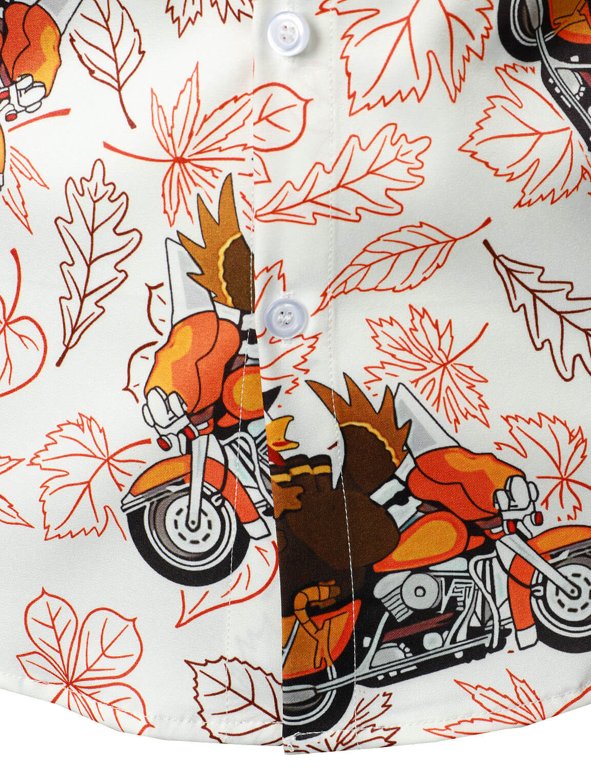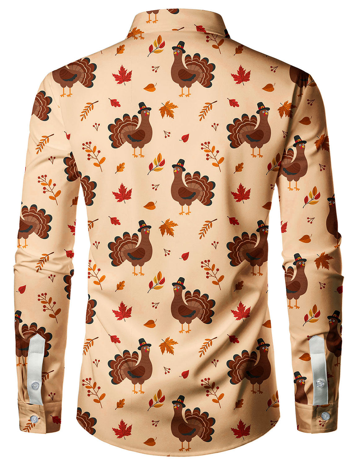 Men's Turkey Thanksgiving Fall Festival Cute Cartoon Holiday Button Up Long Sleeve Shirt