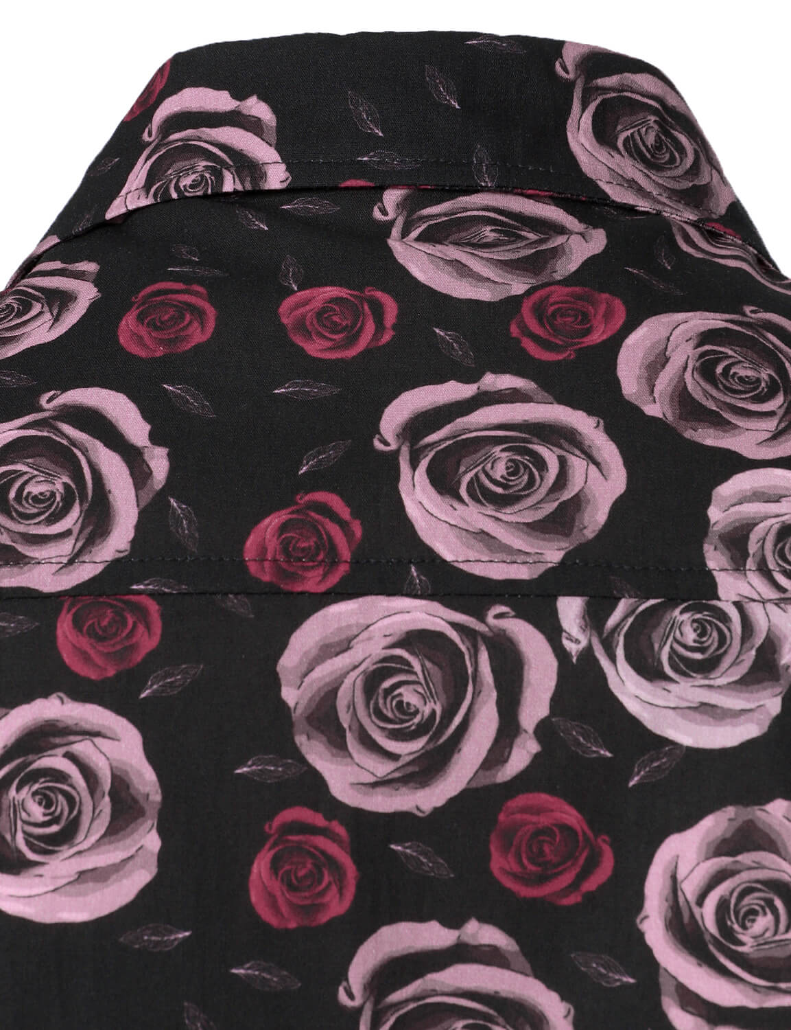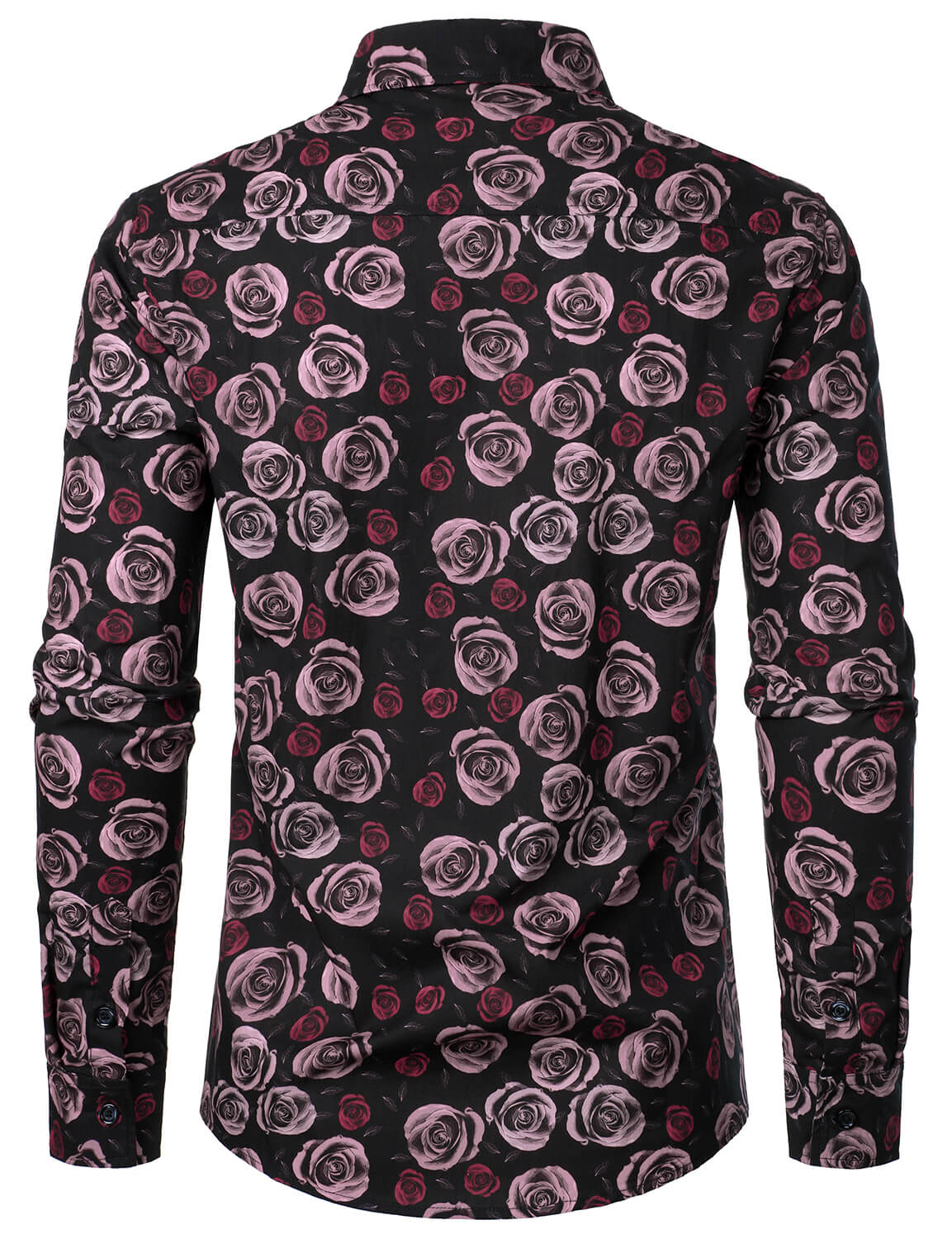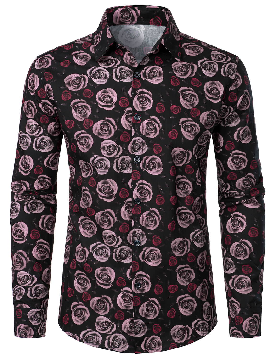 Men's Cotton Rose Print Casual Button Up Long Sleeve Shirt