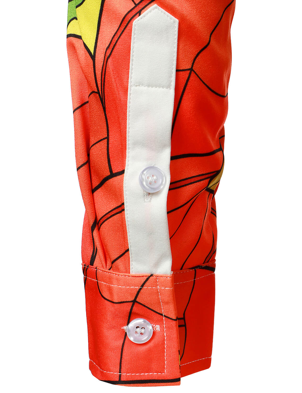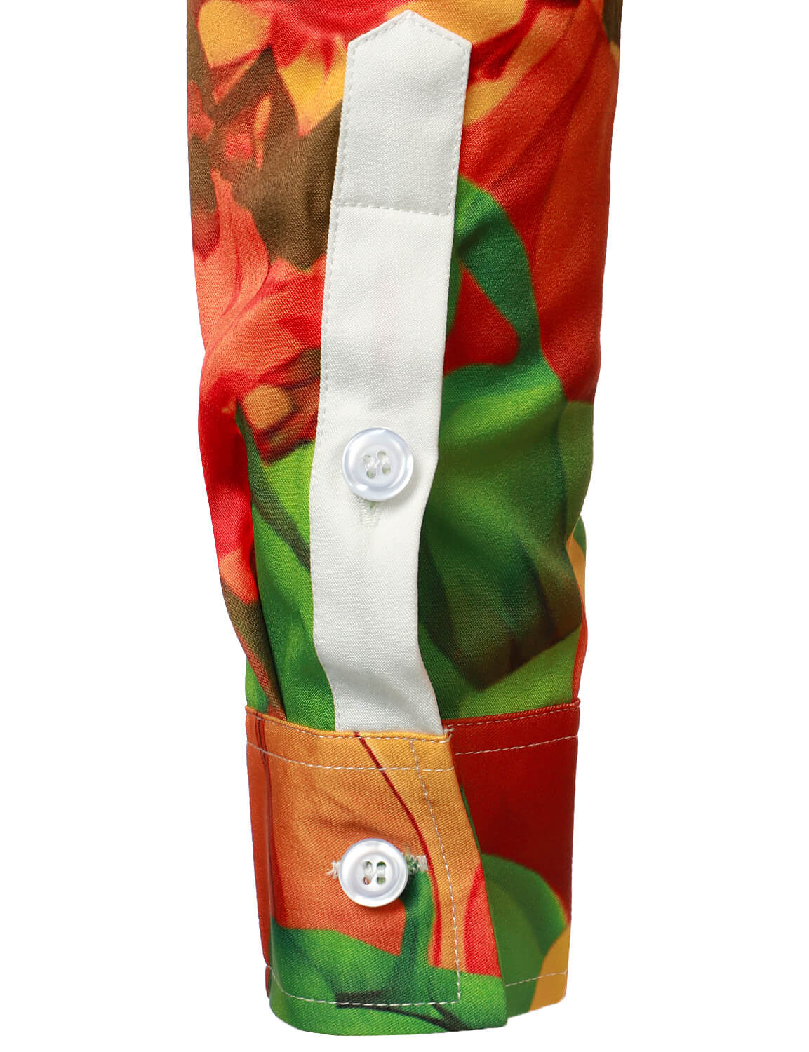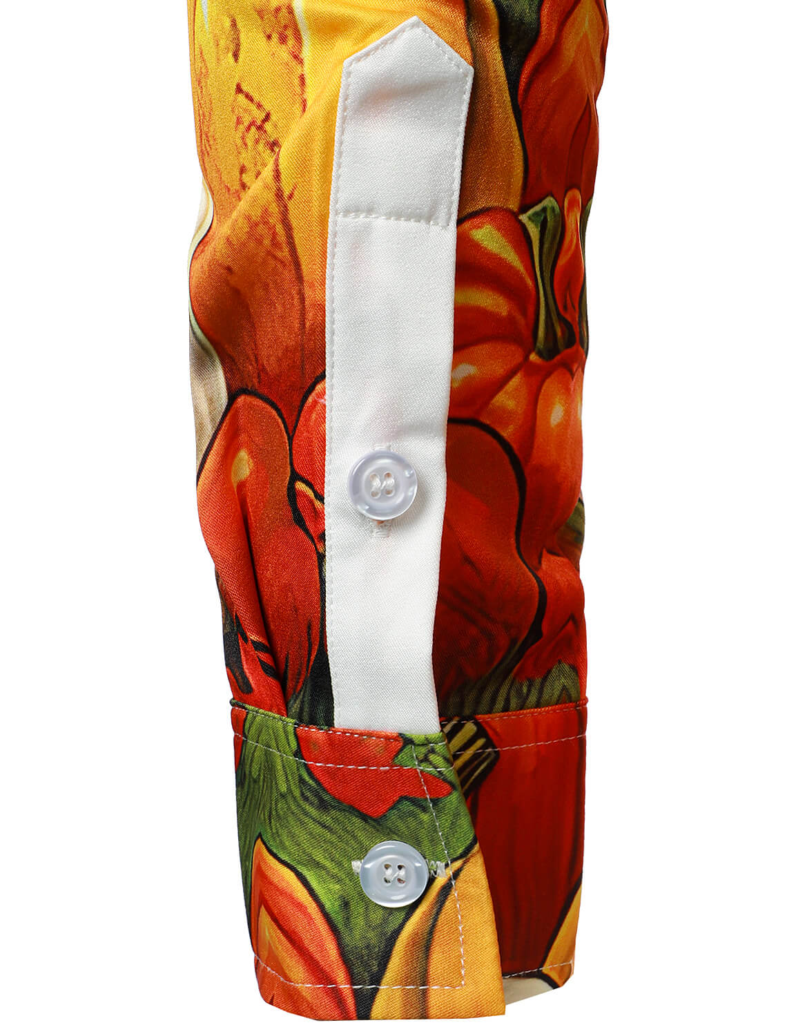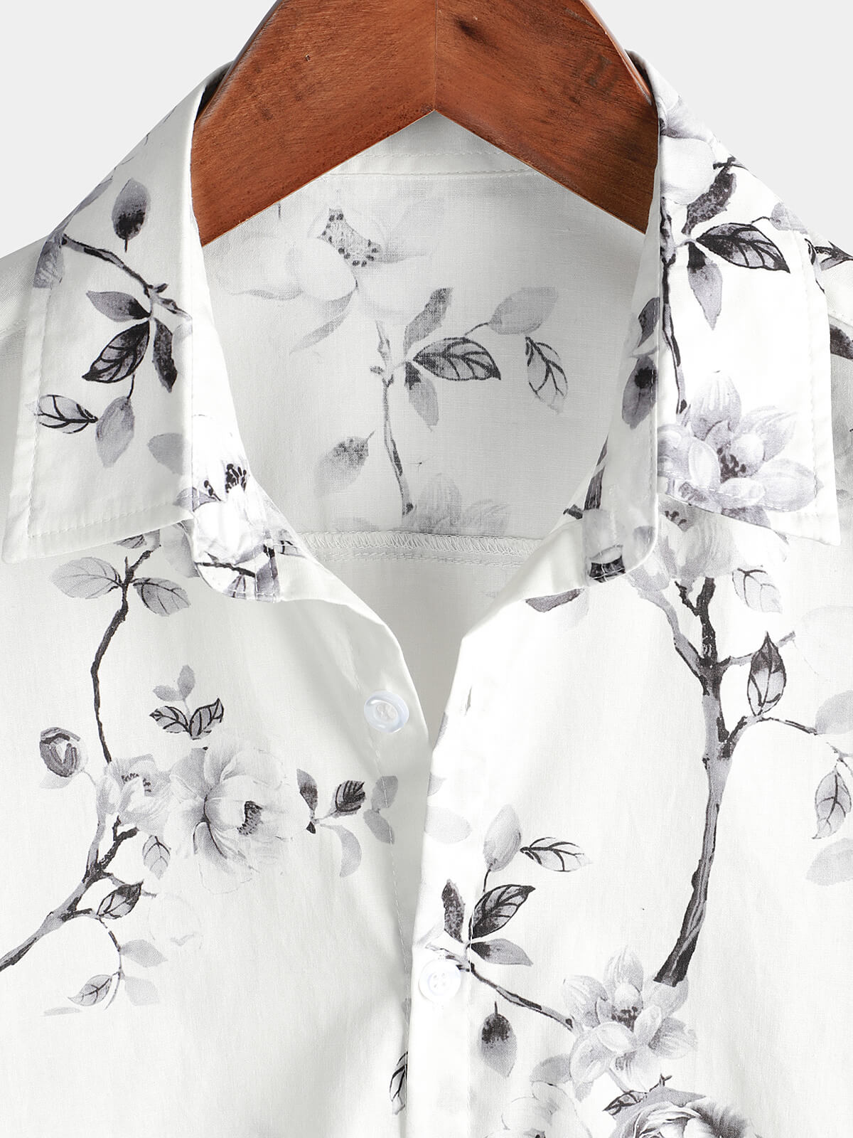 Men's Cotton Rose Print Casual Button Up Long Sleeve Shirt