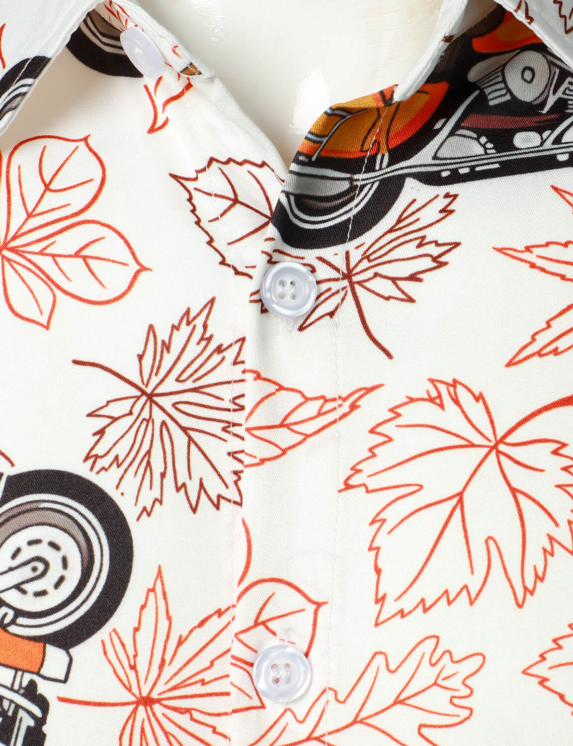 Men's Thanksgiving Funny Turkey Riding Motorcycle Hilarious Holiday Button Up Cute Long Sleeve Shirt