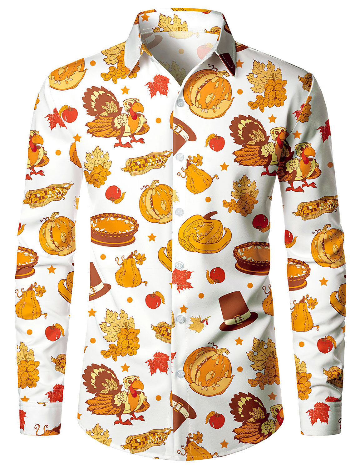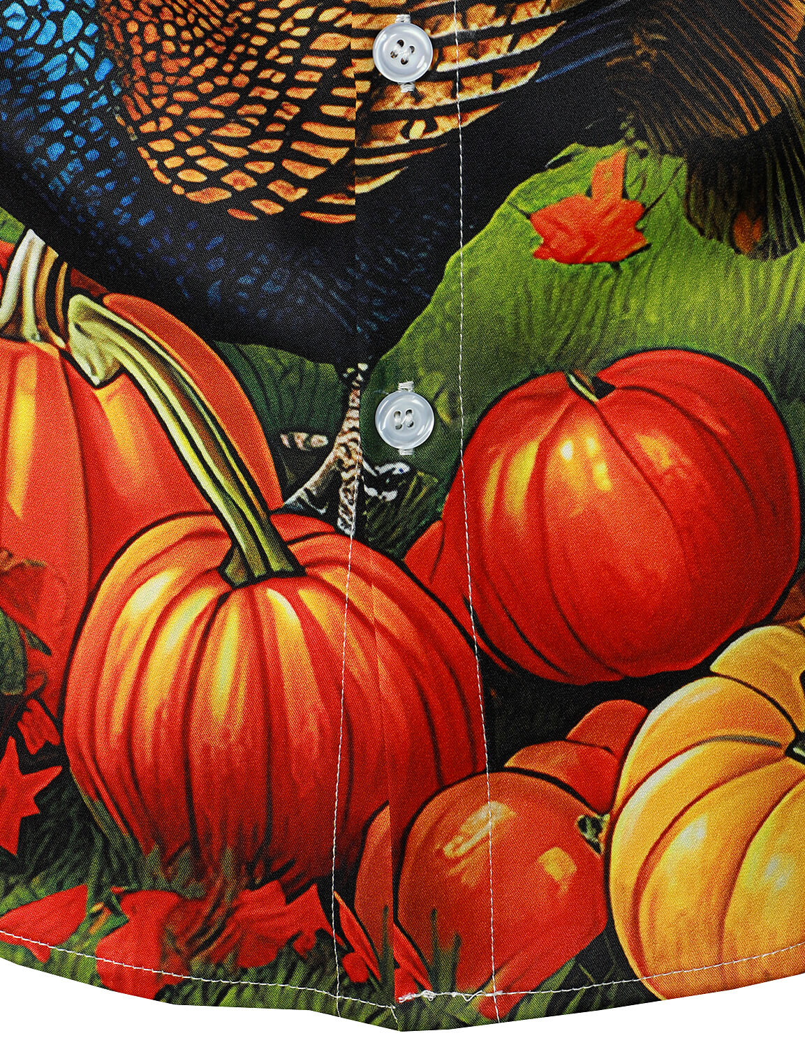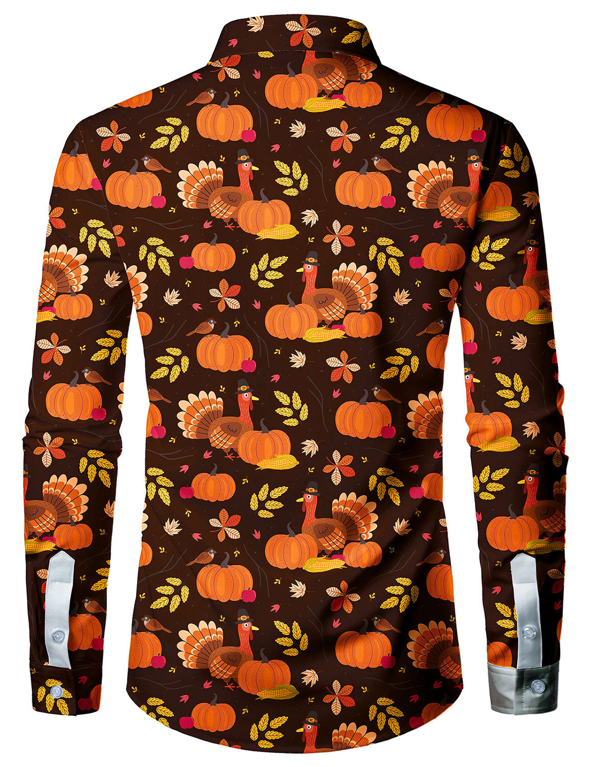 Men's Thanksgiving Day Party Turkey Pumpkin Button Long Sleeve Shirt
