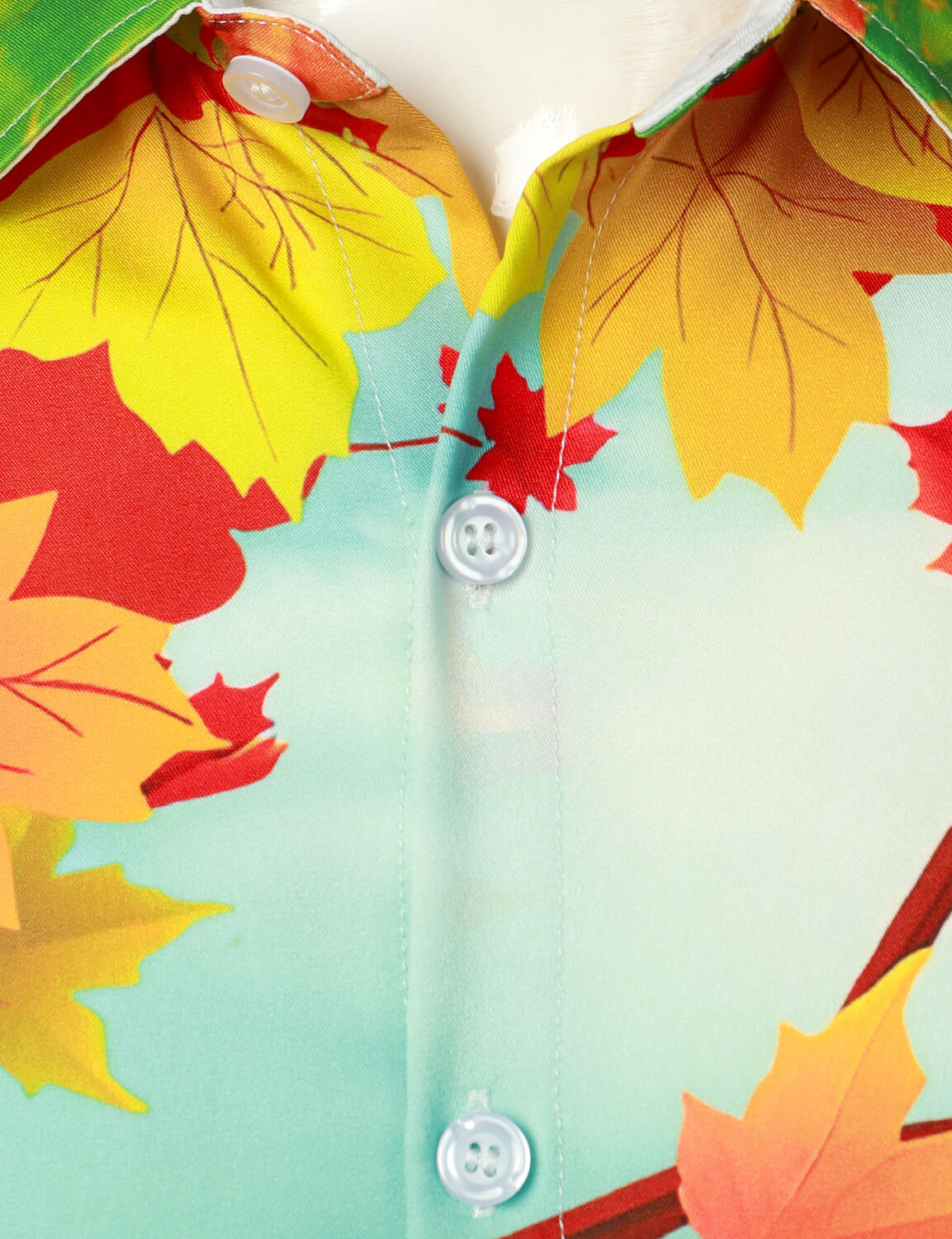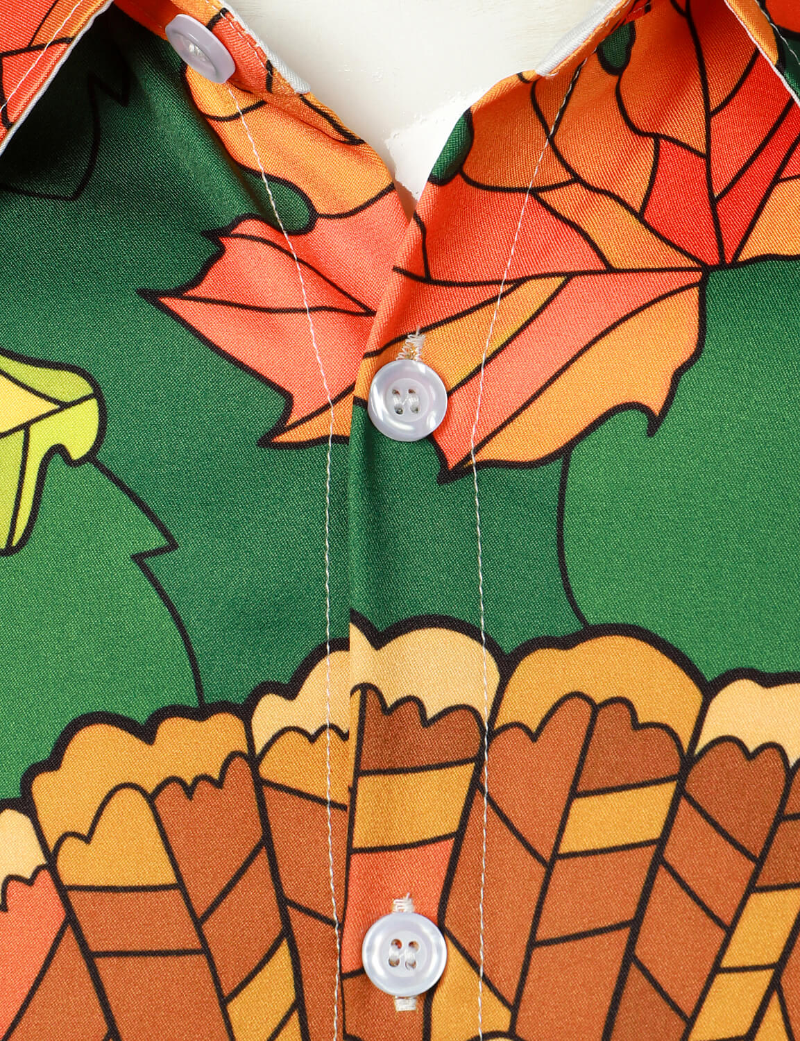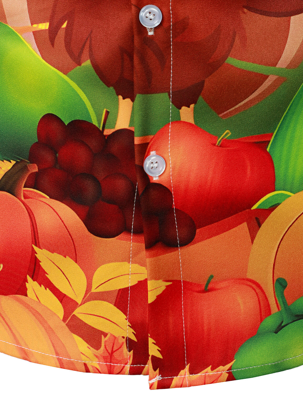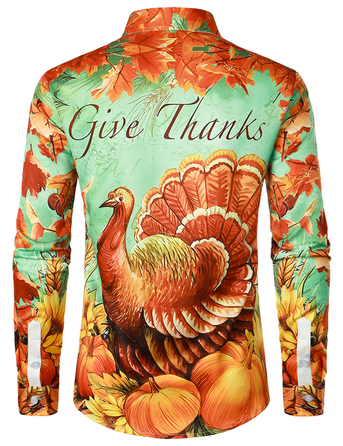 Men's Thanksgiving Day Party Turkey Pumpkin Button Long Sleeve Shirt