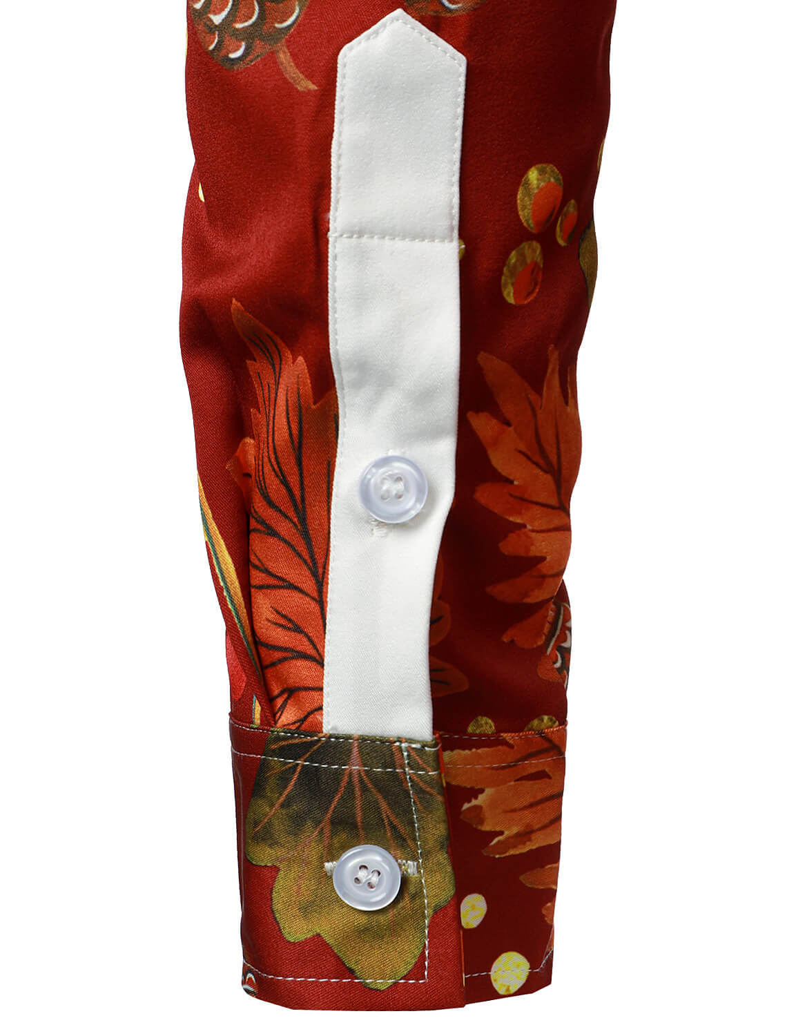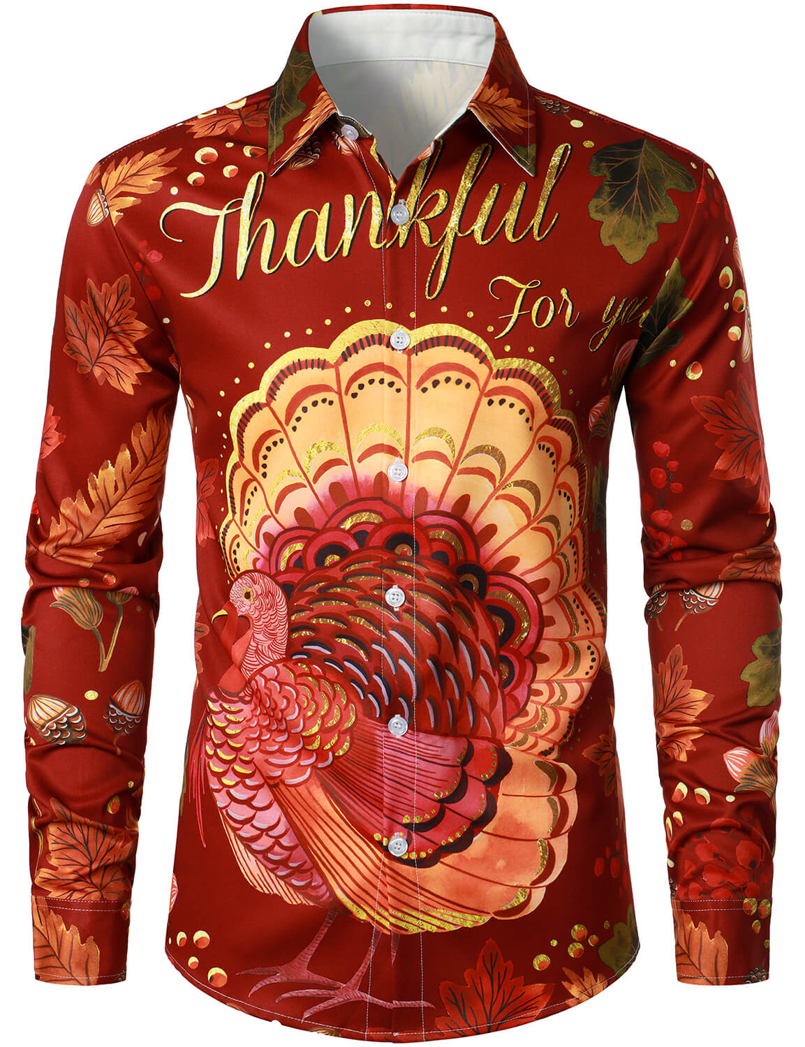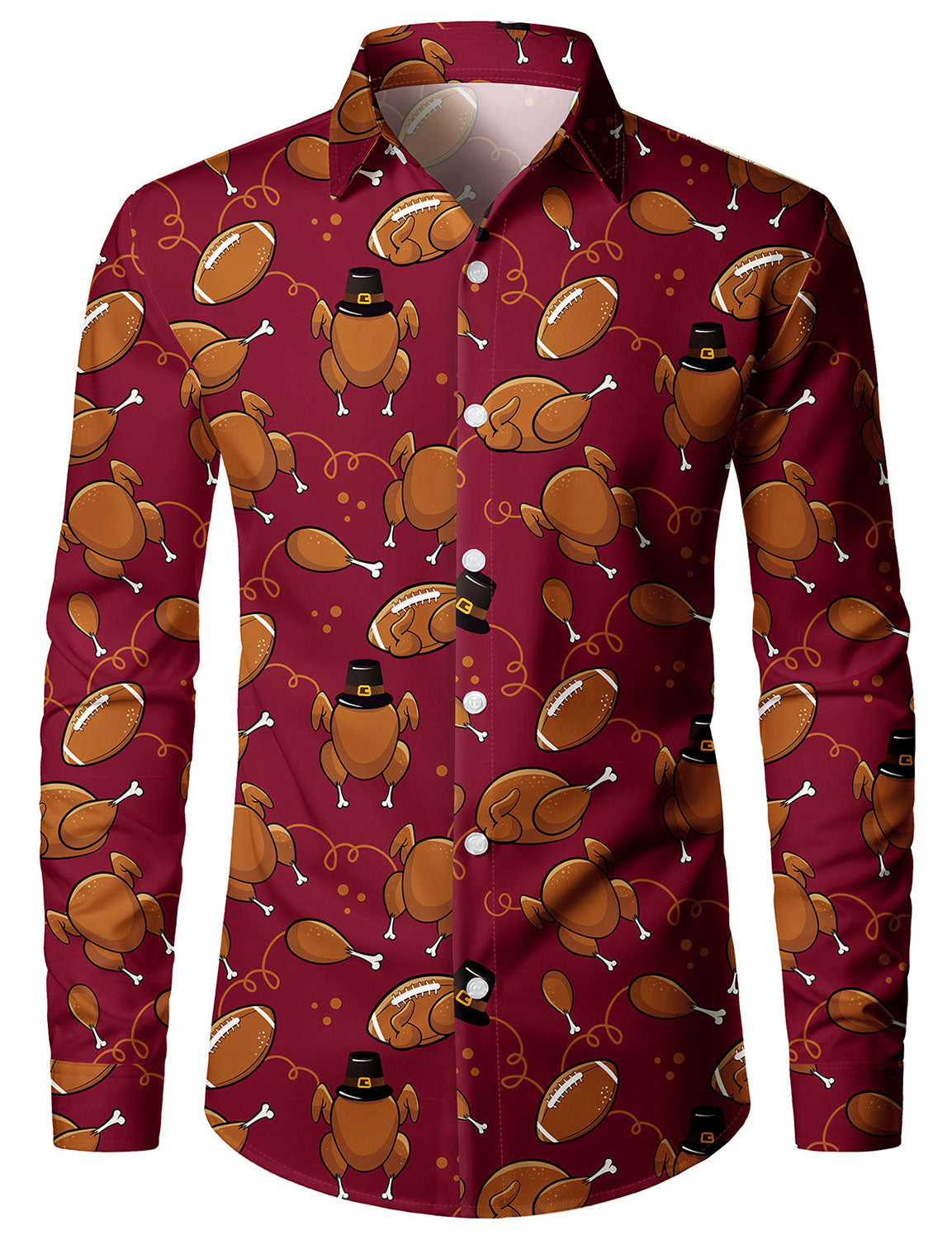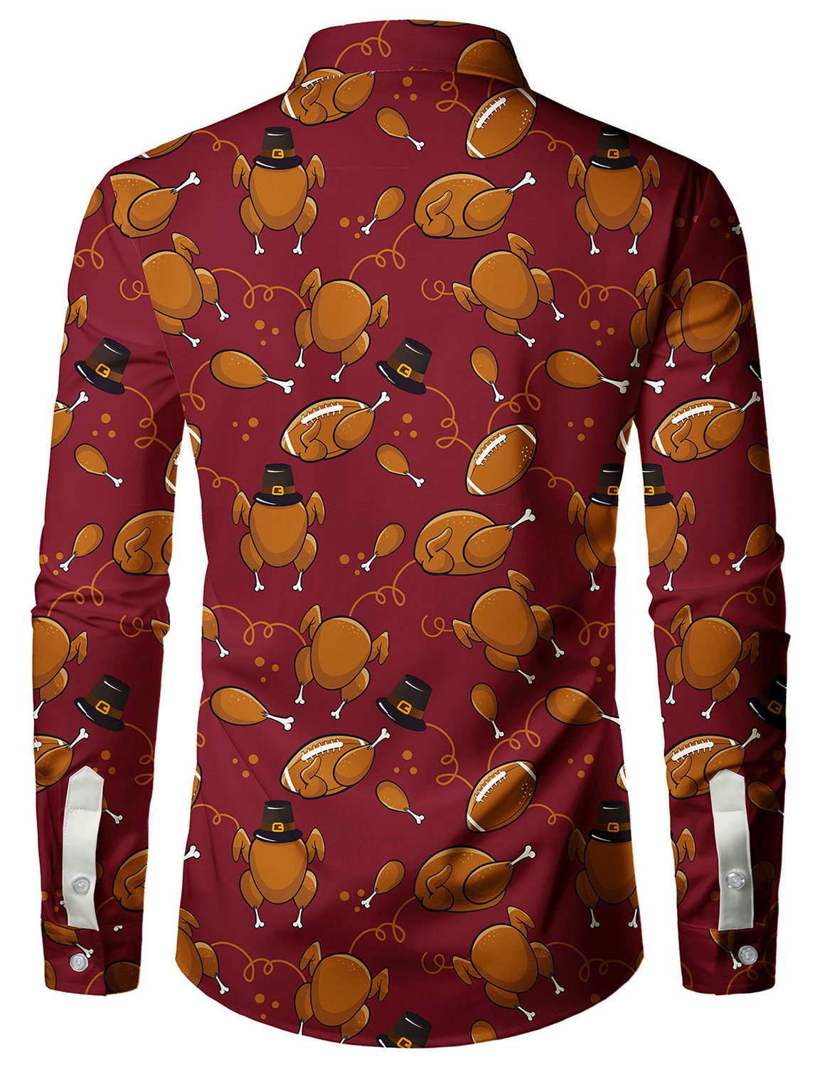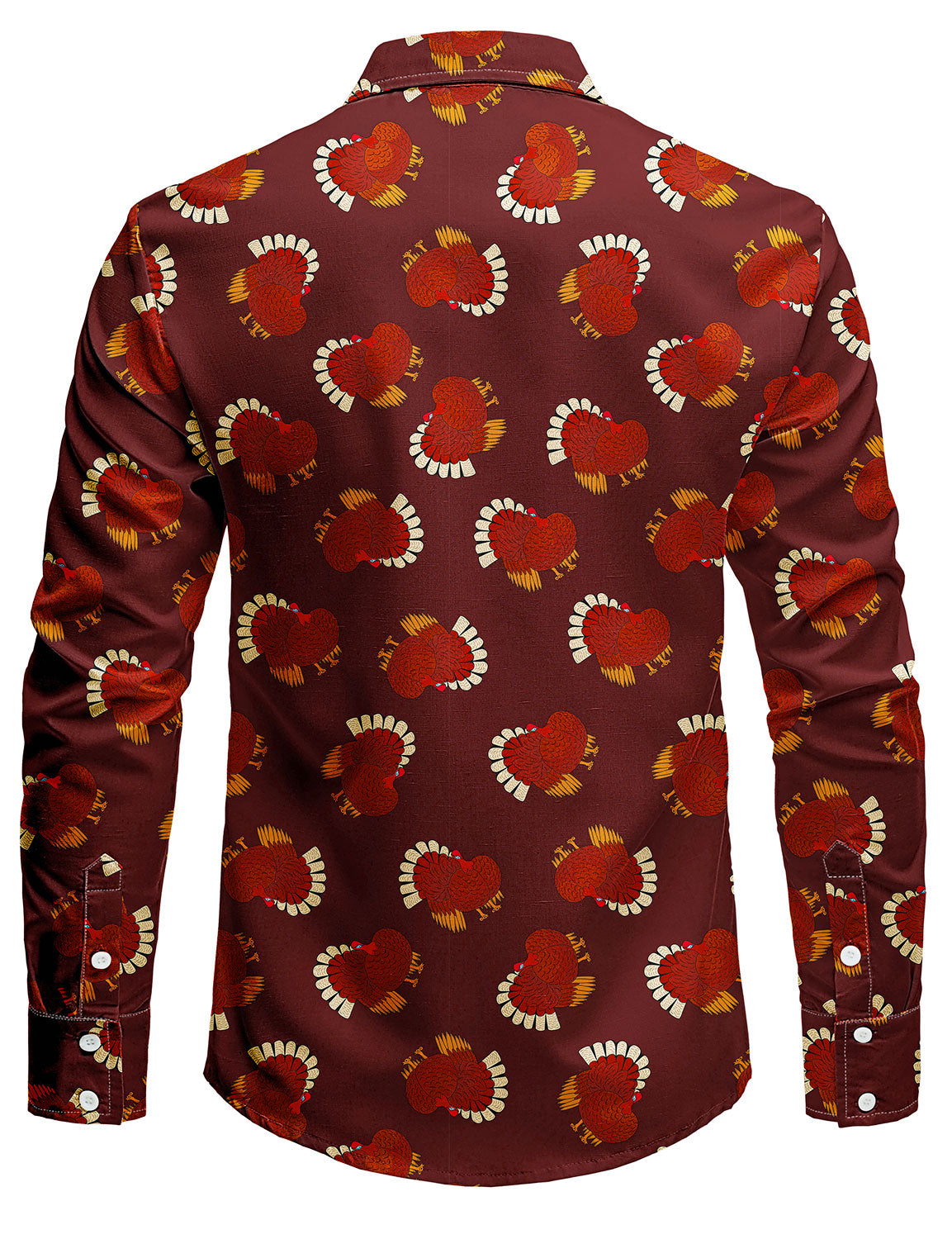 Men's Thanksgiving Festival Turkey Gift Button Burgundy Long Sleeve Shirt
