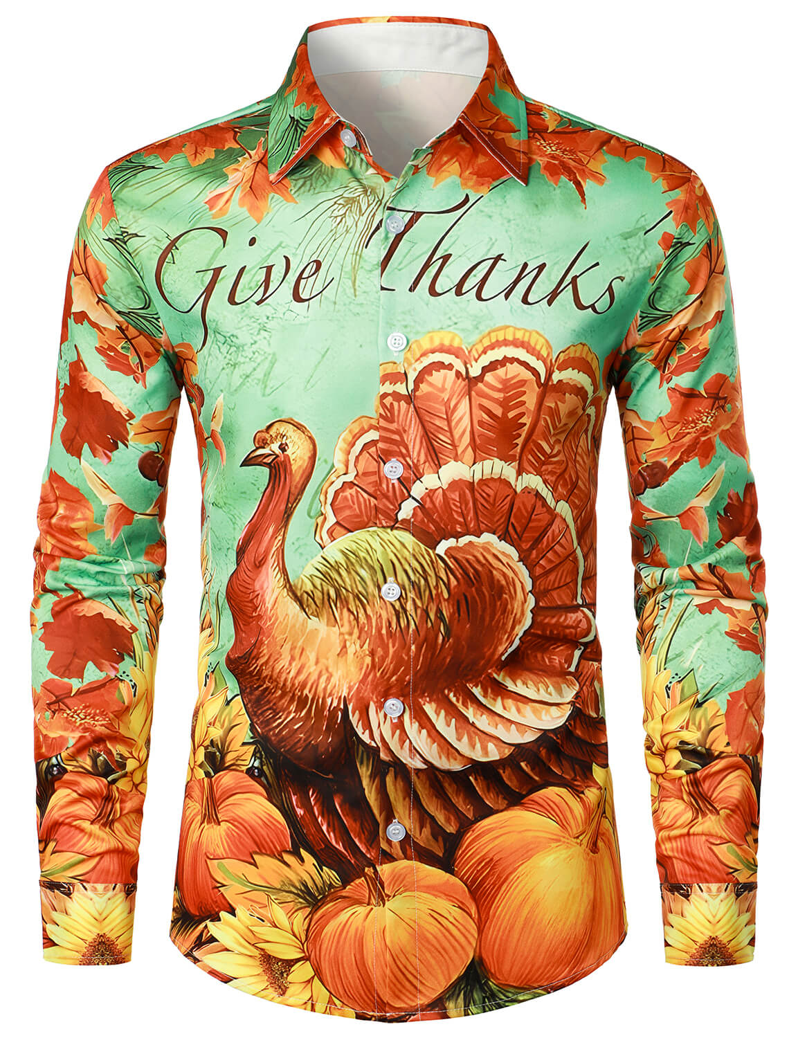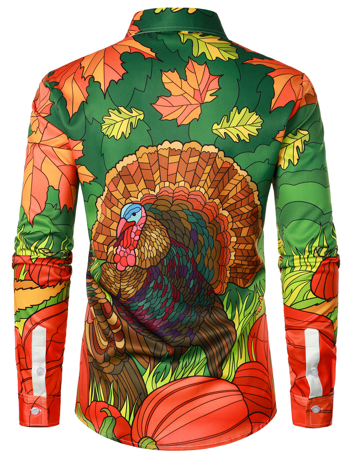Men's Thanksgiving Festival Turkey Holiday Gift Button Green Long Sleeve Shirt