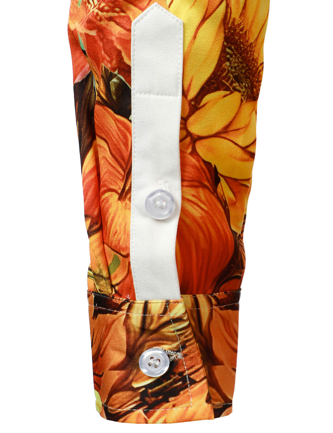 Men's 70s Vintage Floral Cotton Button Up Long Sleeve Shirt