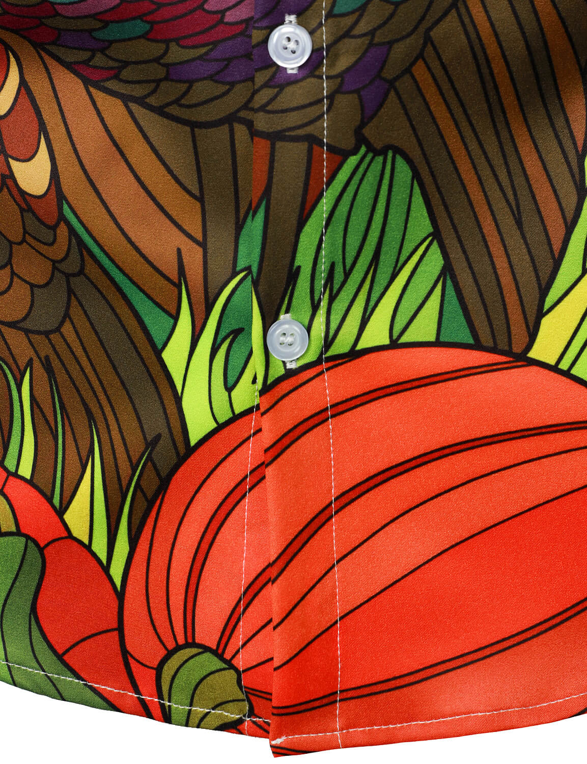Men's Thanksgiving Holiday Colorful Turkey Button Up Long Sleeve Shirt