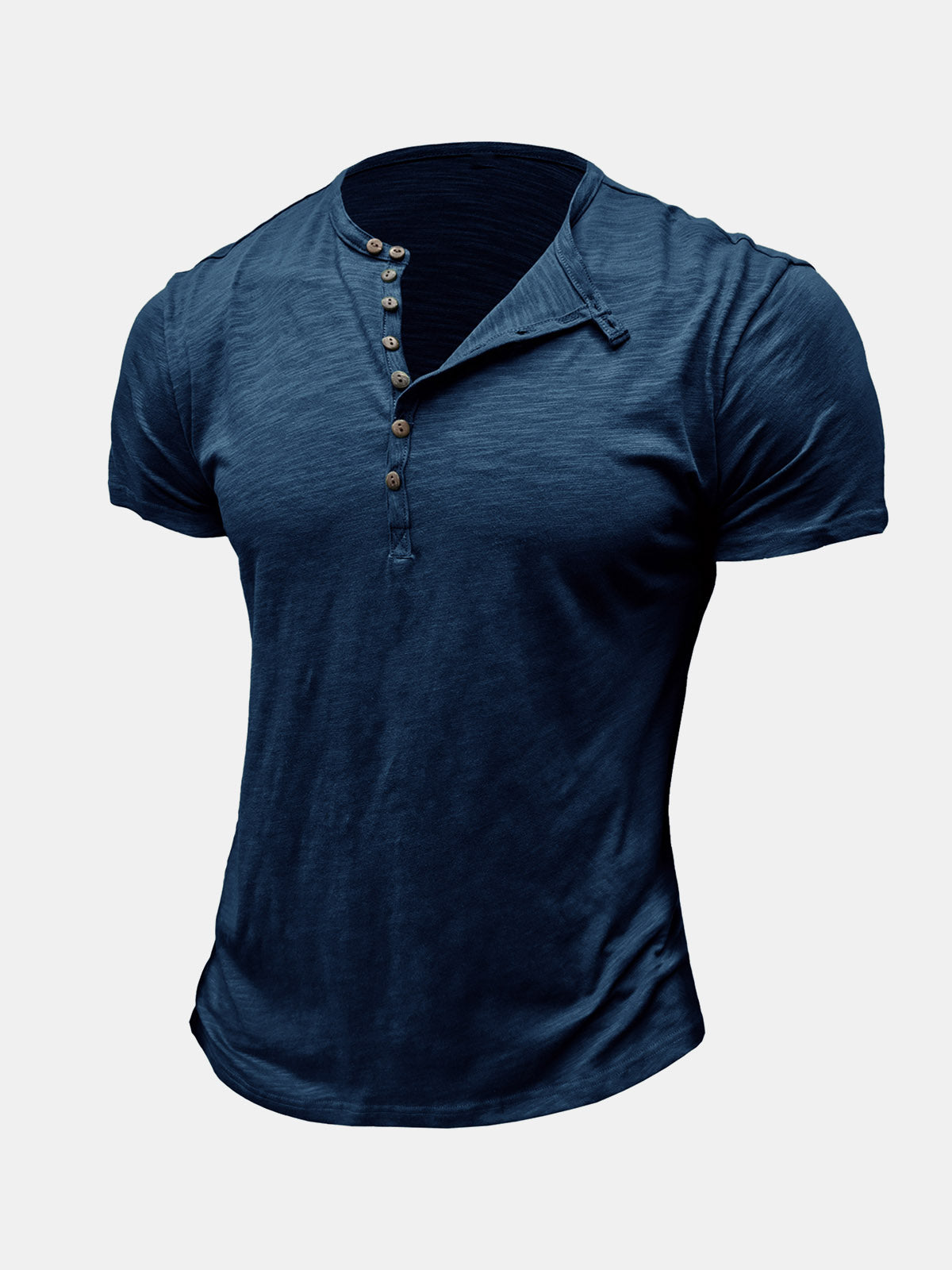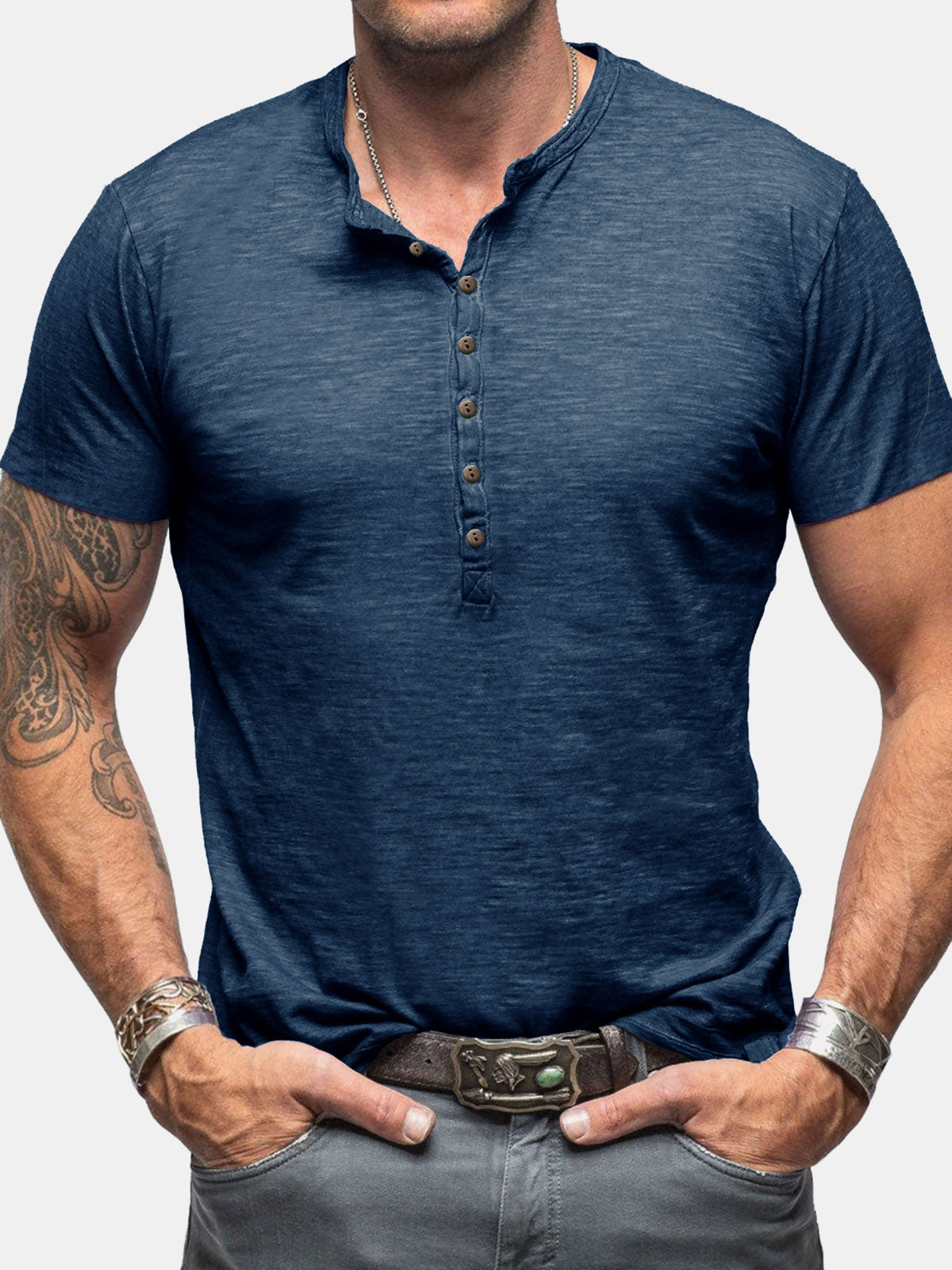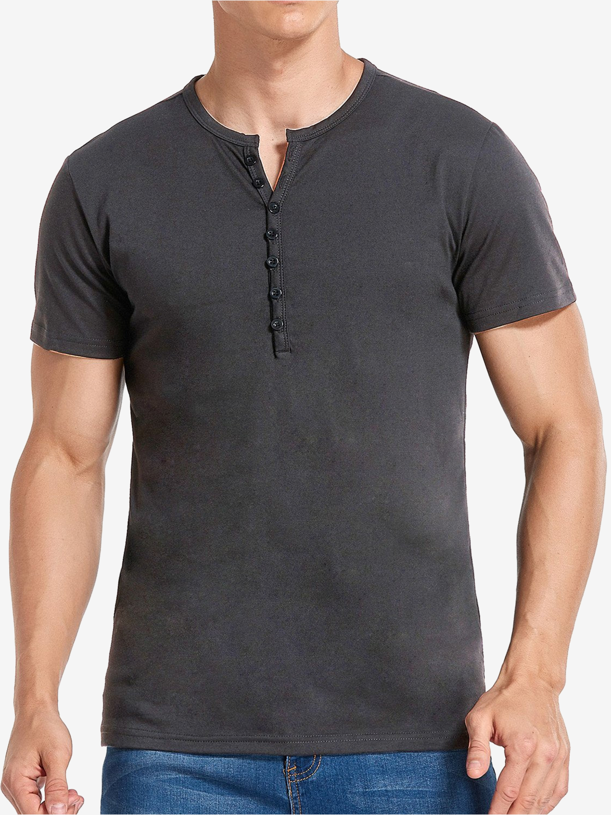 Men's Casual Solid Color Short Sleeve Henley T-shirt