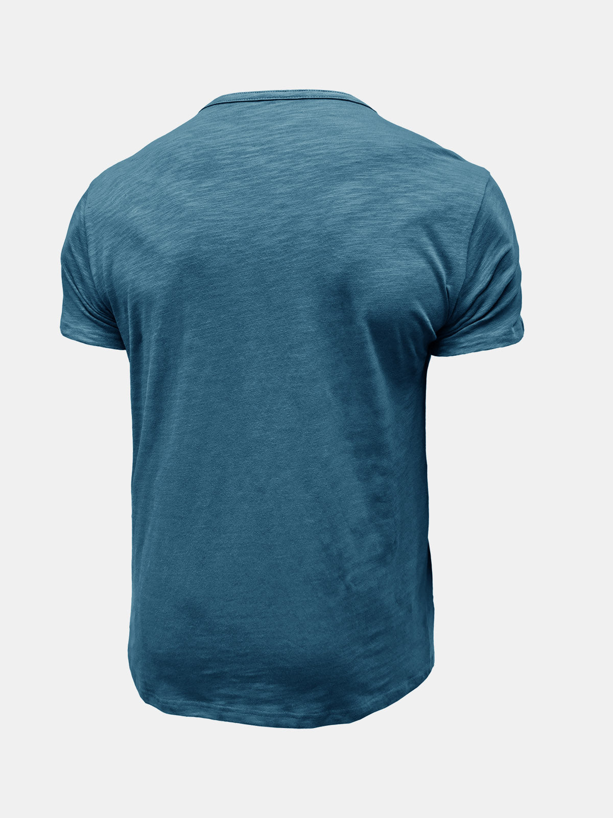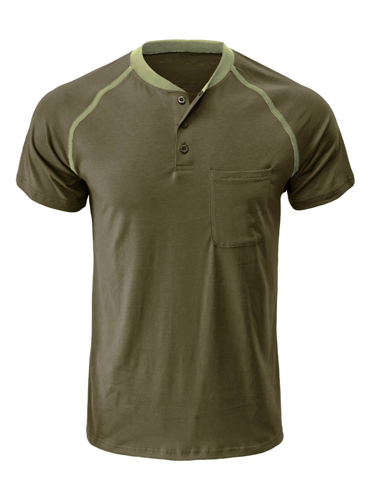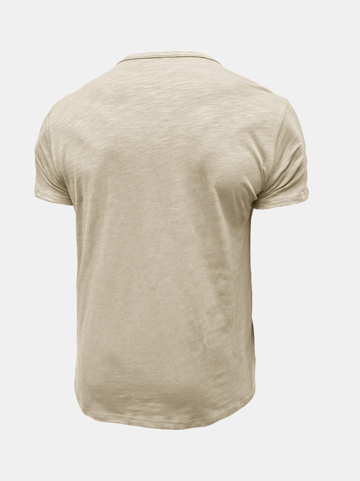 Men's Casual Solid Color Short Sleeve Henley T-shirt