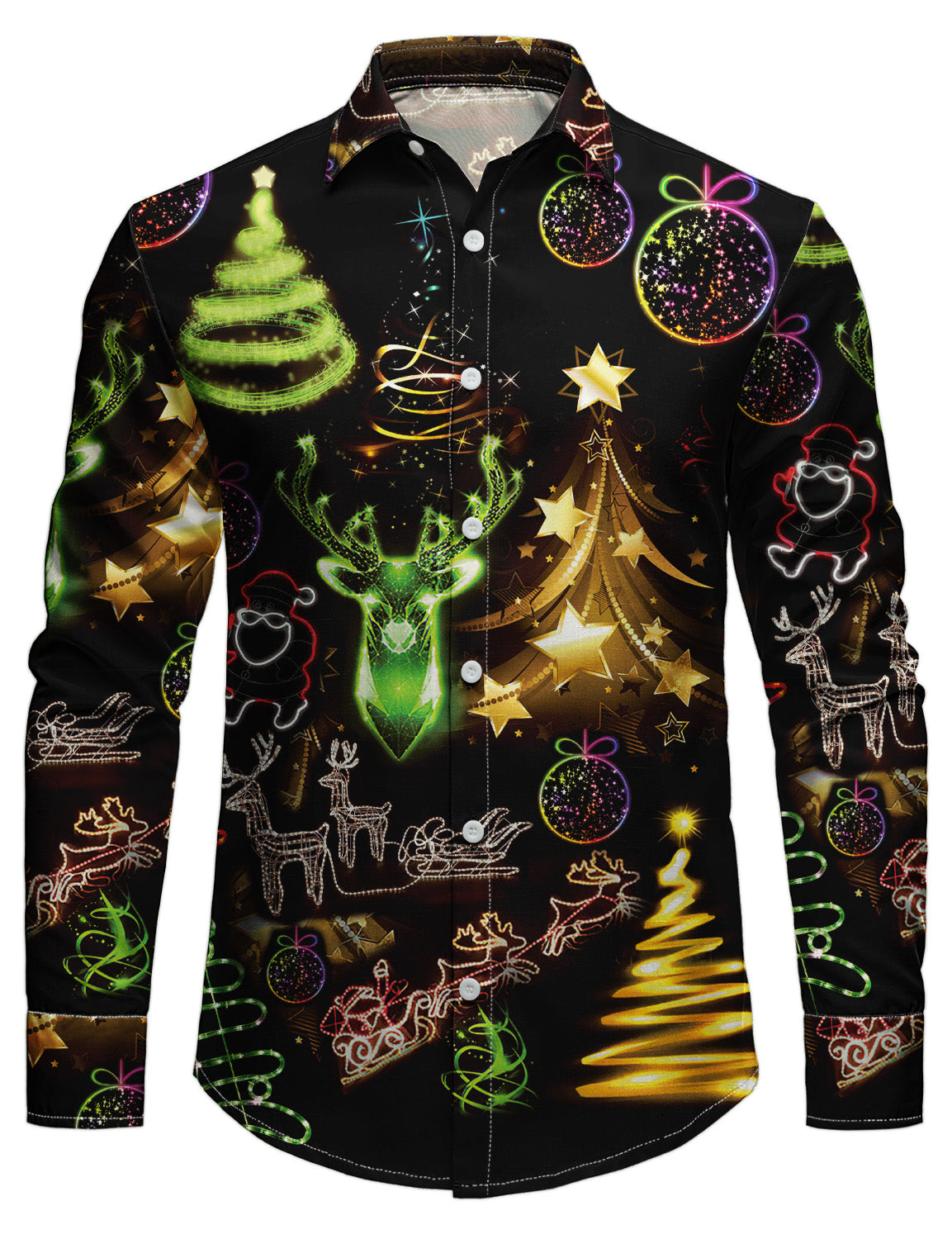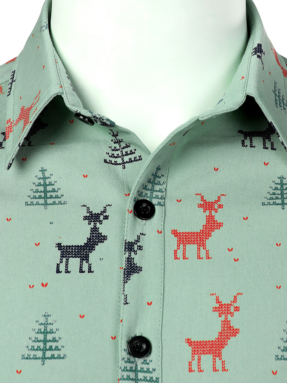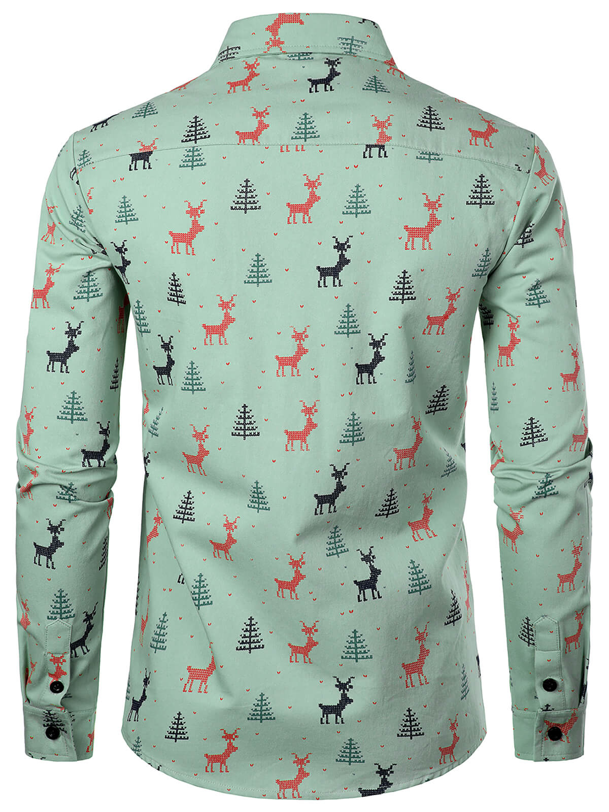 Men's Christmas Reindeer Xmas Themed Festive Print Long Sleeve Shirt