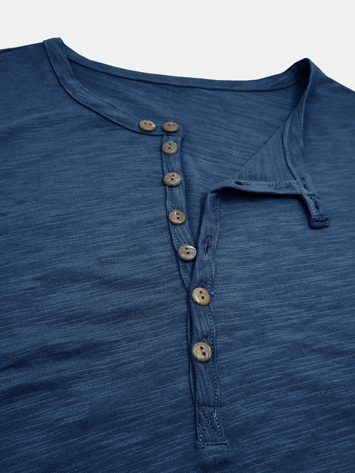 Men's Casual Henley Collar Tee Solid Color Long Sleeve T-Shirt