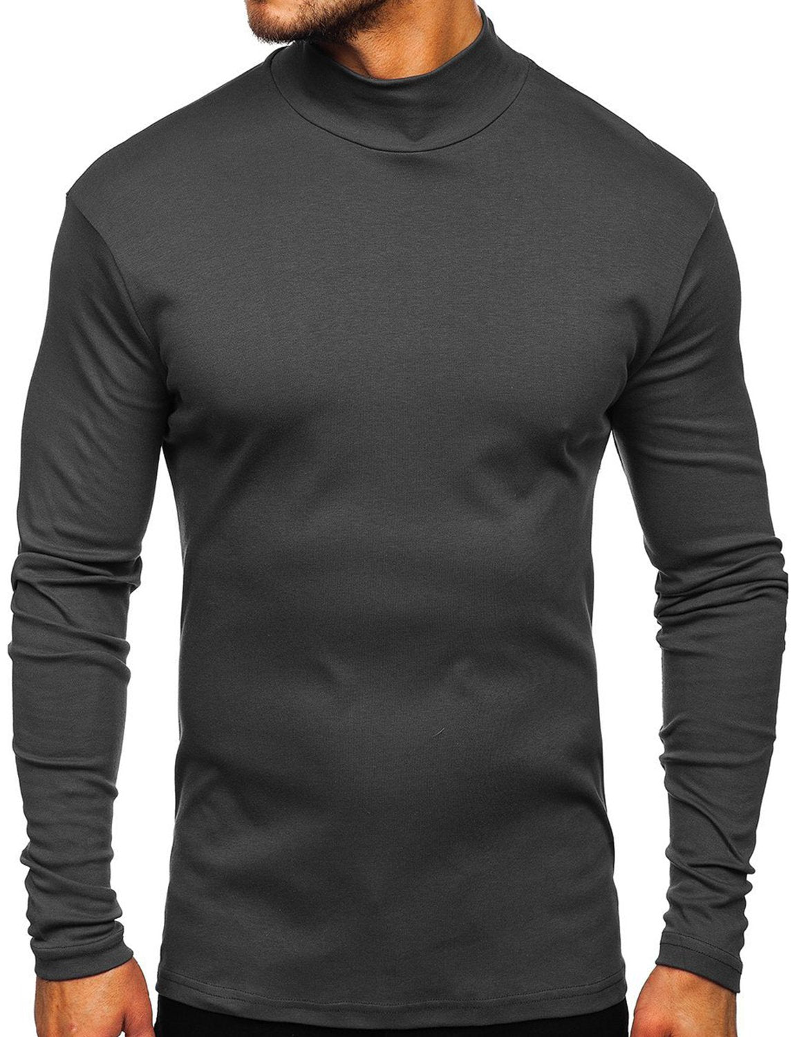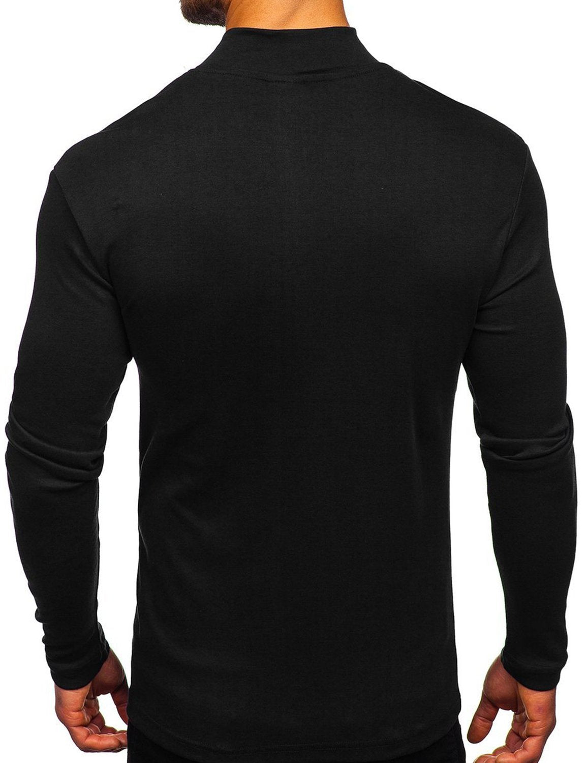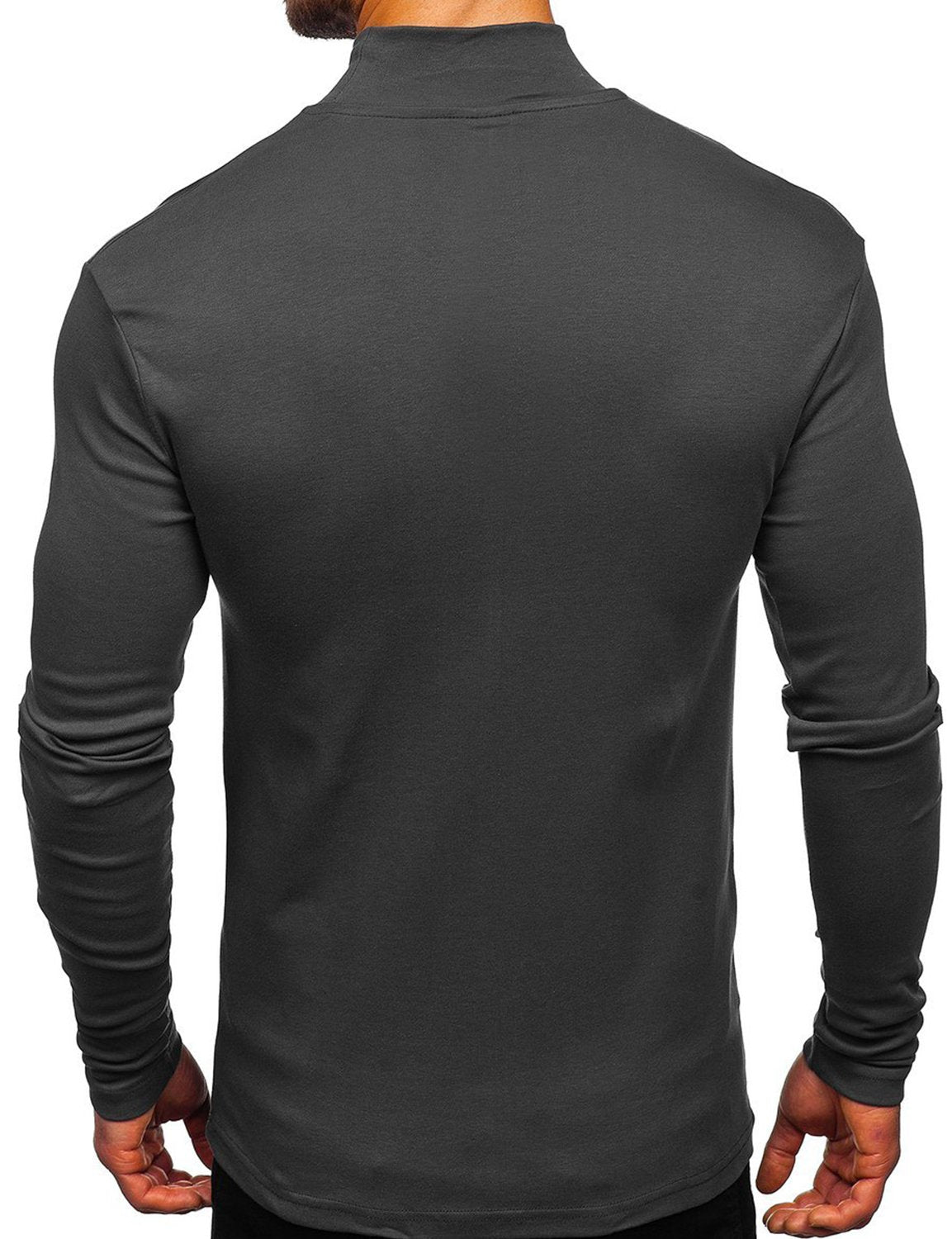 Men's Casual High-Neck Solid Color Long Sleeve T-shirt