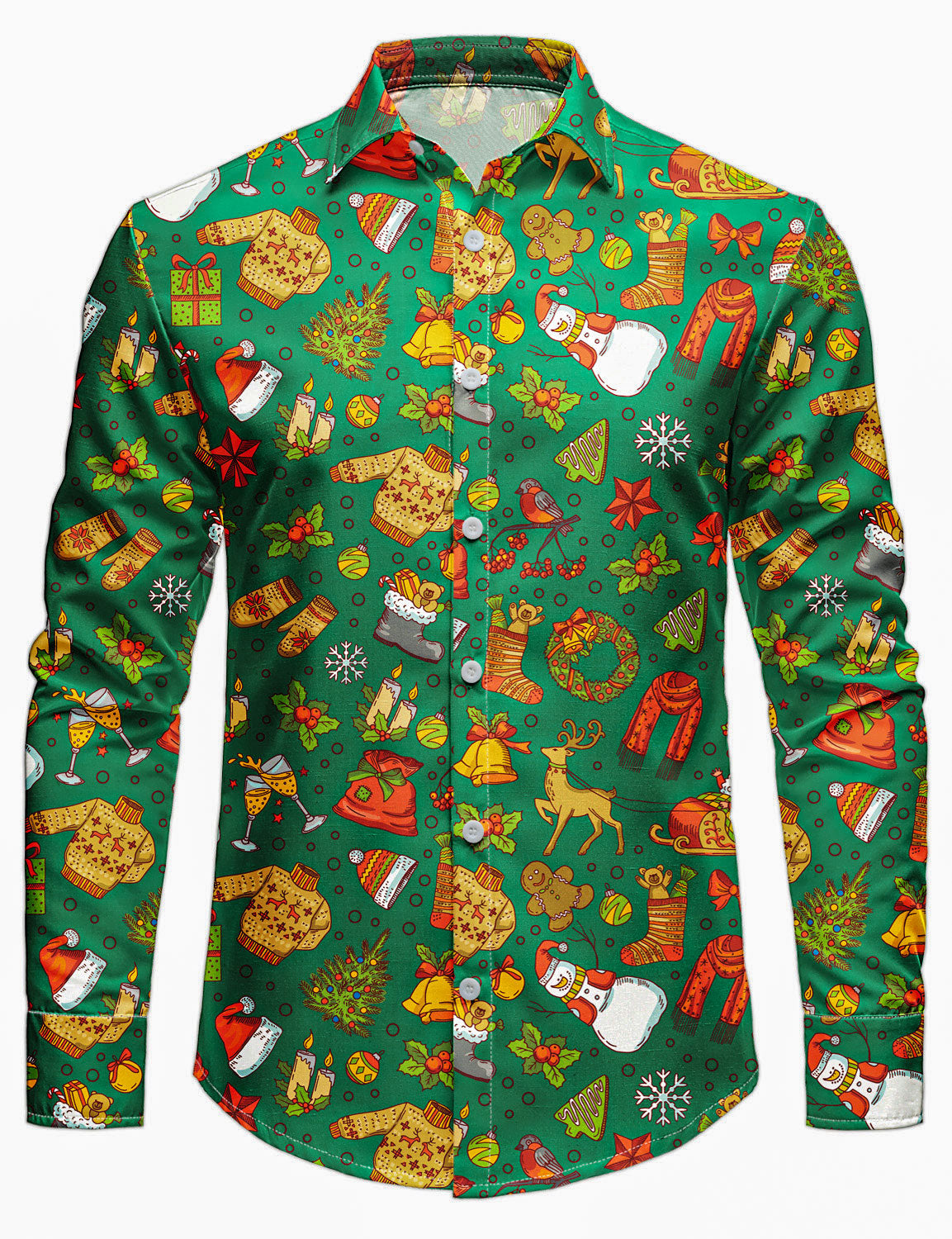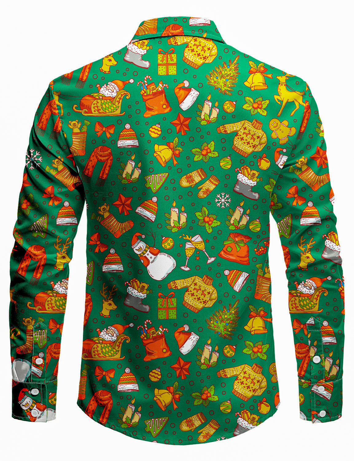 Men's Holiday Vintage Winter Christmas-themed Print Long Sleeve Shirt