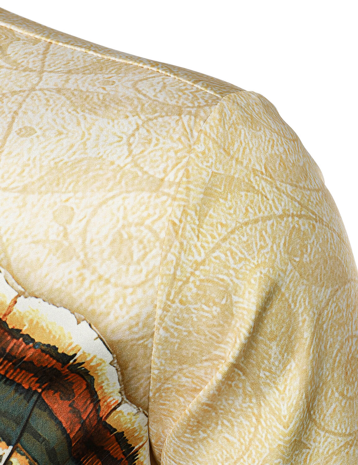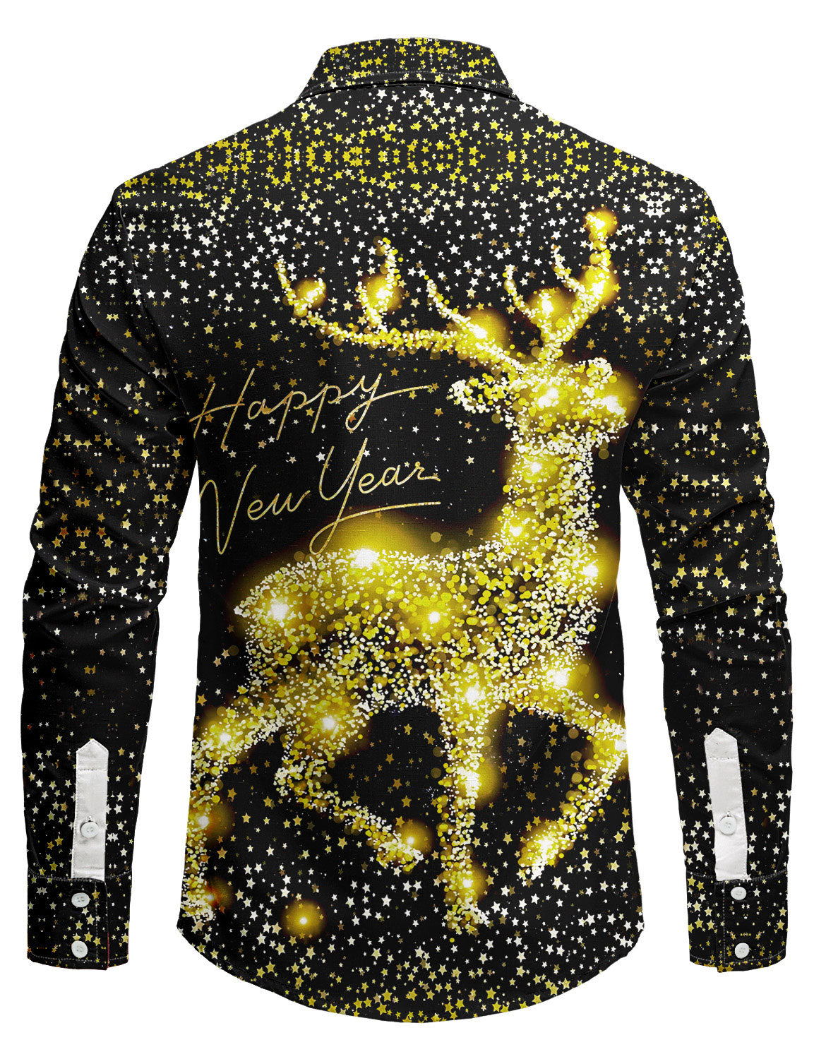 Men's Golden Christmas Reindeer Print Long Sleeve Button Shirt