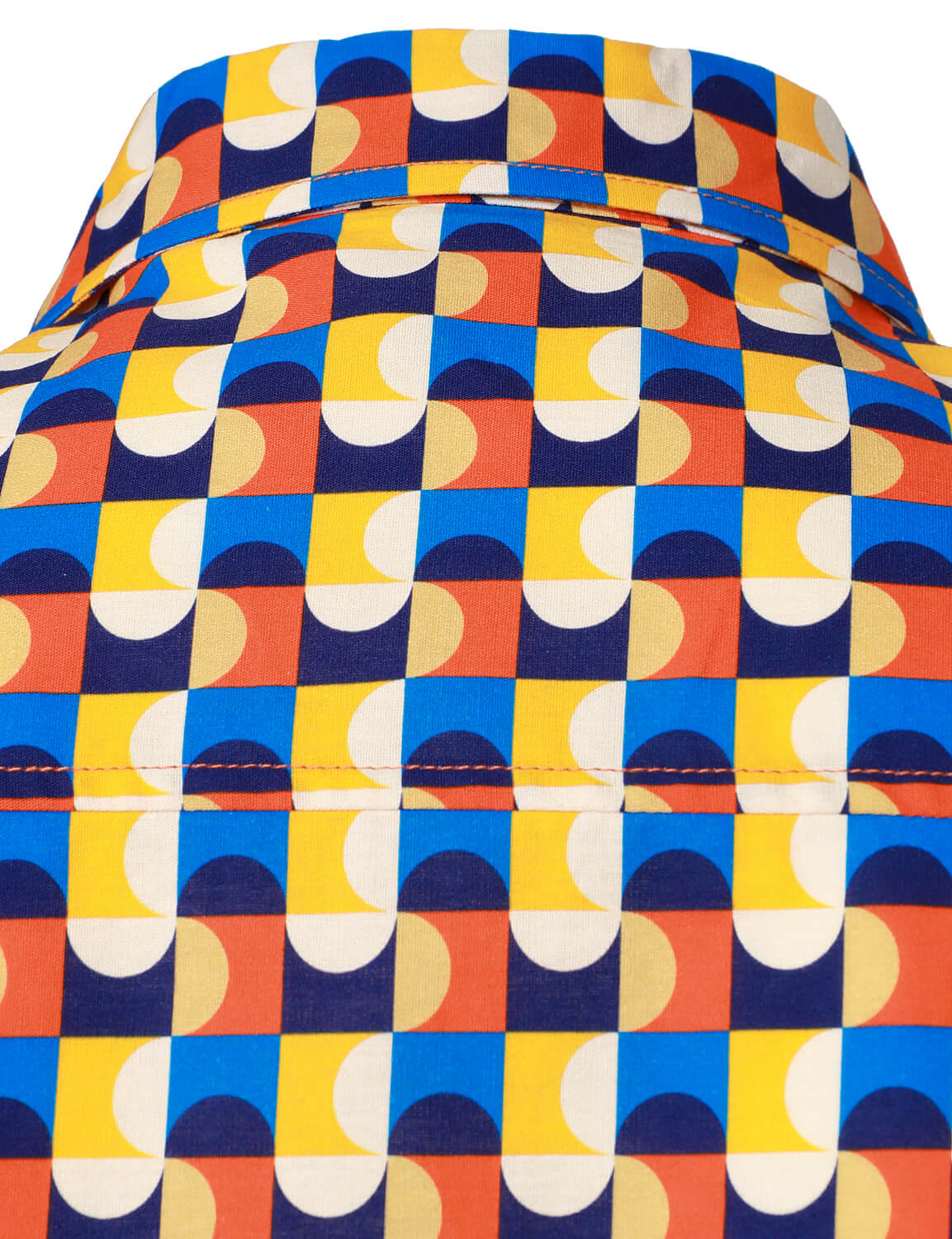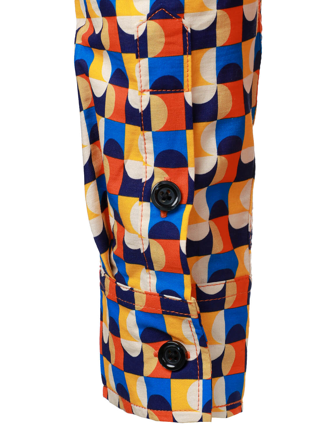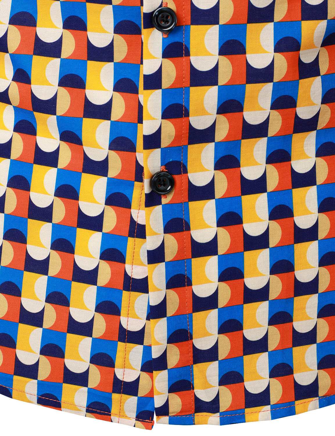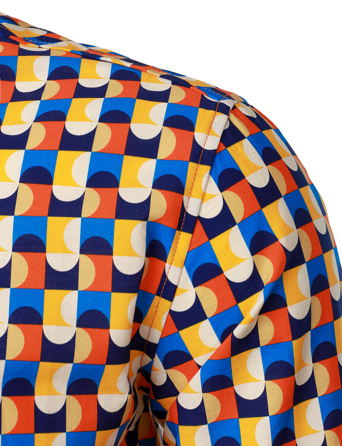 Men's Retro Geometric Print Button Up Long Sleeve Dress Shirt