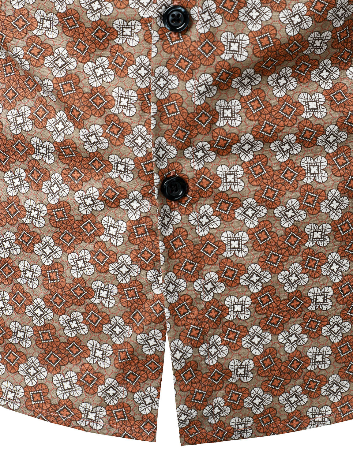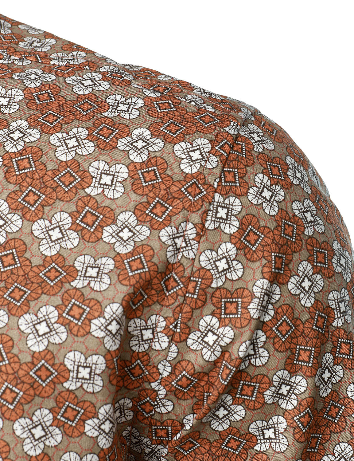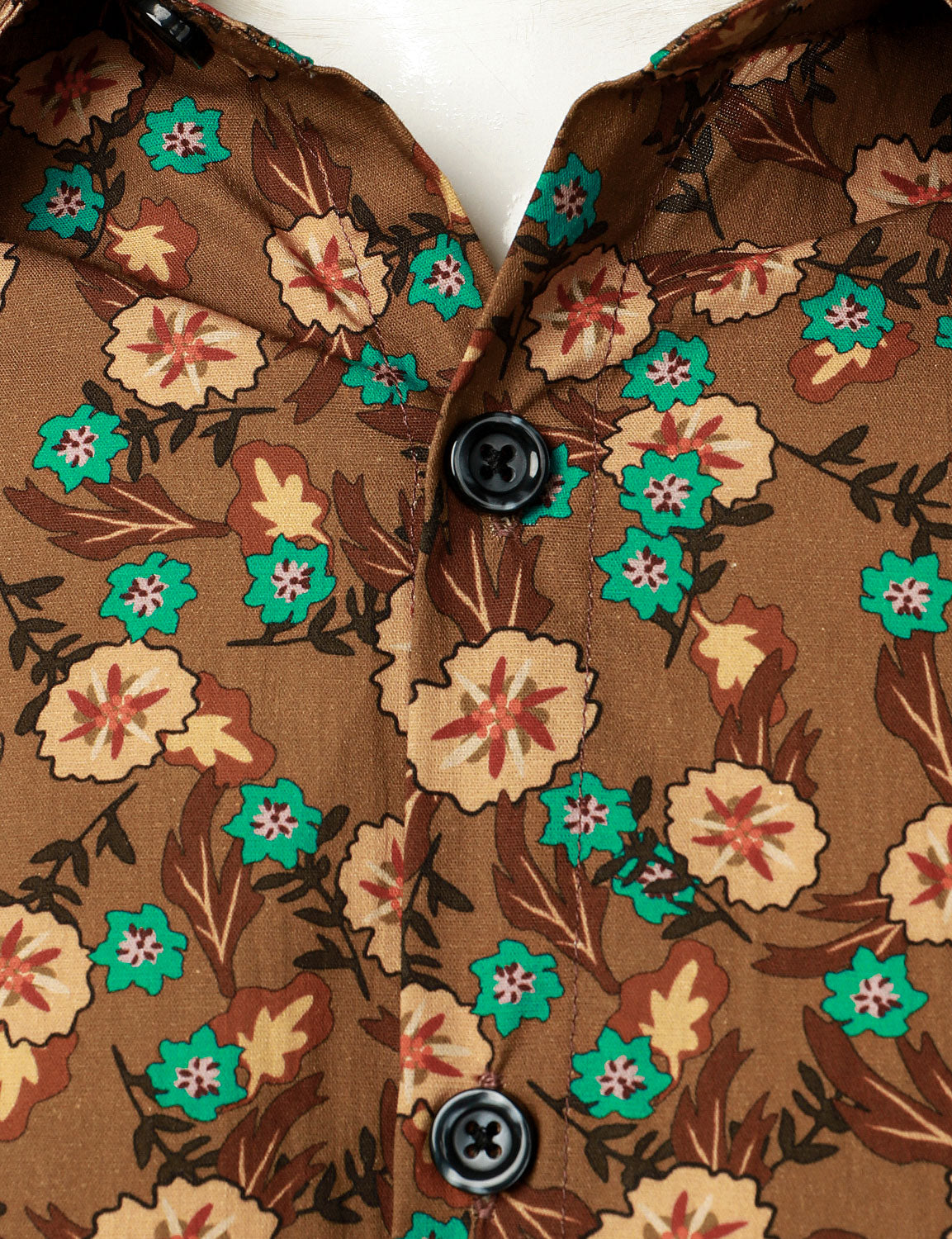 Men's Floral Casual Cotton Brown Long Sleeve Dress Shirt