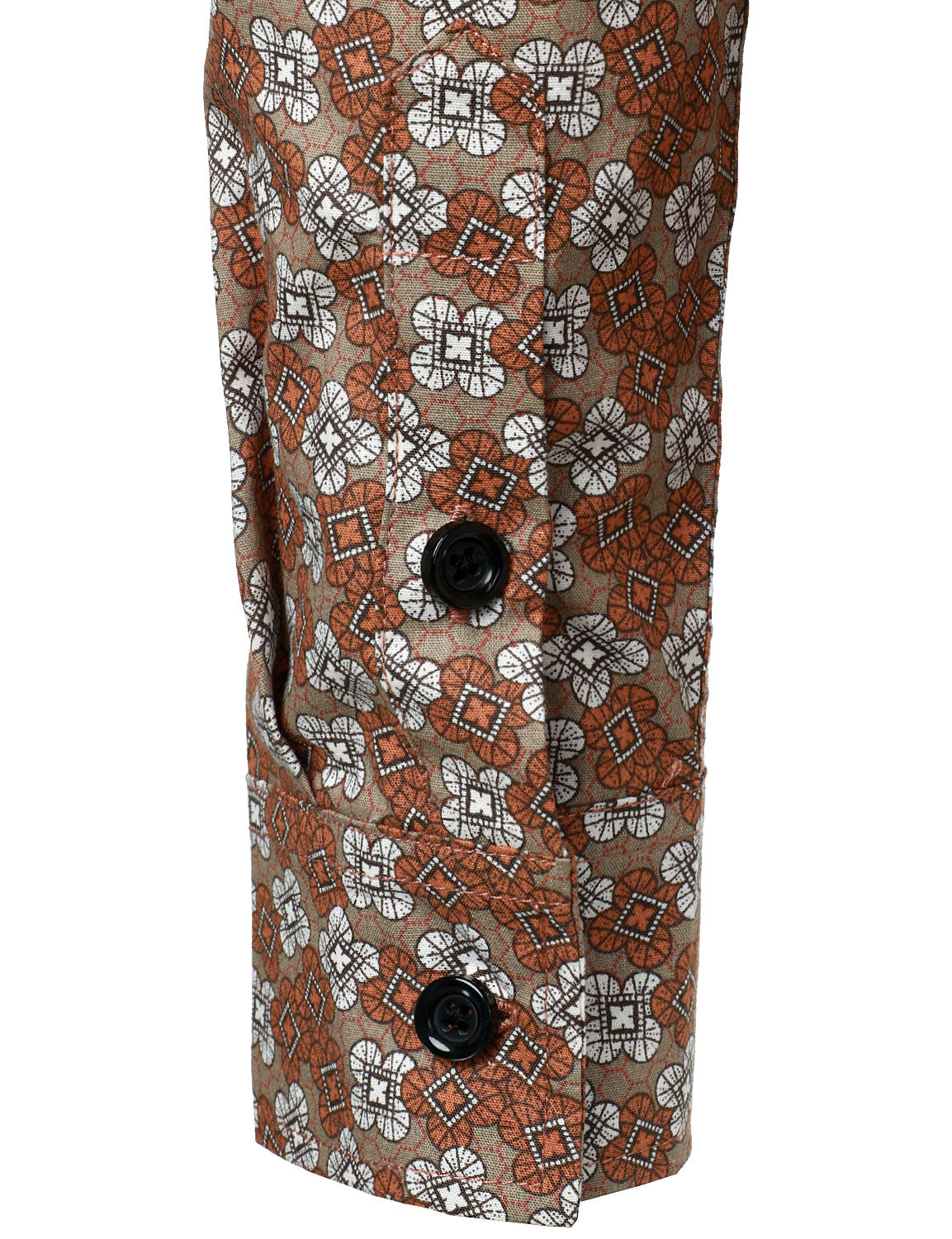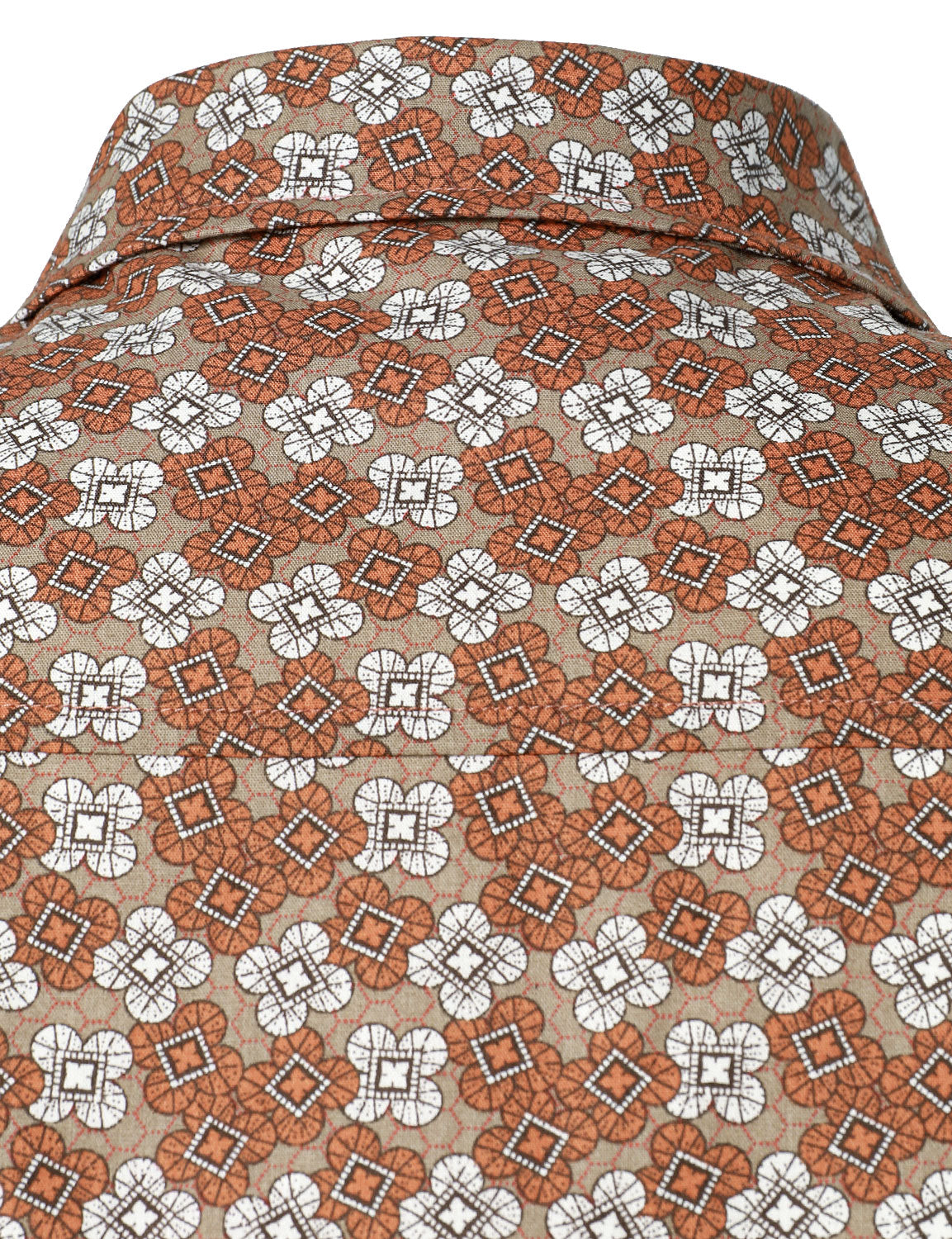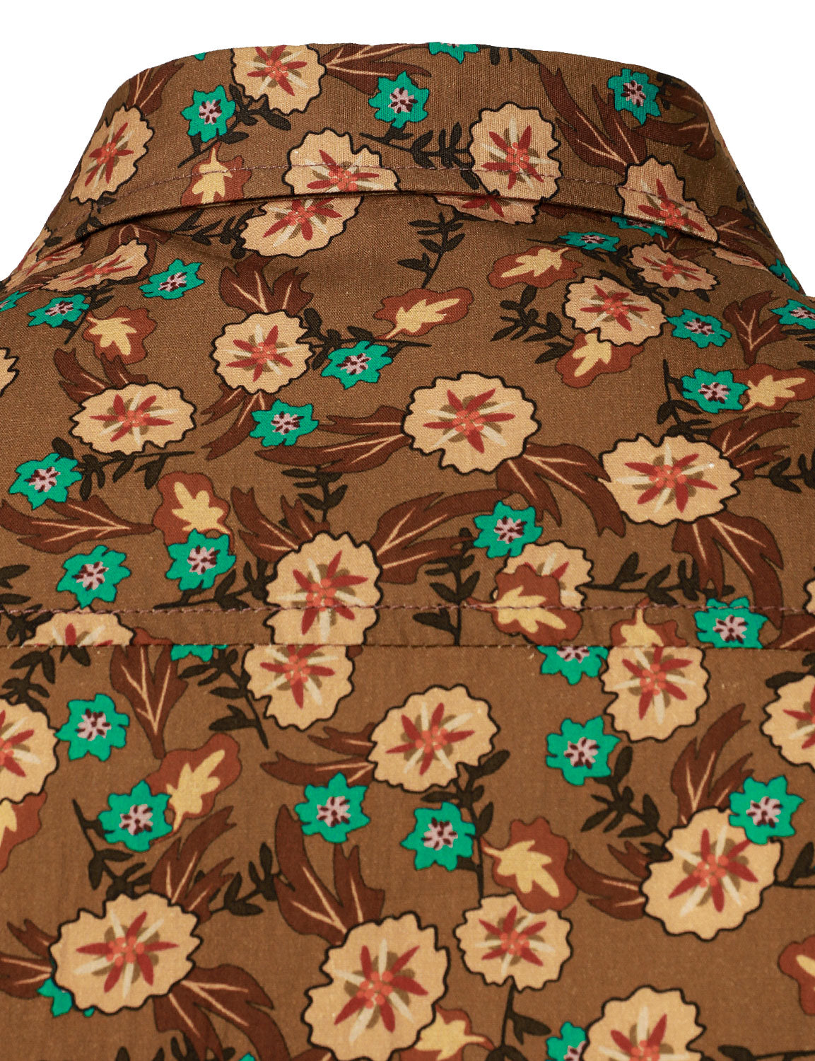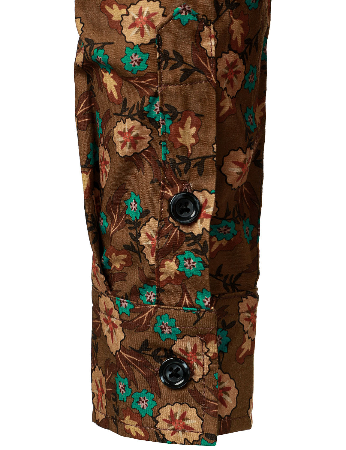 Men's Floral Casual Cotton Brown Long Sleeve Dress Shirt