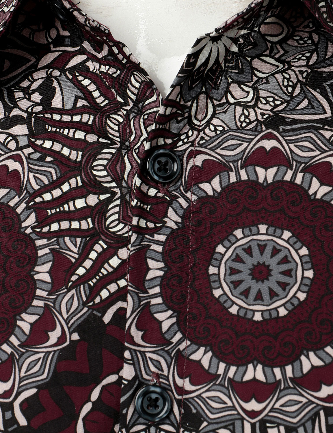 Men's Casual Mandala Print Cotton Long Sleeve Button Up Dress Shirt