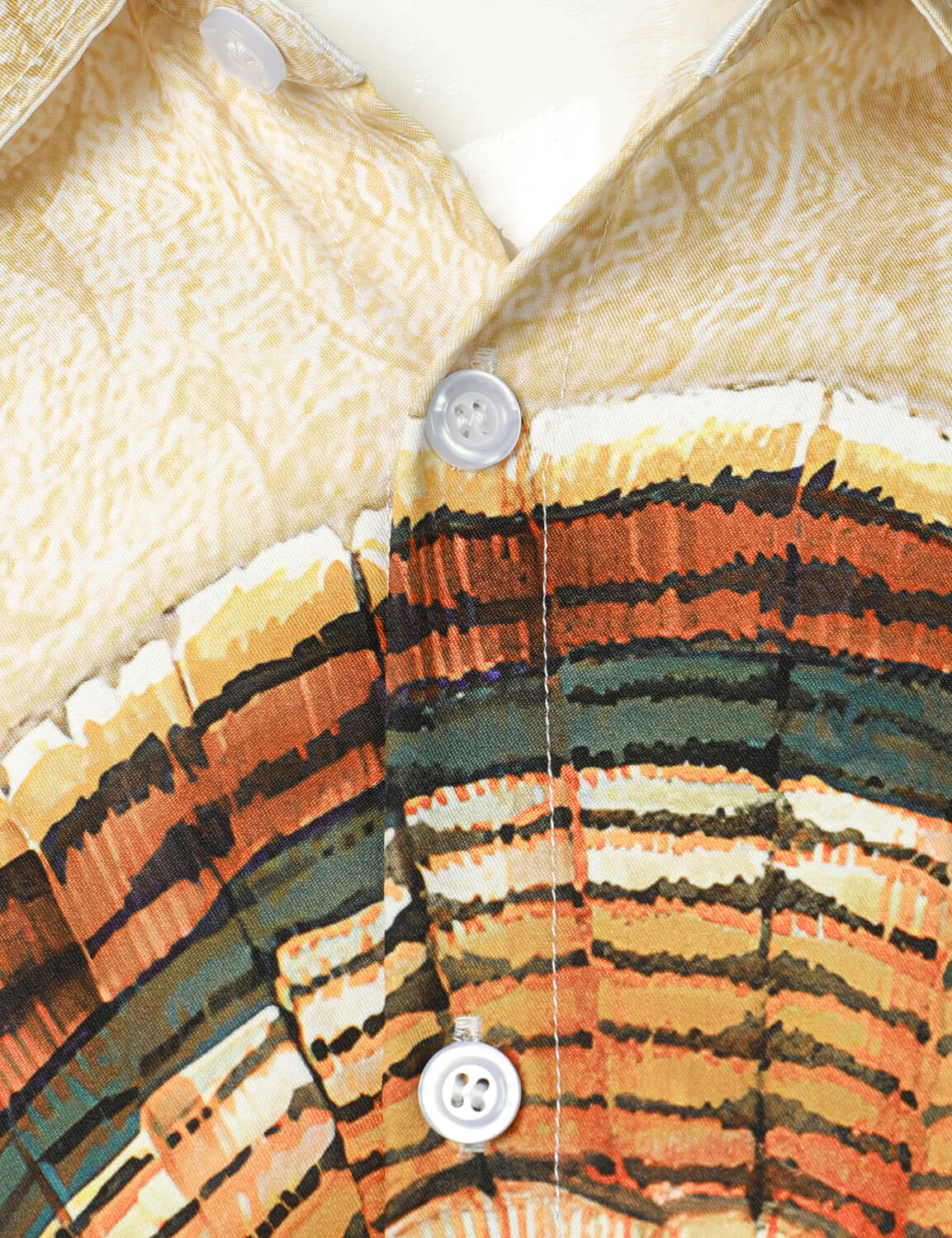 Men's Vintage Thanksgiving Turkey Holiday Brown Button Long Sleeve Shirt