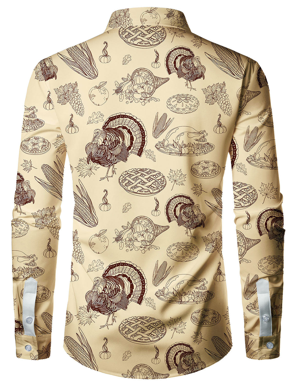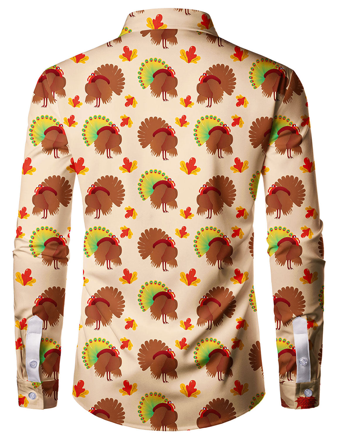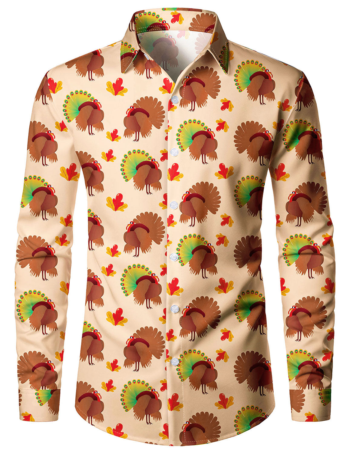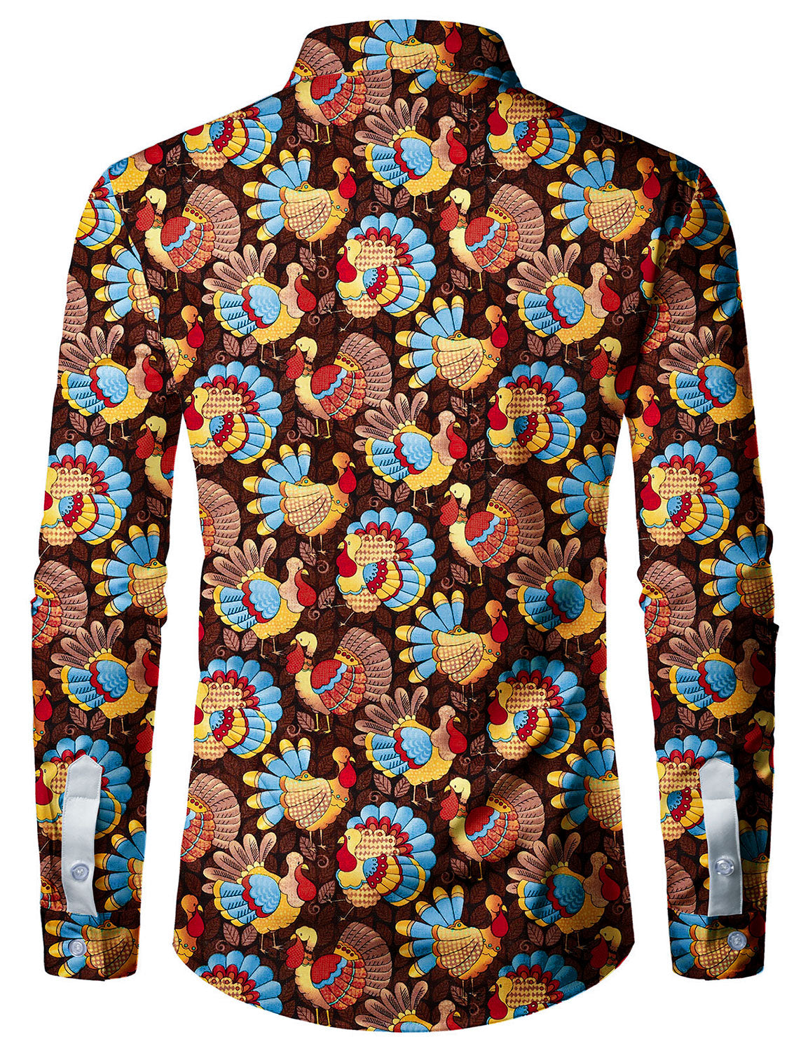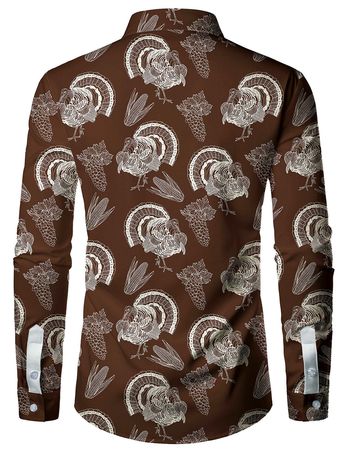 Men's Casual Thanksgiving Turkey Brown Holiday Button Long Sleeve Shirt