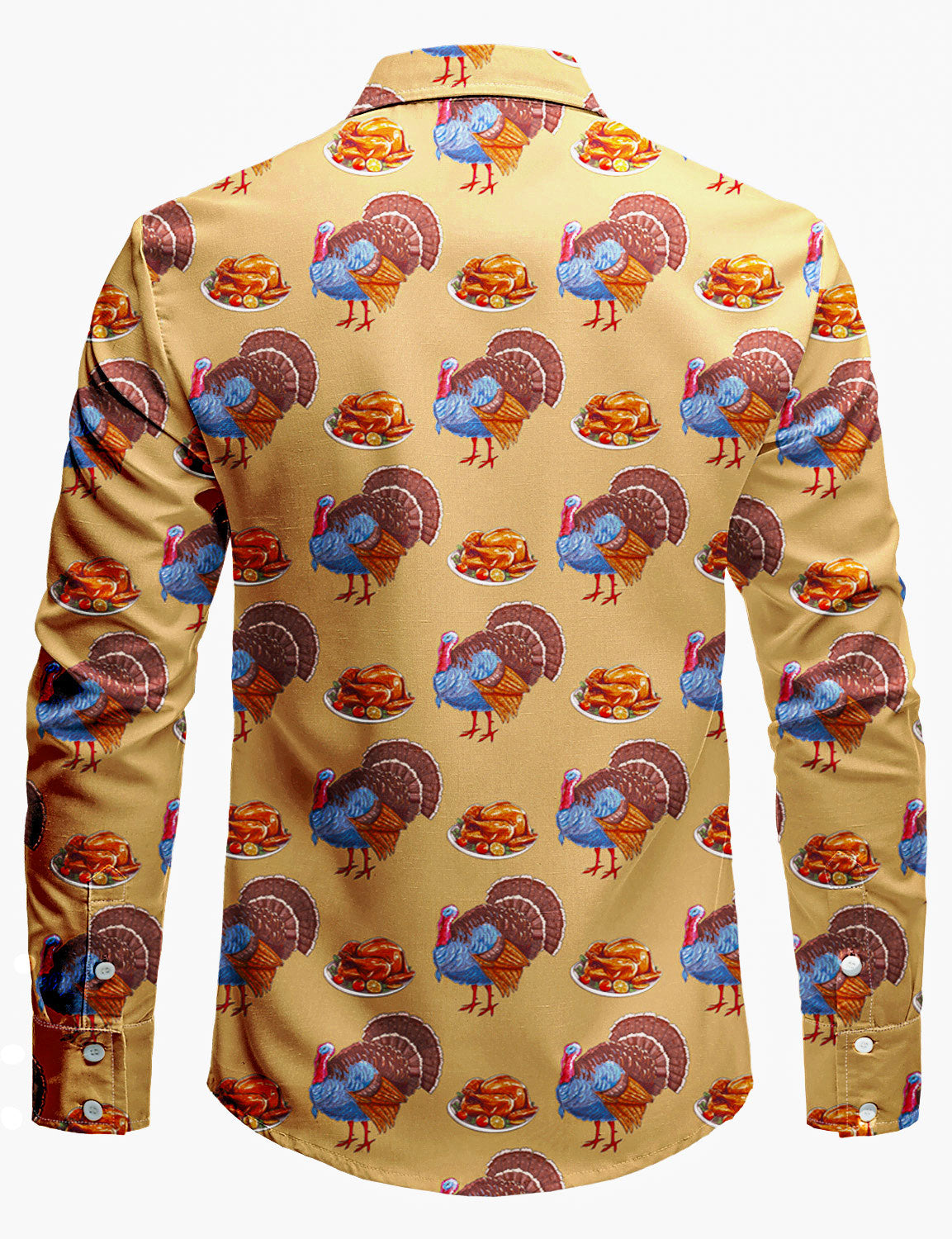 Men's Thanksgiving Day Funny Turkey Holiday Long Sleeve Button Shirt