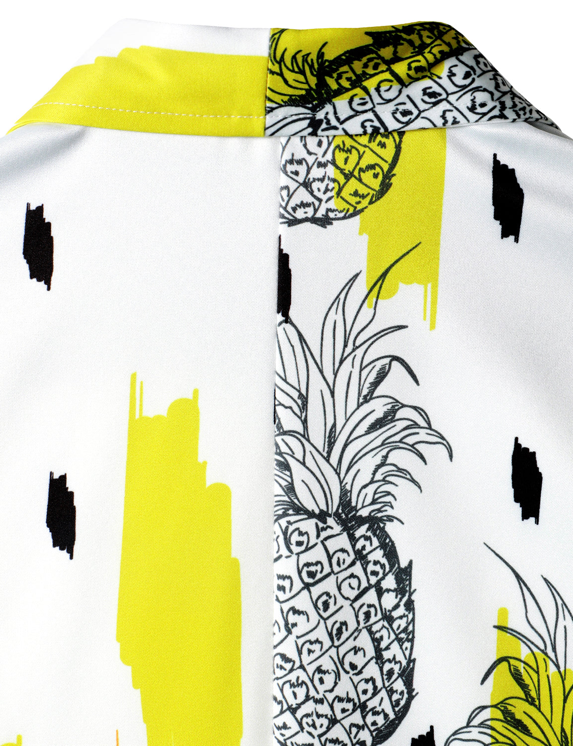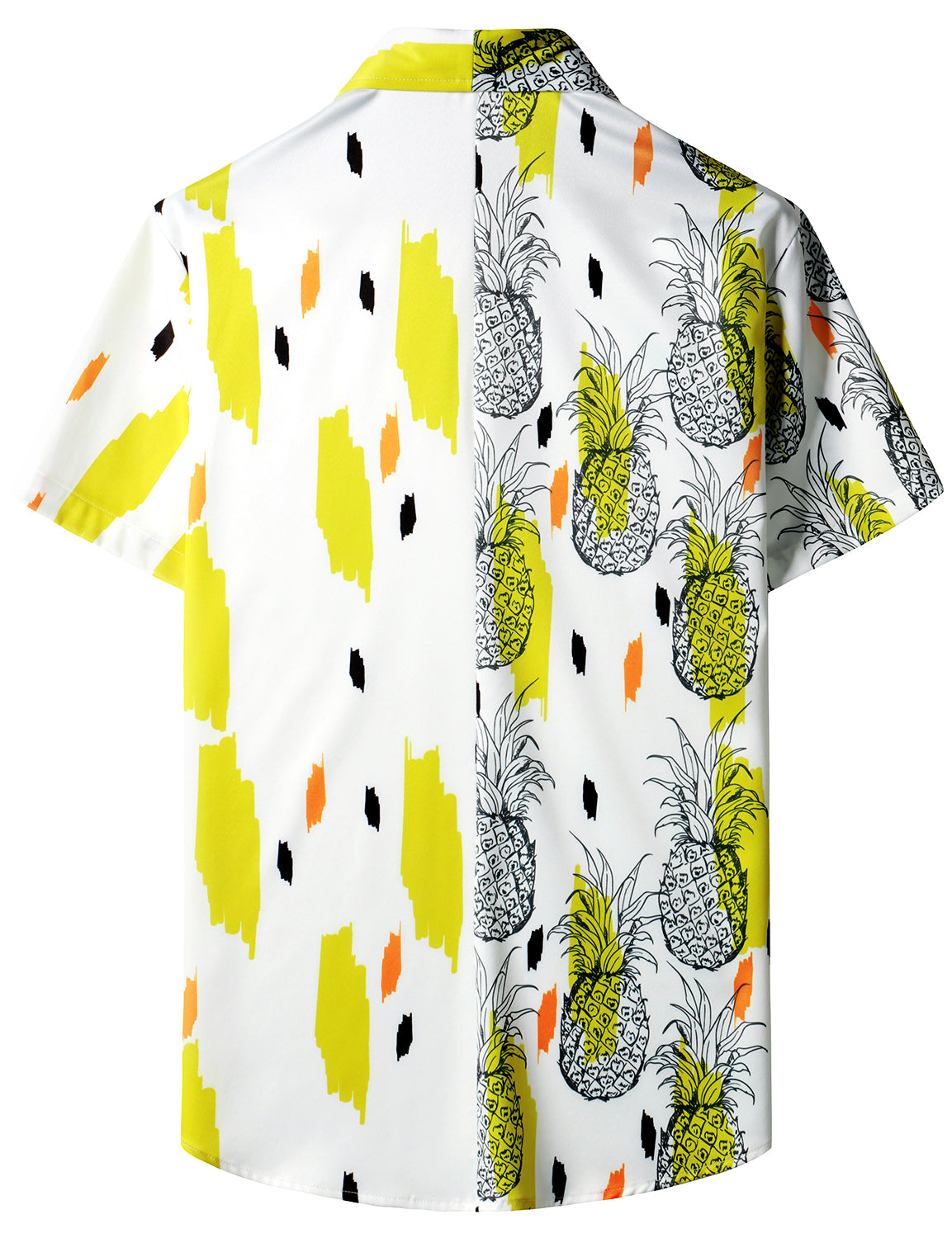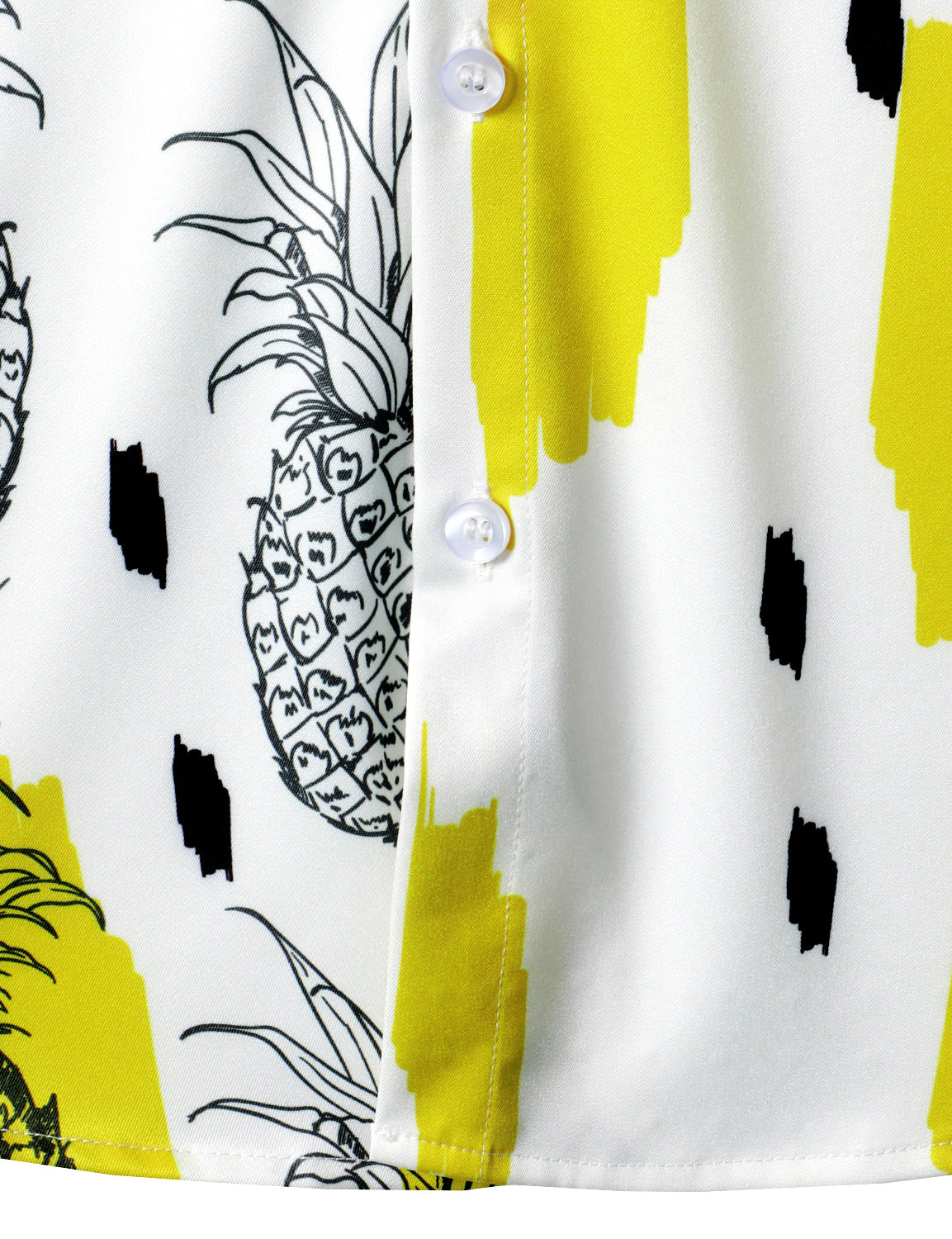 Men's Pineapple Tropical Fruit Print Pocket Hawaiian Button Up Summer Vacation Beach Aloha Short Sleeve Shirt