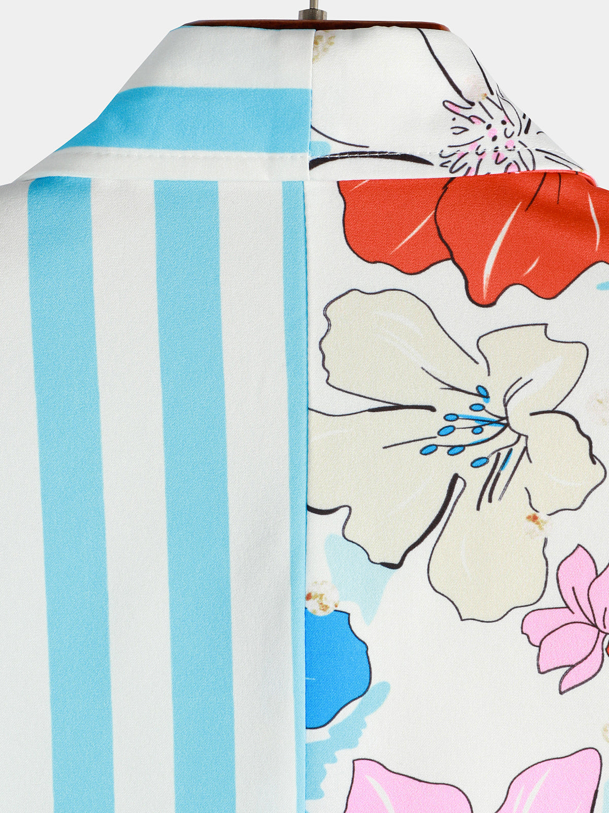 Men's Floral Blue Striped Print Vacation Summer Short Sleeve Beach Button Up Shirt