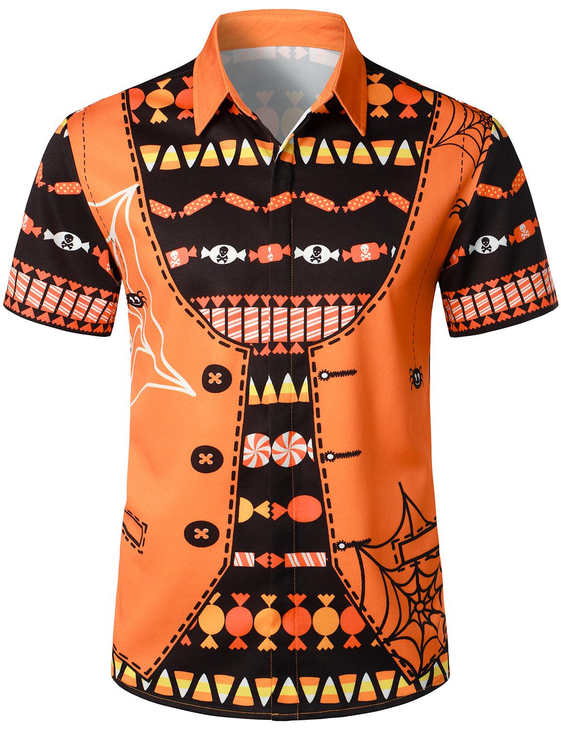 Men's Orange Candy Vest Costume Halloween Themed Party Costume Short Sleeve Shirt