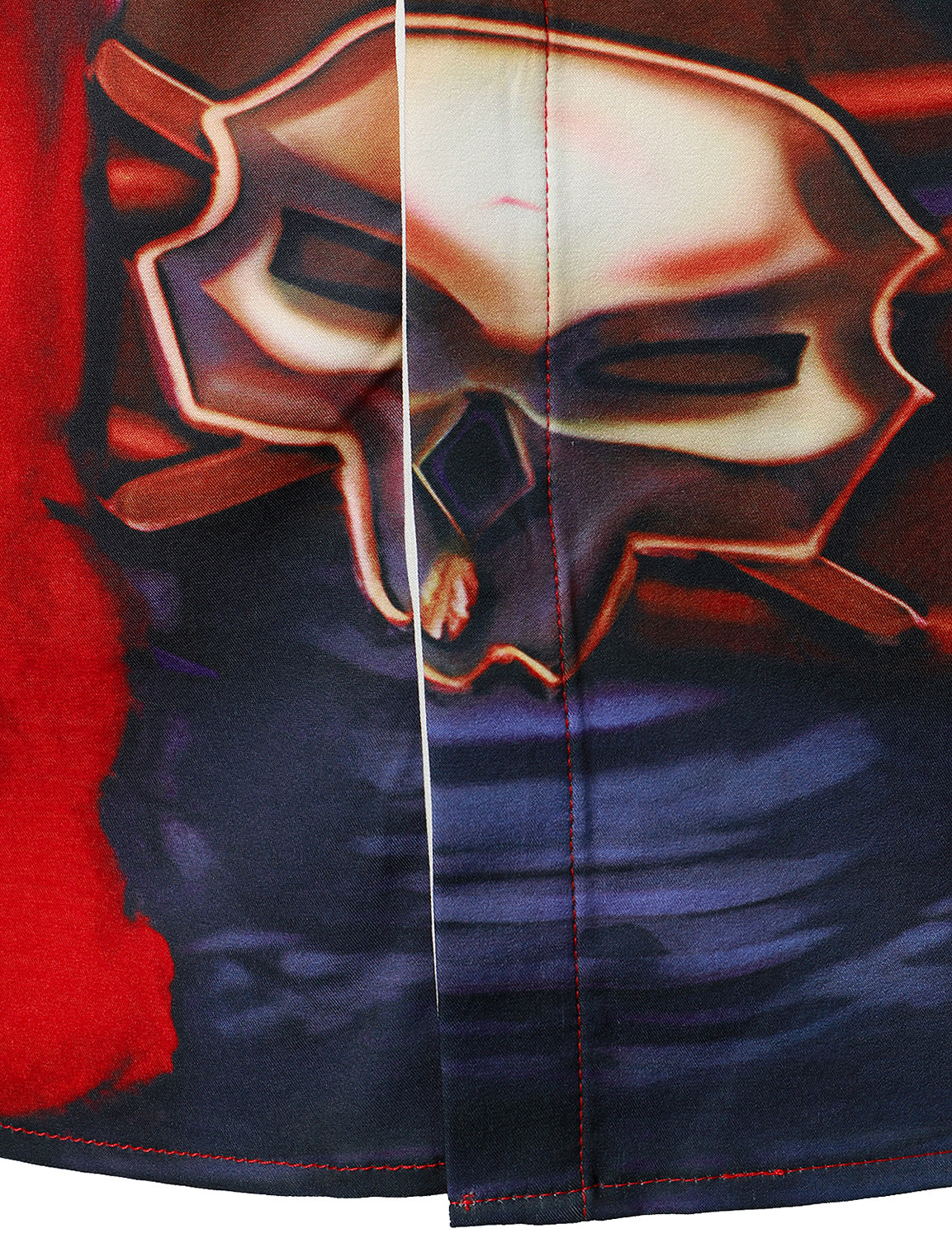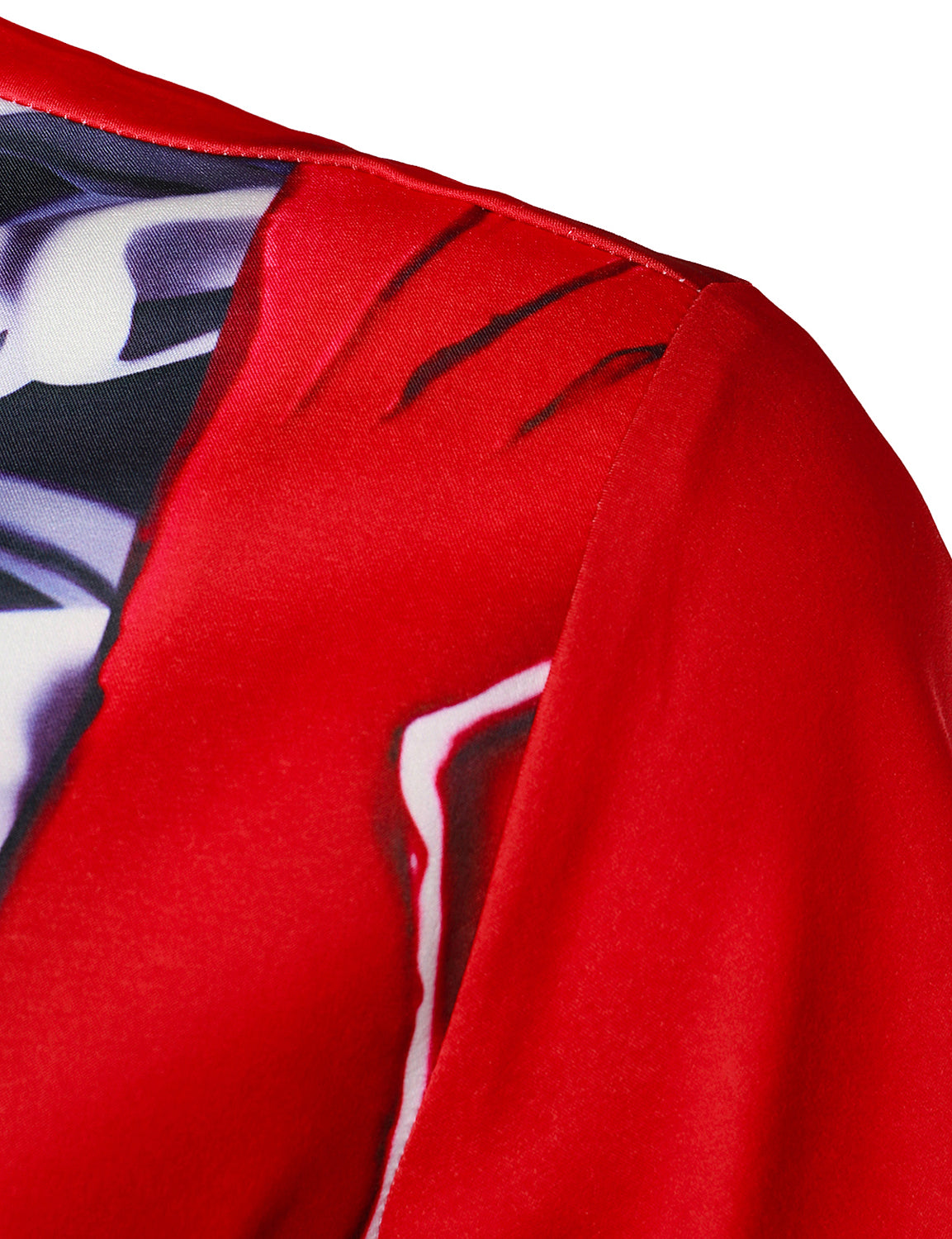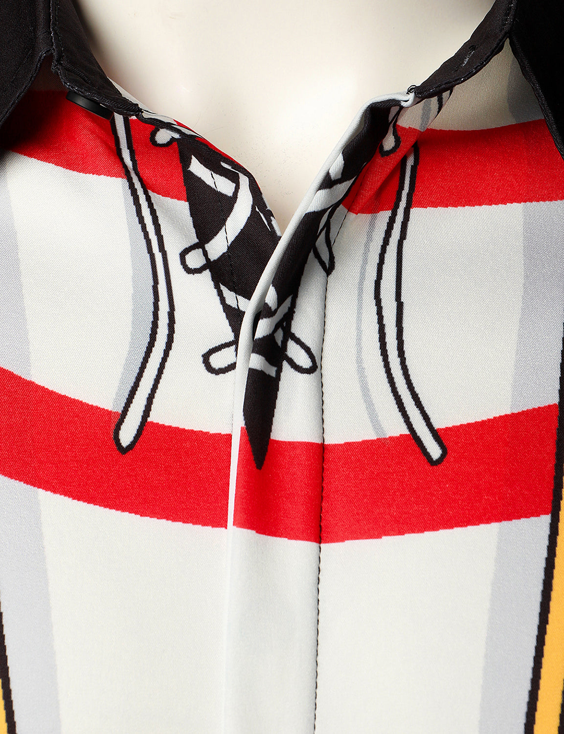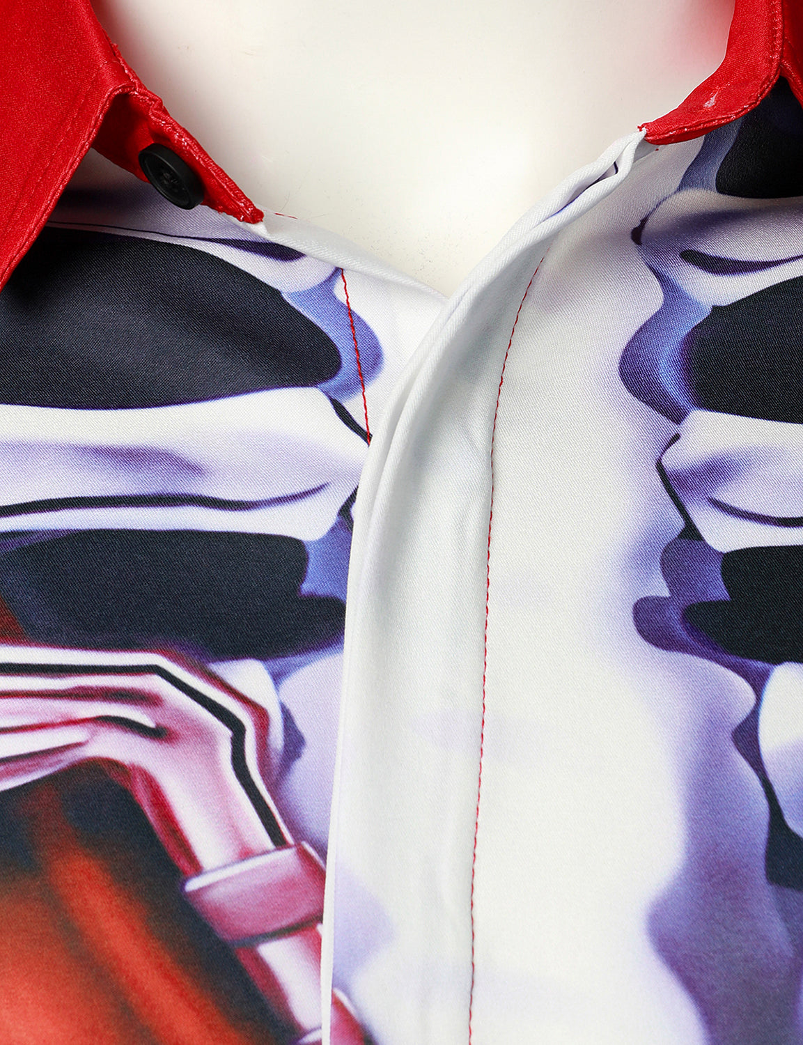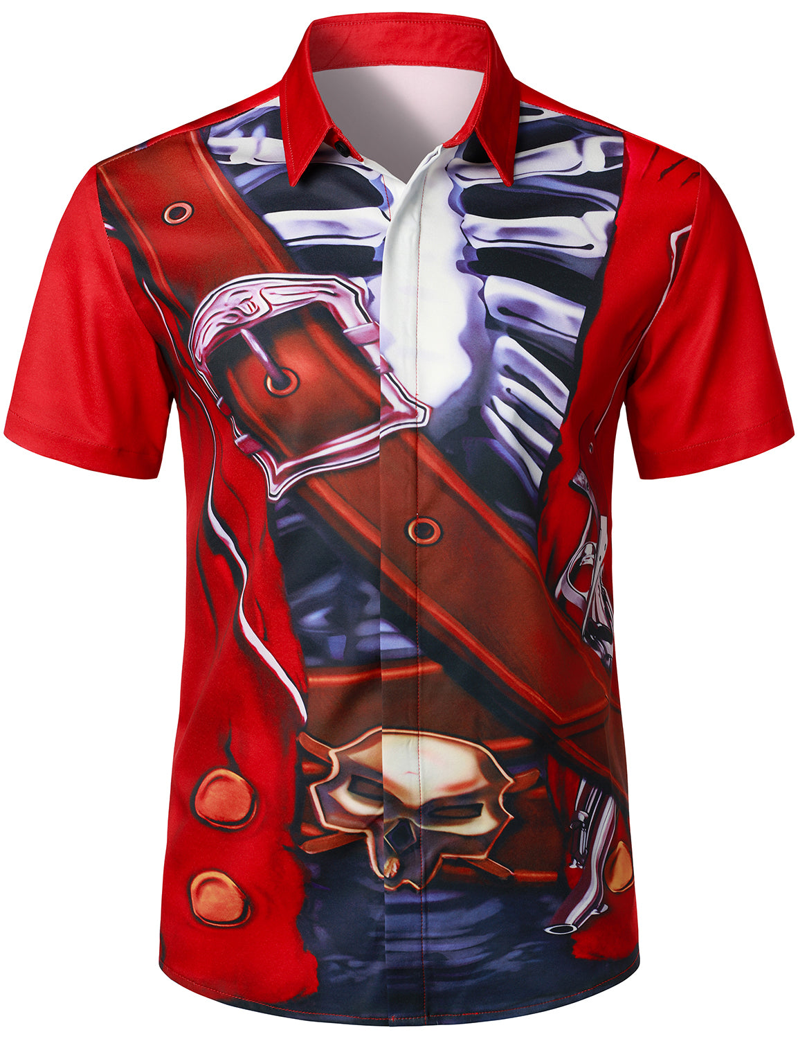 Men's Pirate Skeleton Costume Red Caribbean Cruise Themed Party Halloween Short Sleeve Shirt
