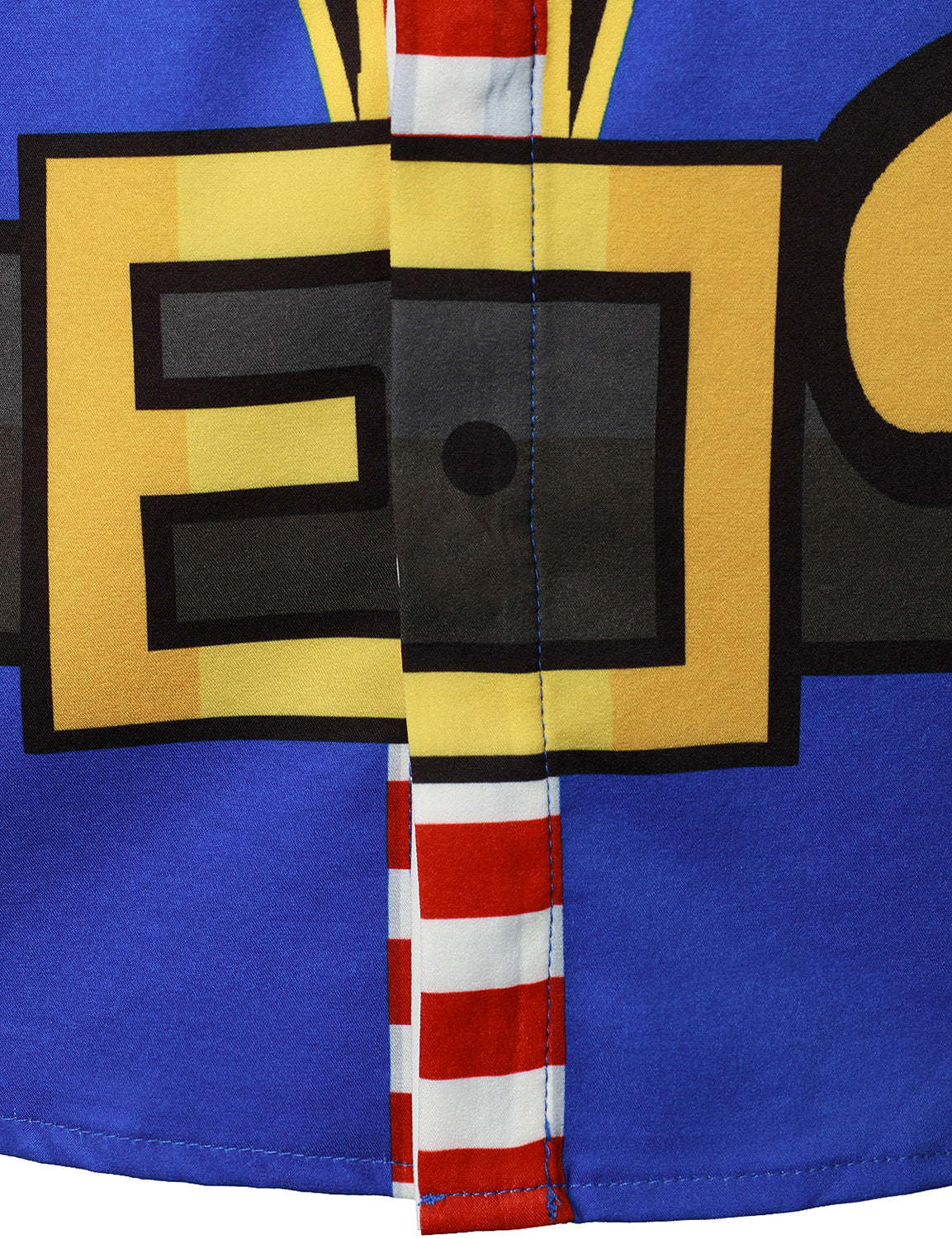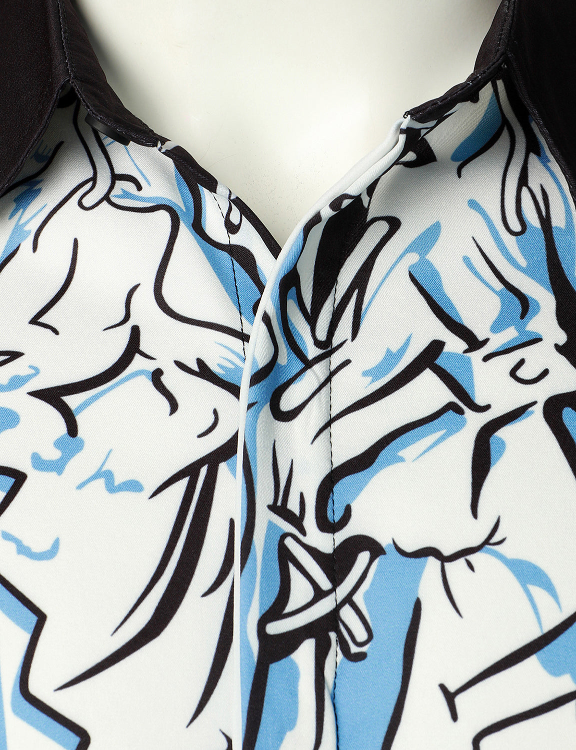 Men's Blue Cocktail Print Casual Long Sleeve Cotton Holiday Parties Shirt