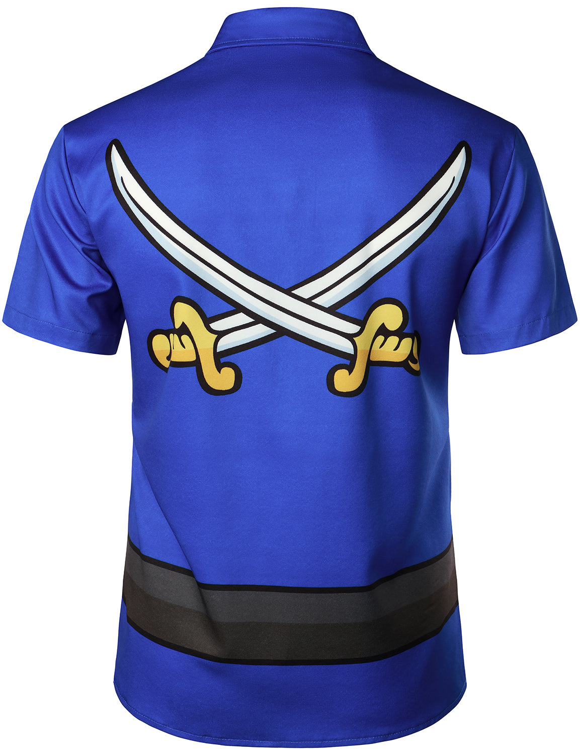 Men's Pirate Skull Costume Art Dark Blue Caribbean Cruise Themed Party Halloween Short Sleeve Shirt