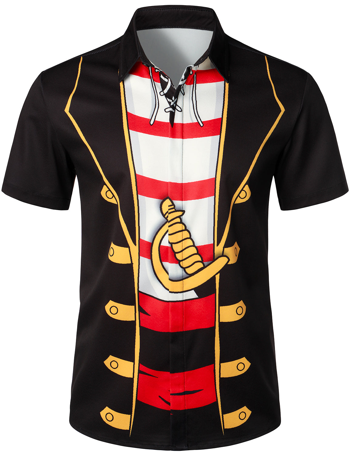 Men's Pirate Themed Party Costume Black Halloween Short Sleeve Shirt