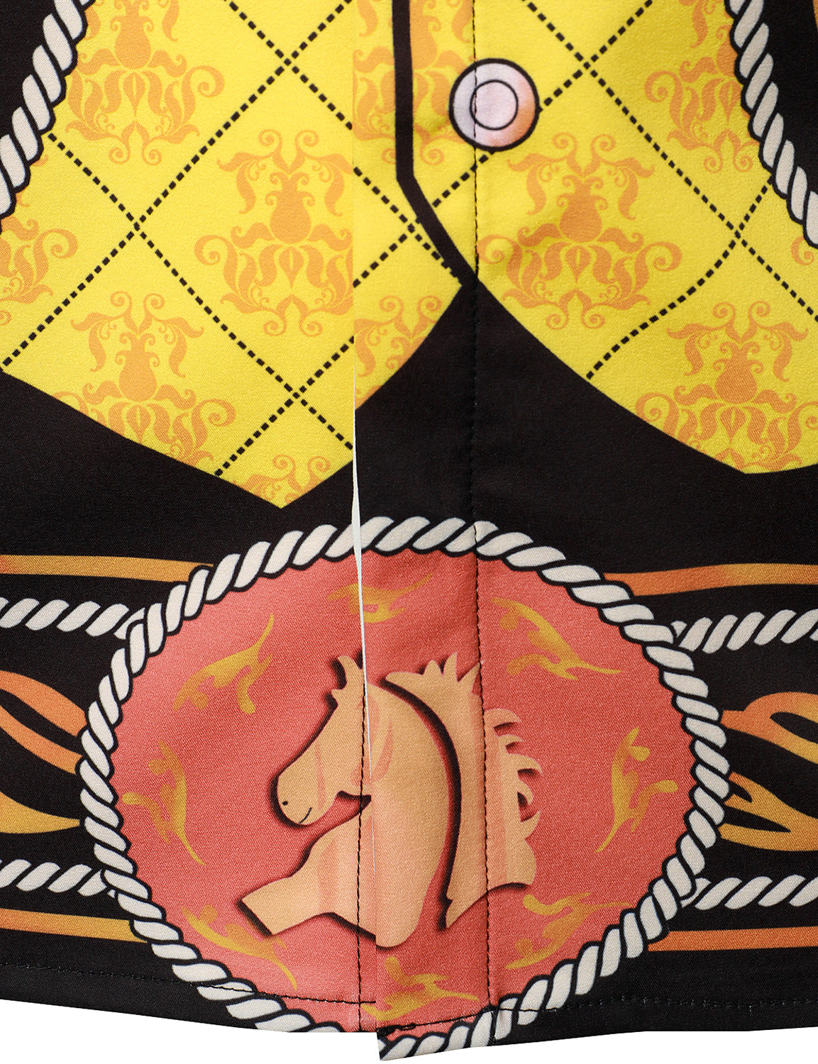 Men's Retro Western Horse Print Cowboy Button Up Hawaiian Holiday Short Sleeve Shirt