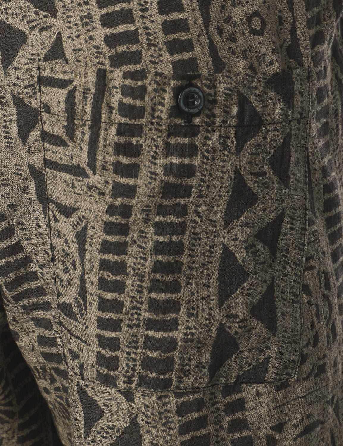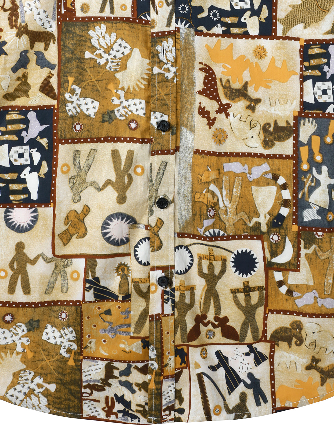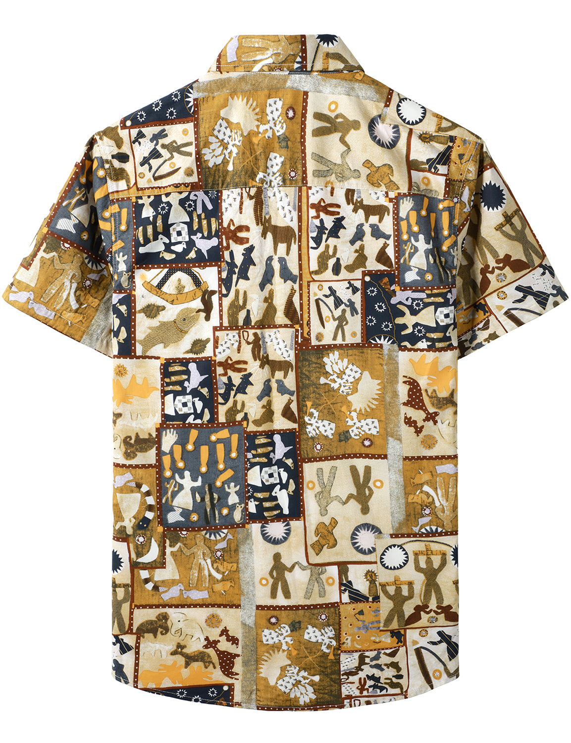 Men's Patchwork Tribal Print Button Up Retro Cotton Short Sleeve Bohemian Brown Summer Shirt
