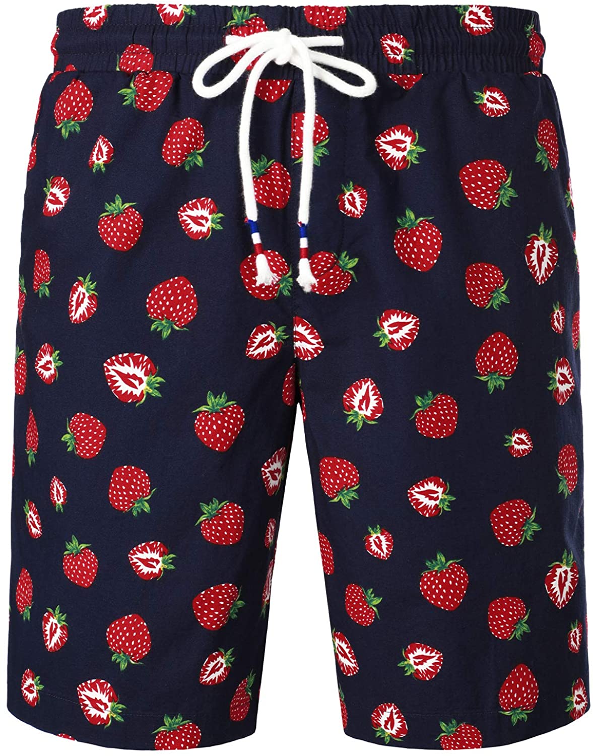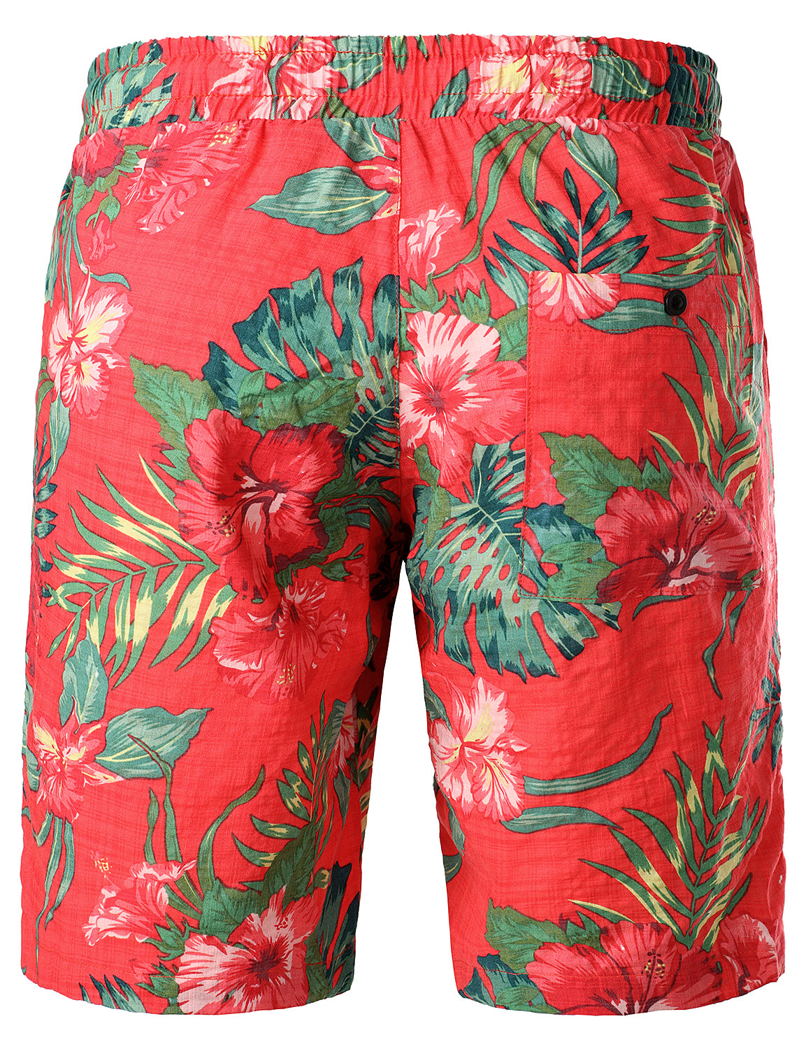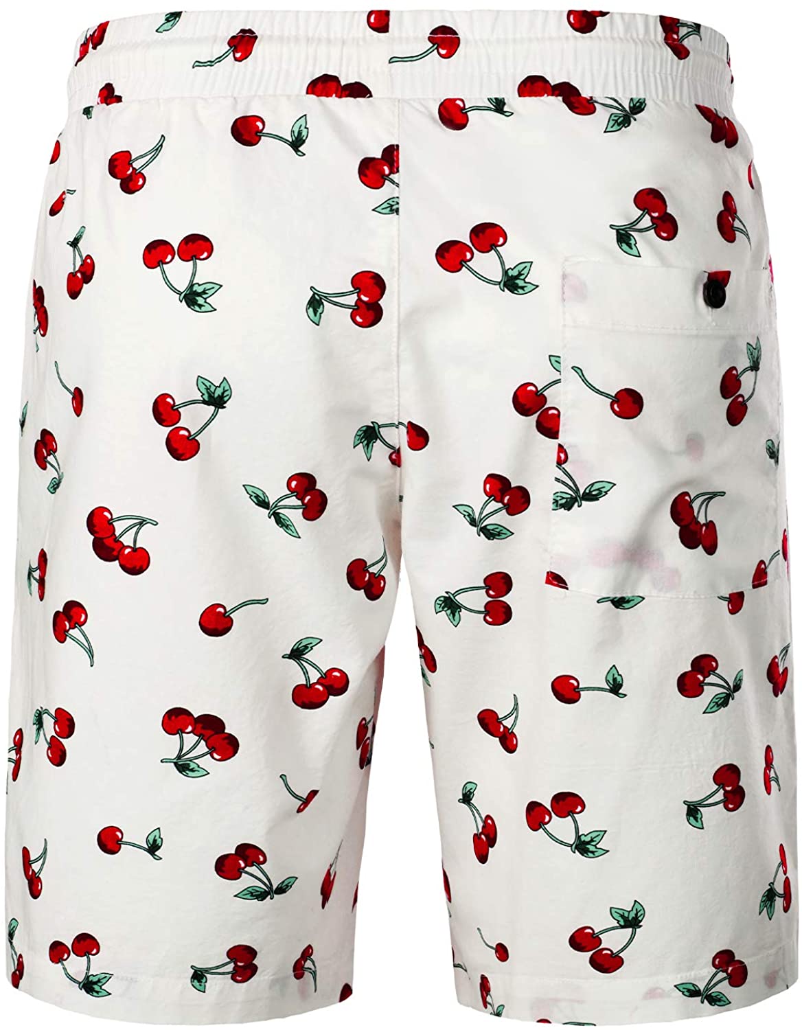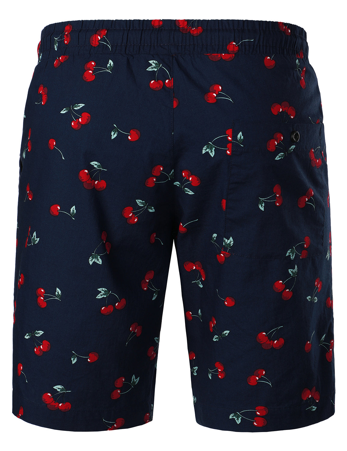 Men's Breathable Cotton Cherry Print Beach Hawaiian Aloha Summer Shorts