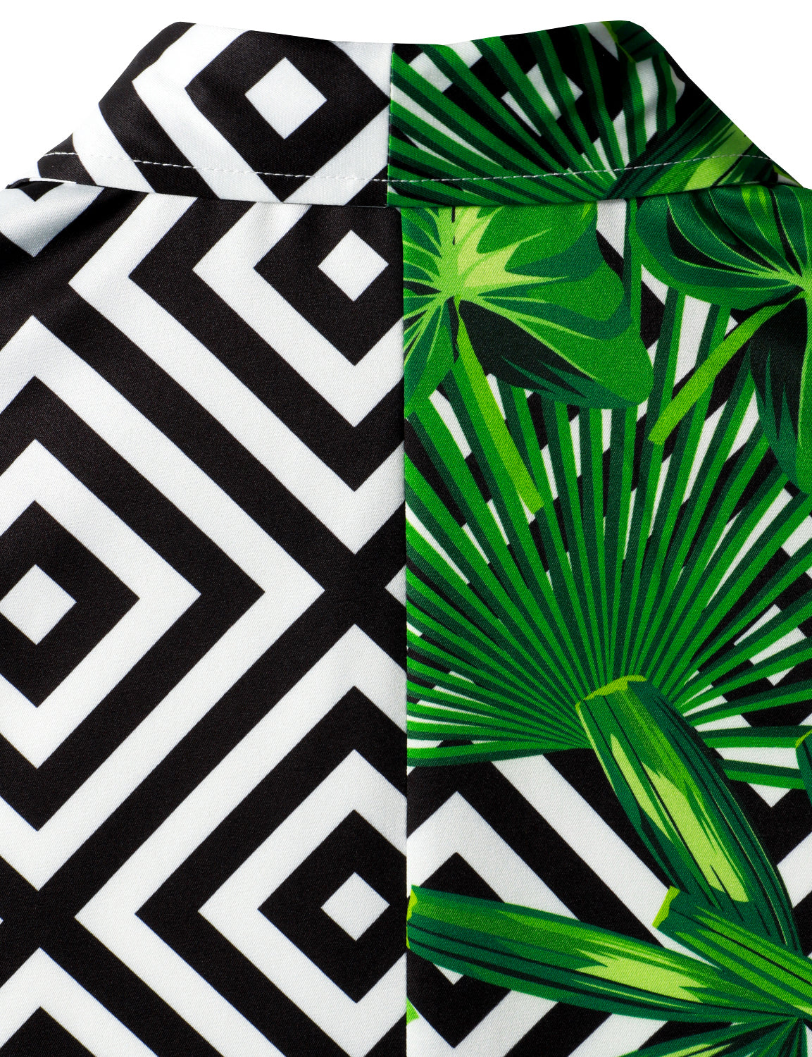 Men's Green Tropical Plant Leaf Geometric Print Vacation Short Sleeve Hawaiian Shirt