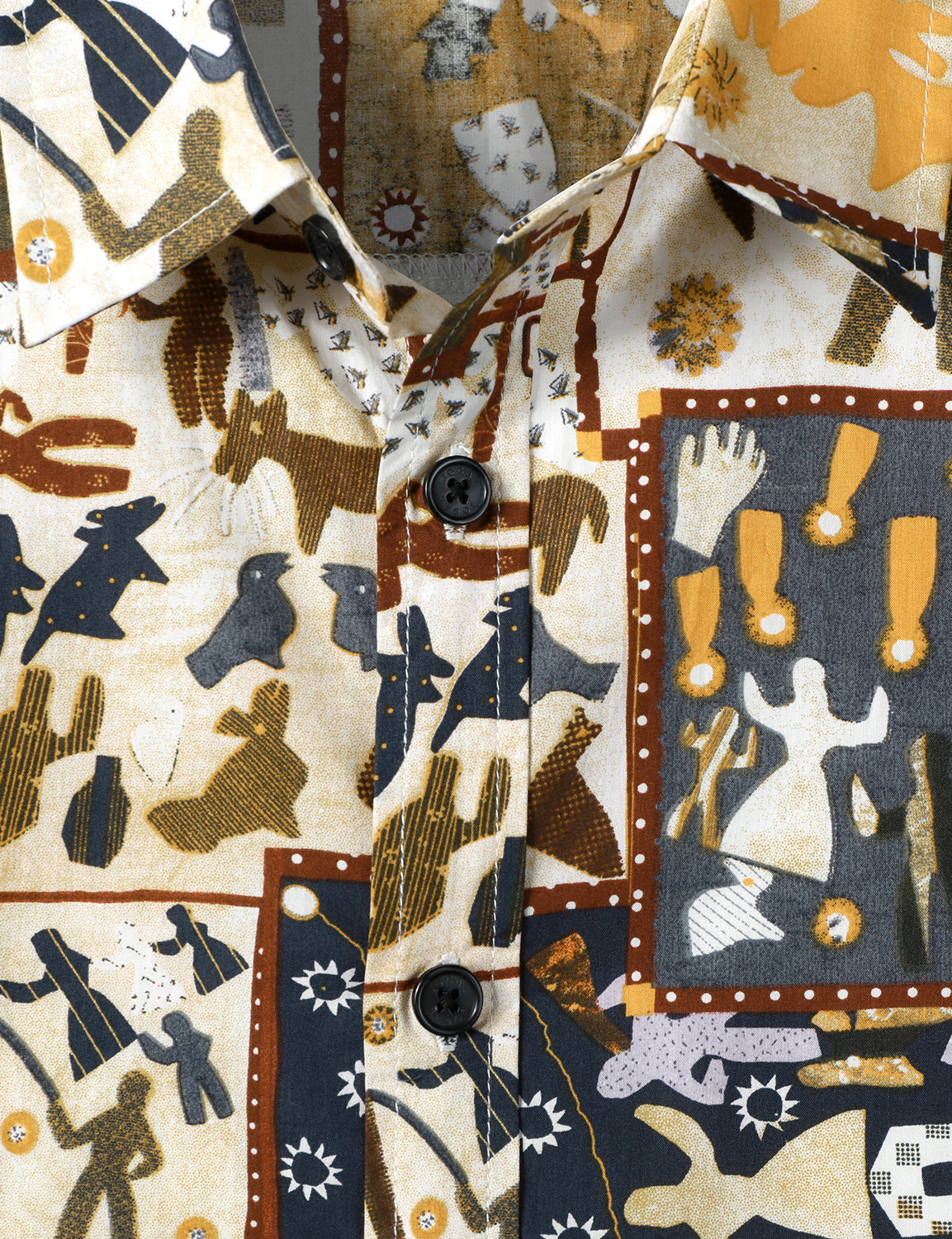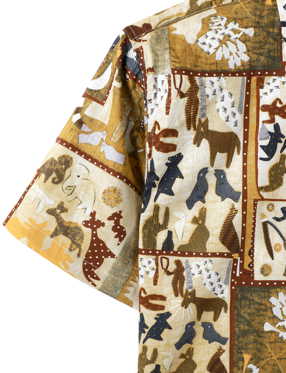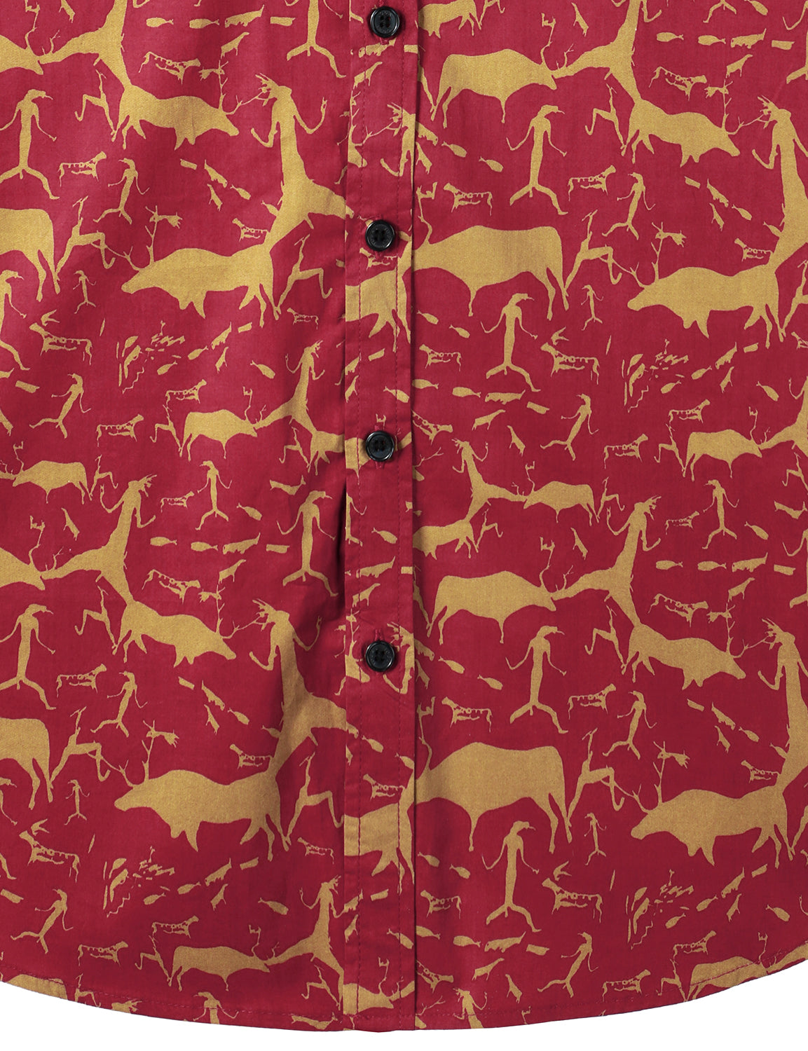Men's Cotton Vintage Animal Print Red Retro Tribal Button Up Short Sleeve Shirt