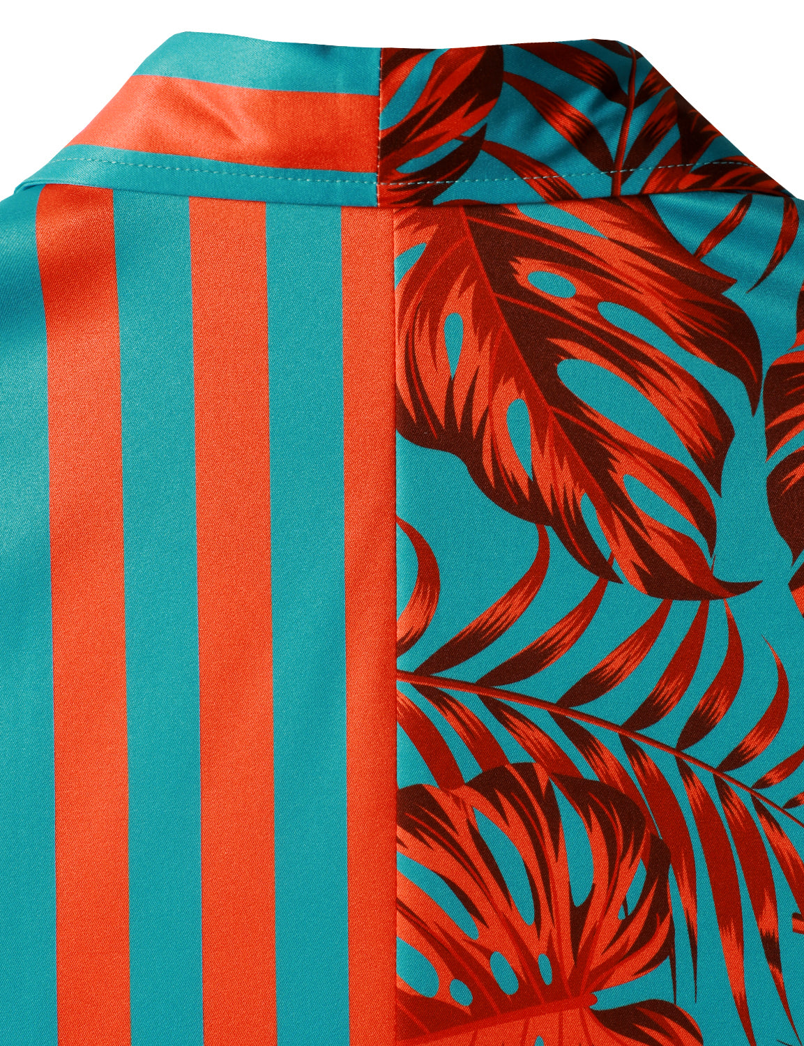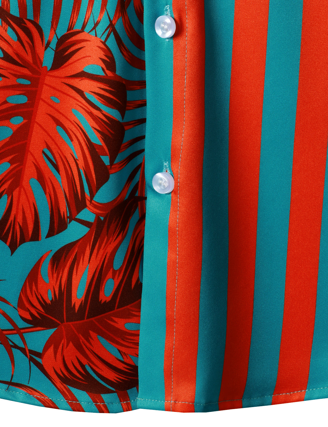 Men's Tropical Plant Leaf And Striped Print Hawaiian Short Sleeve Aloha Shirt