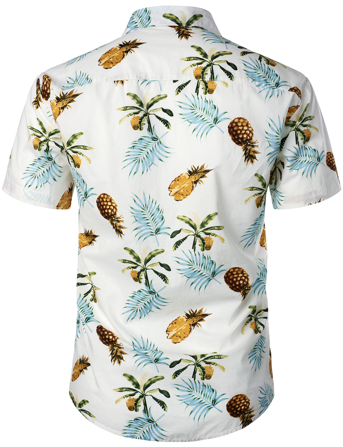 Men's Tropical Pineapple Coconut Tree Print Holiday Short Sleeve Shirt
