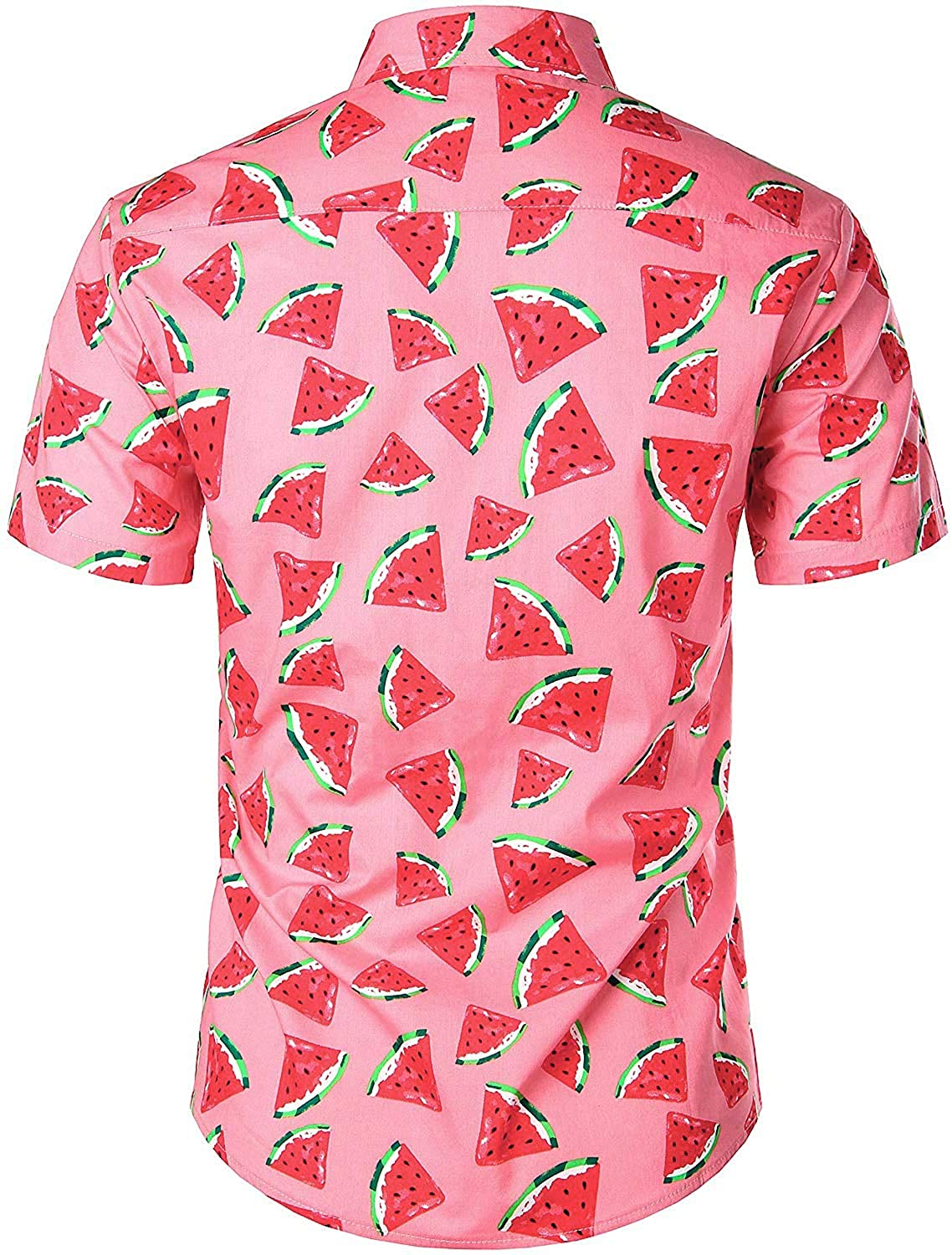 Men's Watermelon Print Cotton Hawaiian Pink Summer Matching Shirt and Shorts Set