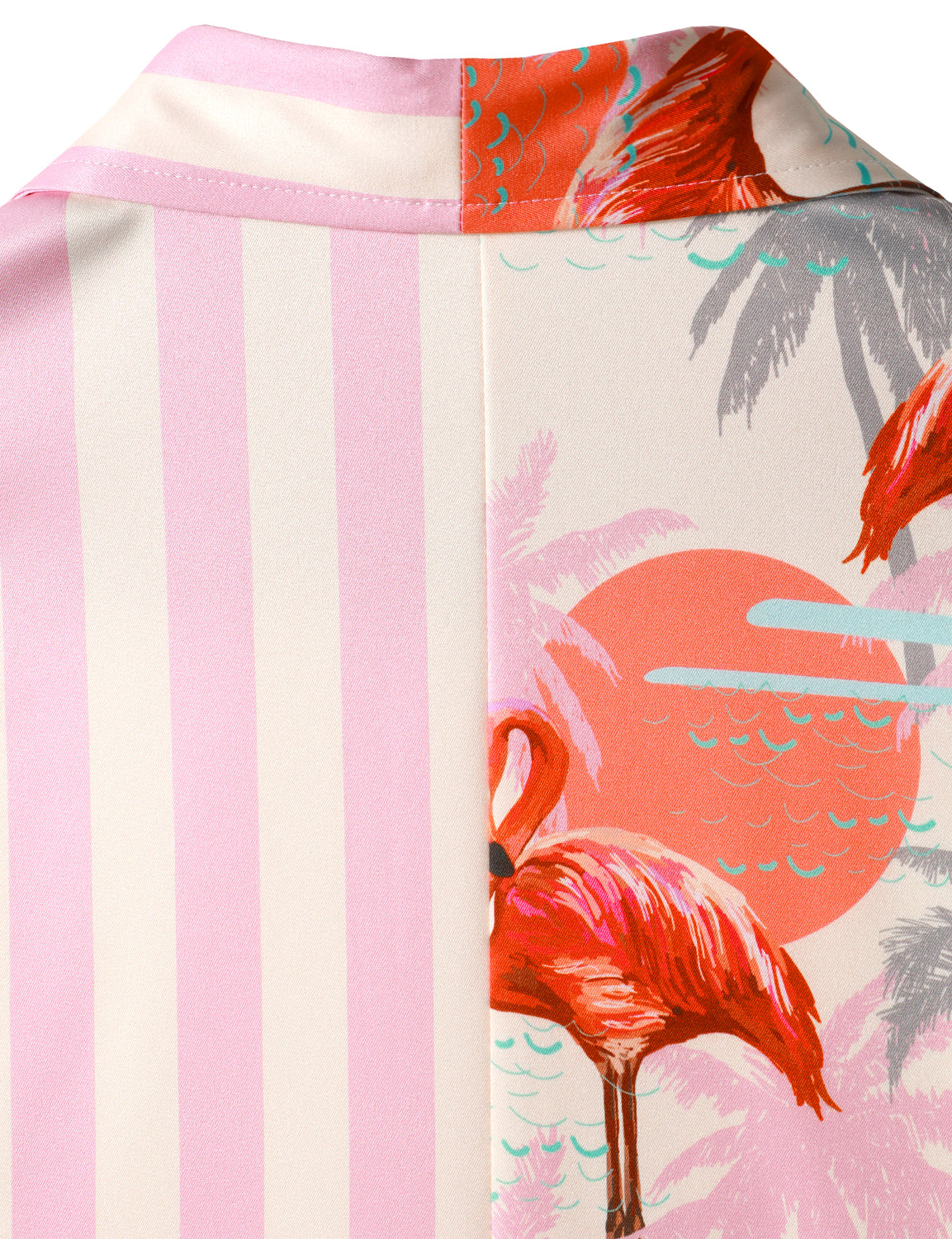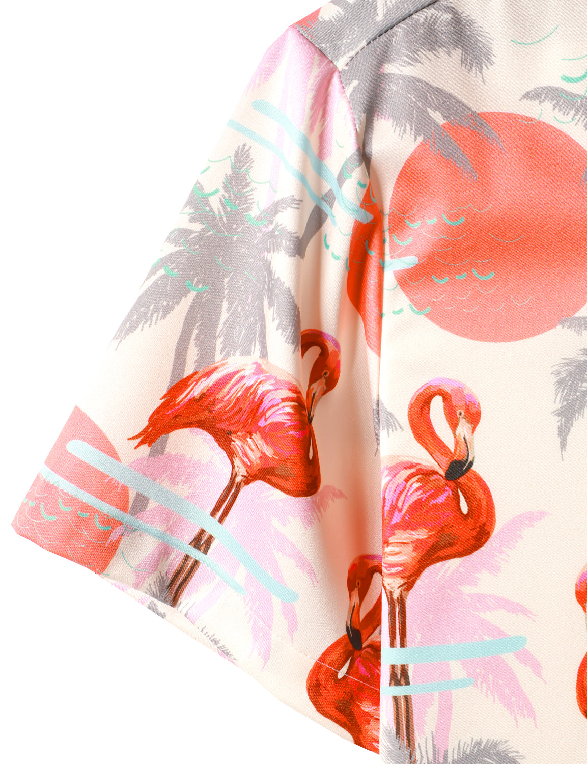 Men's Tropical Palm Tree Flamingo Print Striped Pink Animal Print Top Short Sleeve Shirt