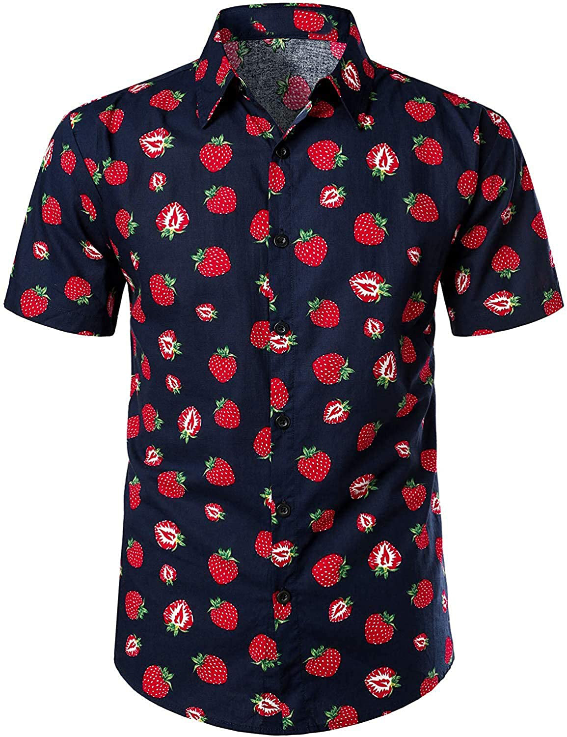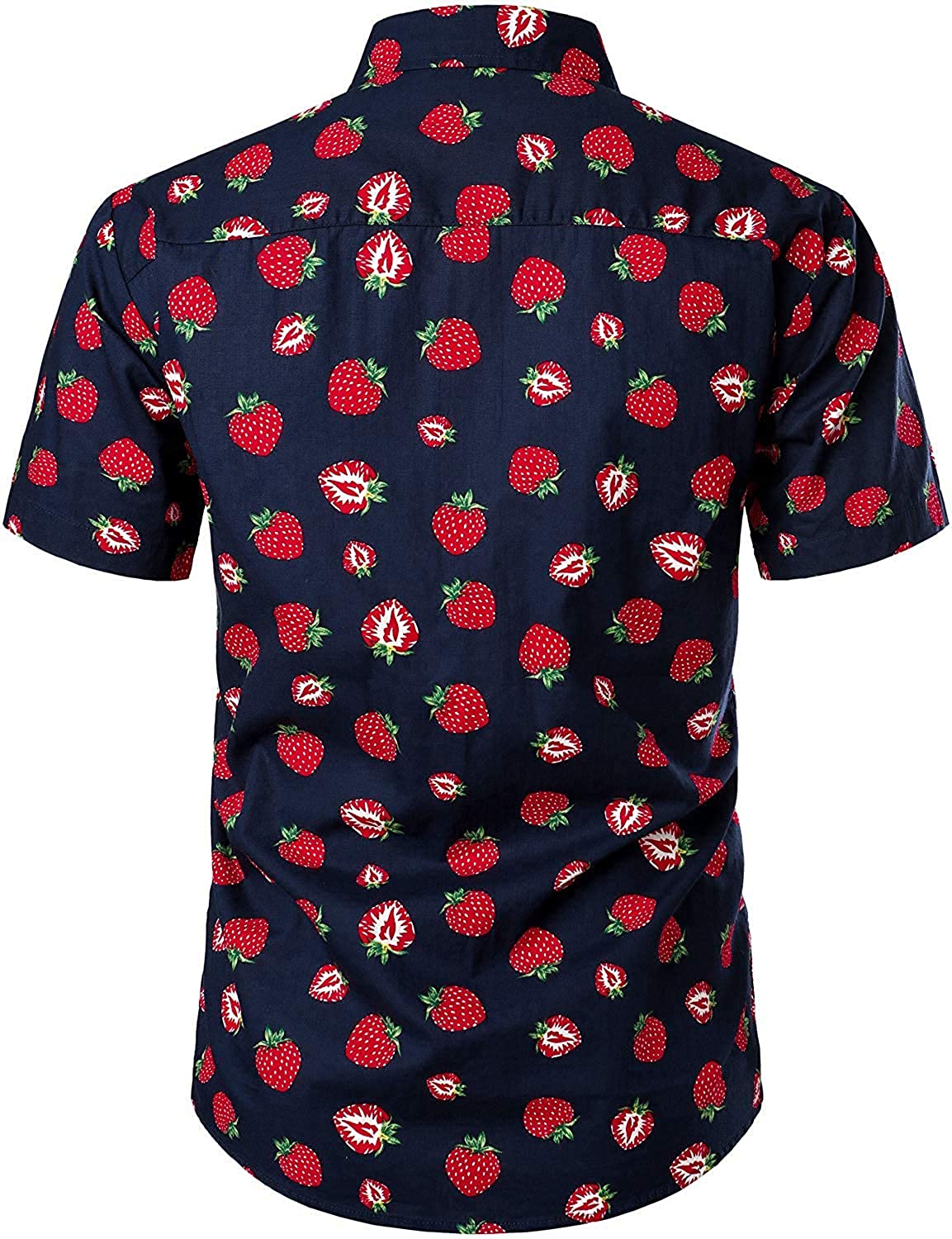 Men's Casual Cotton Strawberry Fruit Cute Suit Matching Shirt and Shorts Set