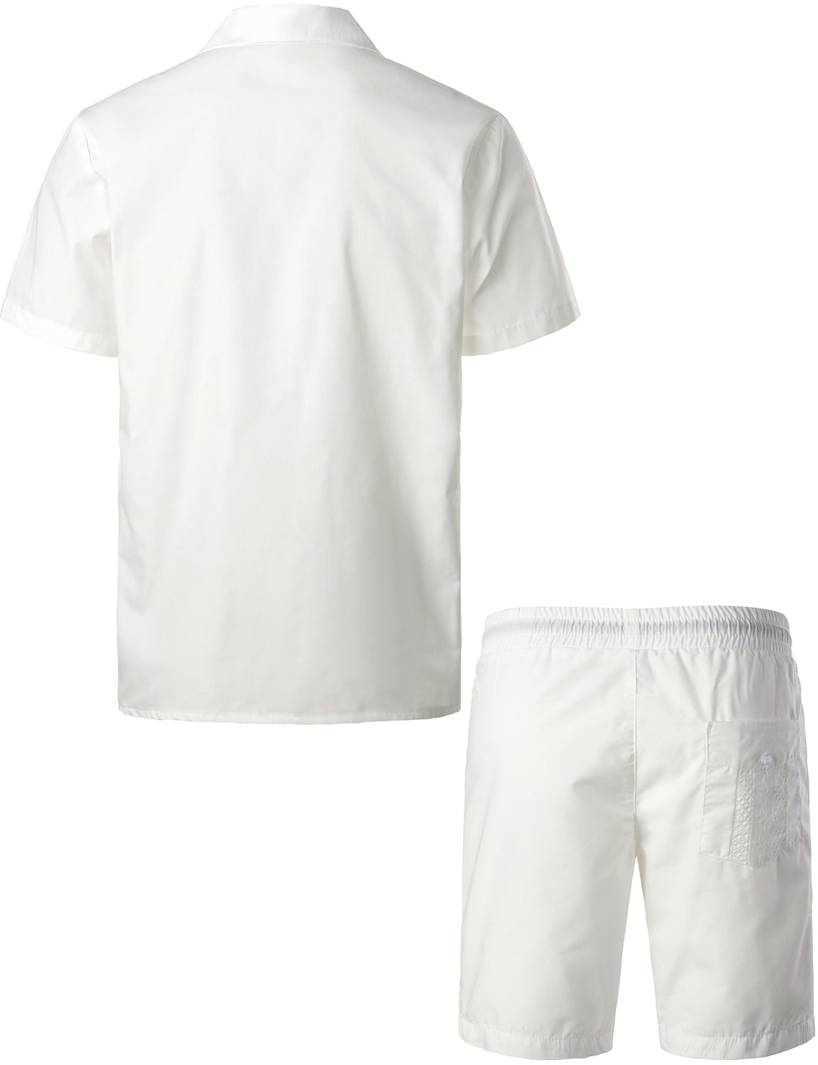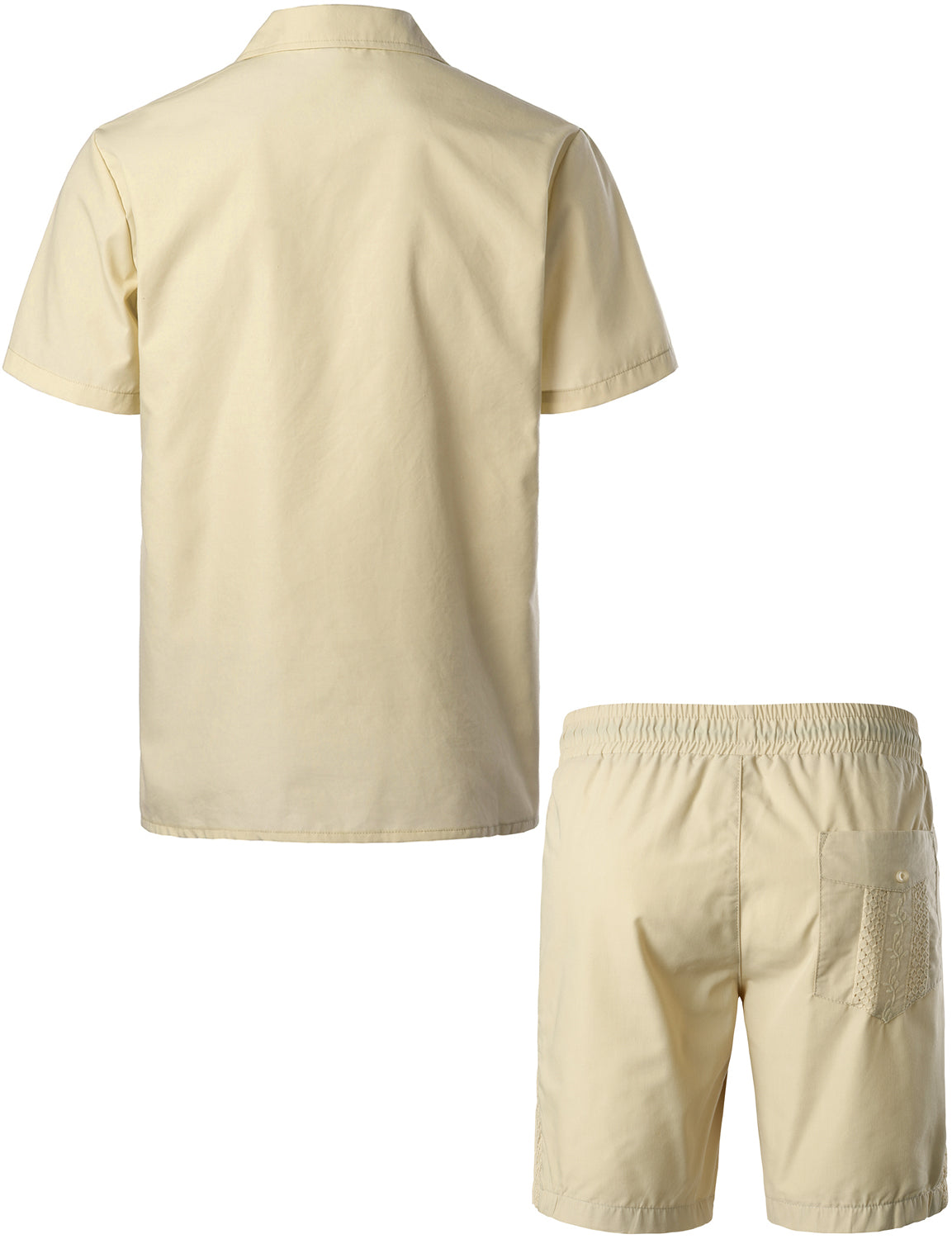 Men's Plus Size Short Sleeve Button Down Cuban Guayabera Matching Shirt and Shorts Set