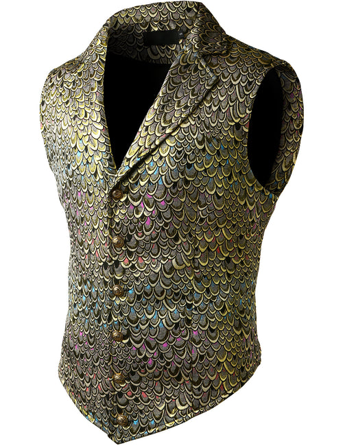 Mens Victorian Suit Vest Steampunk Gothic Waistcoat Golden Vest