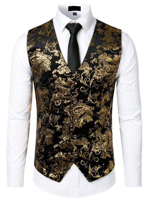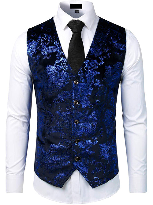Mens Hipster Metallic Paisley Printed Single Breasted V-Neck Suit Vest/Tuxedo Waistcoat