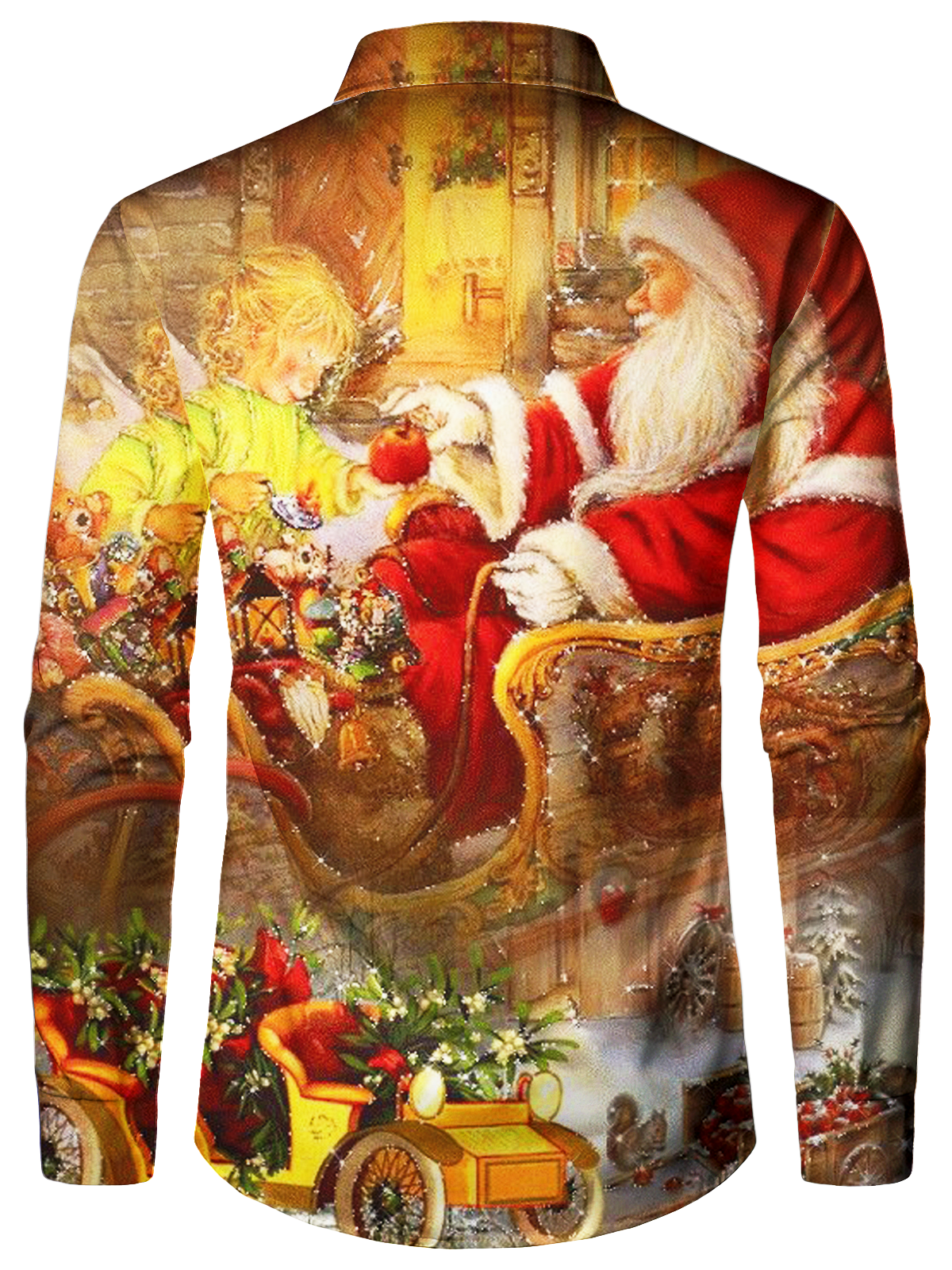 Men's Vintage Christmas Santa Gifts Button Up Long Sleeve Shirt