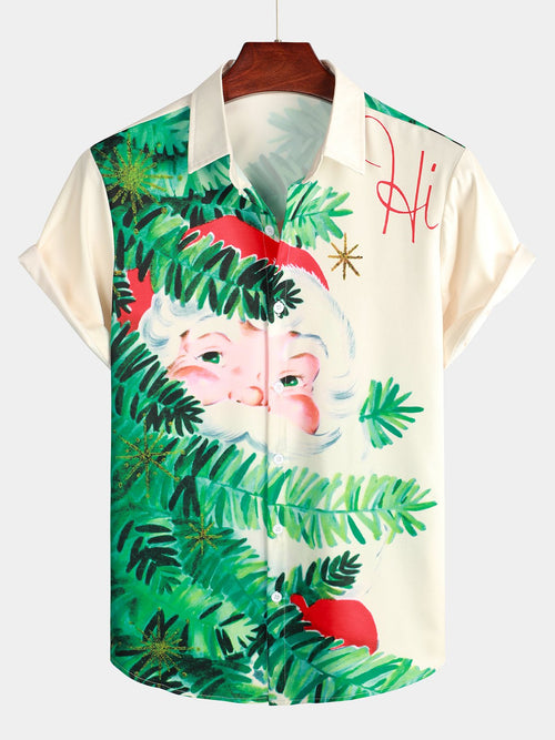Men's Green Ugly Christmas Santa Print Claus Short Sleeve Shirt