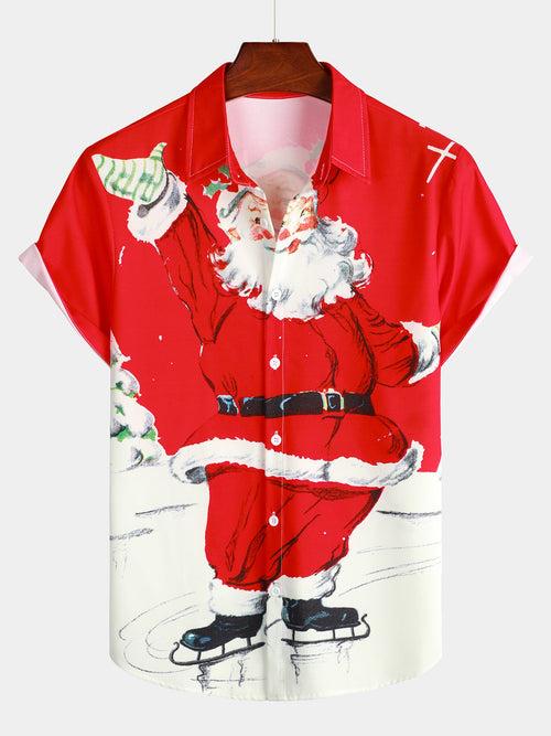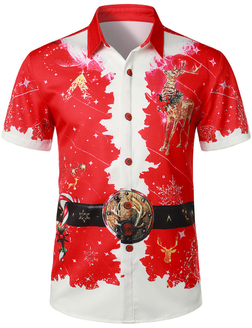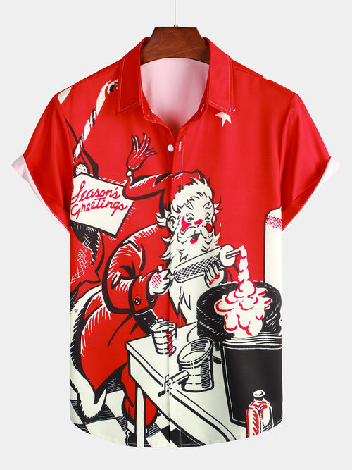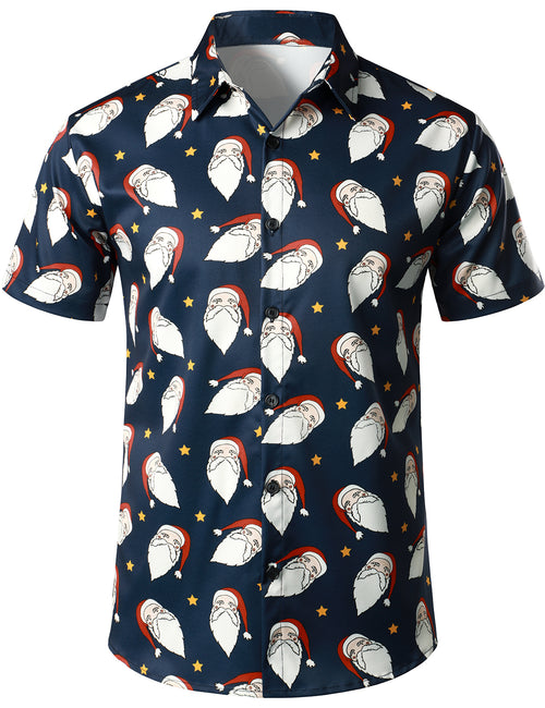 Men's Santa Hat Ugly Christmas Print Short Sleeve Shirt