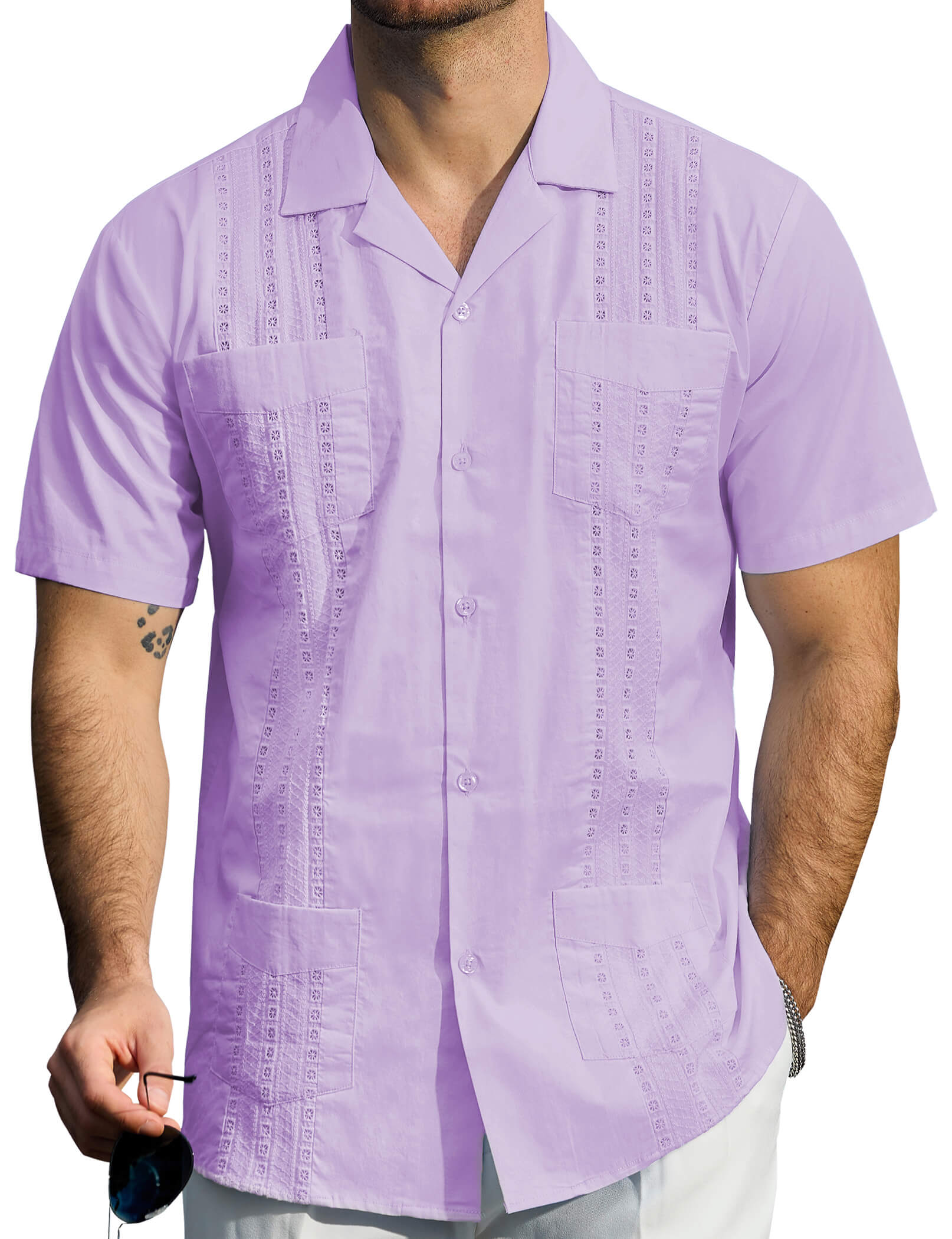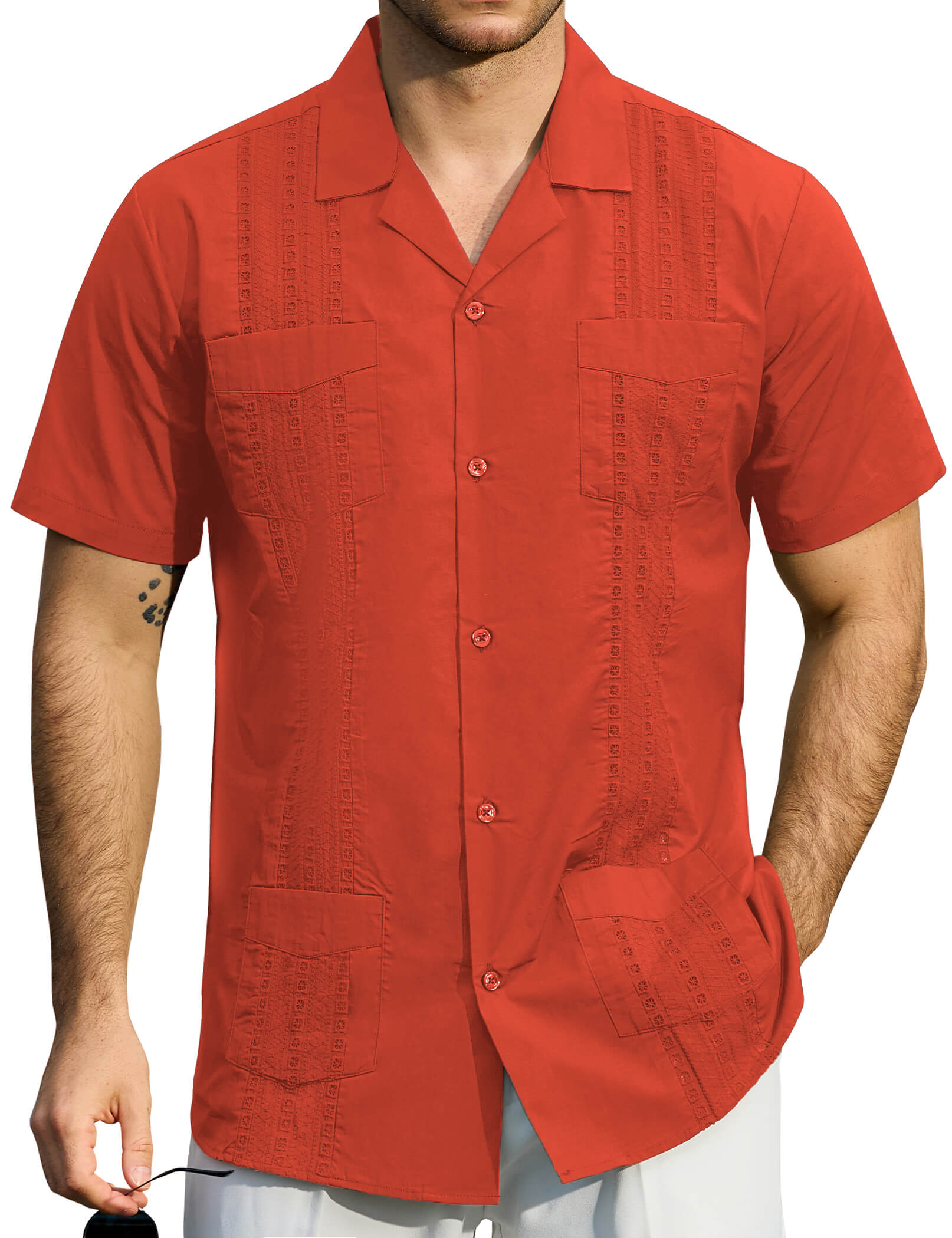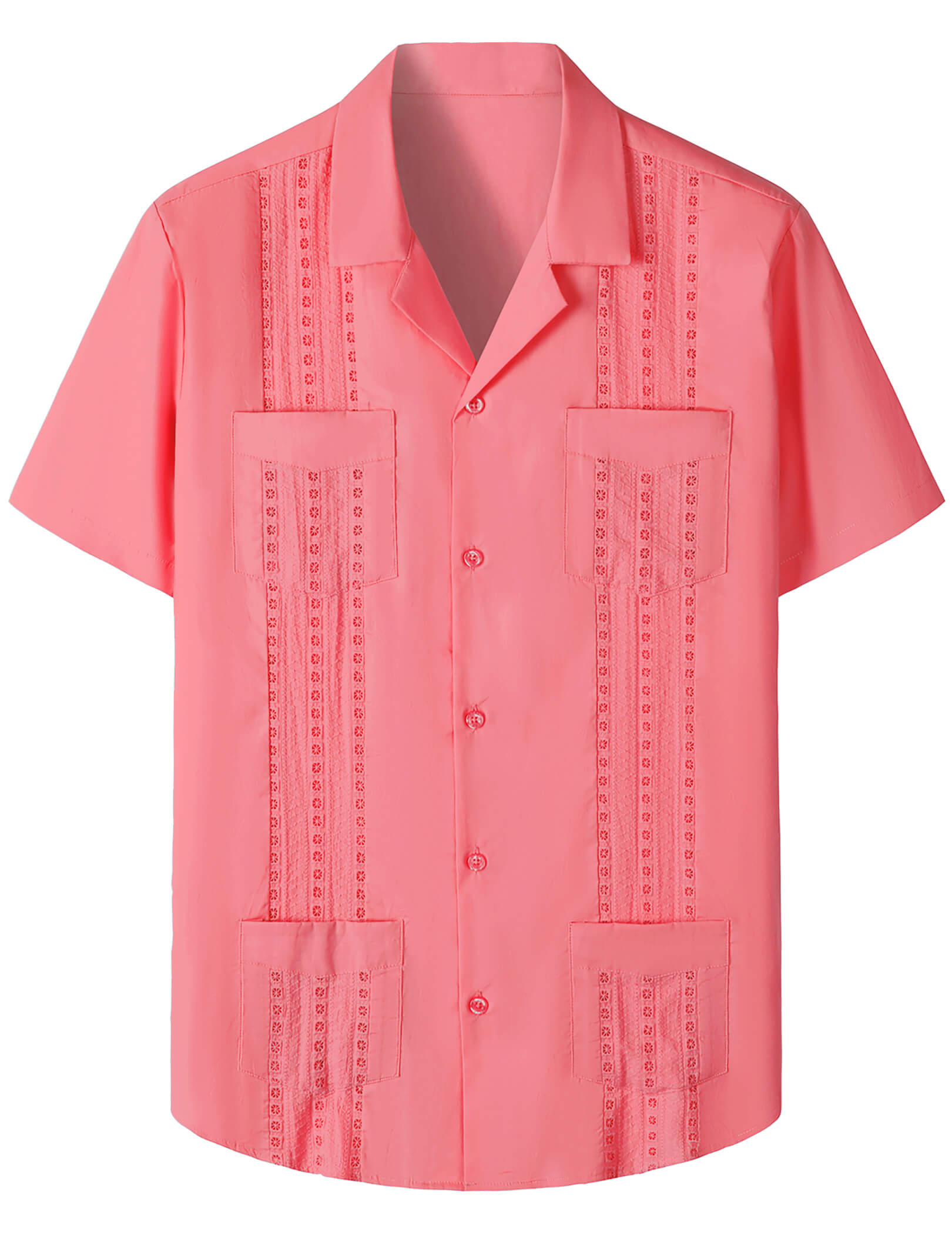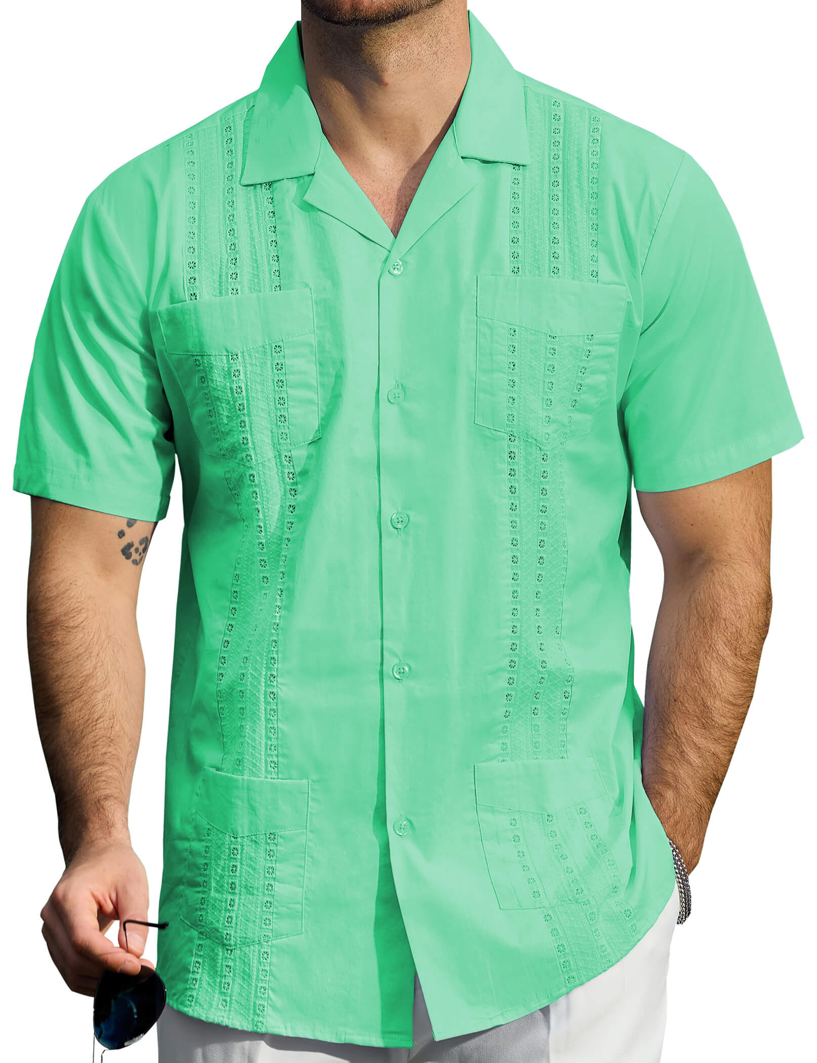 Men's Guayabera Cuban Summer Casual Button Beach Short Sleeve Shirt