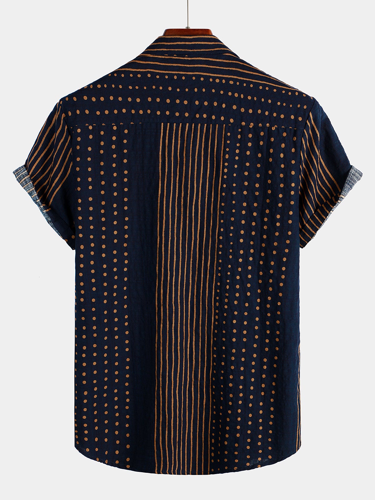 - Button-front shirt featuring spread collar and short sleeve.