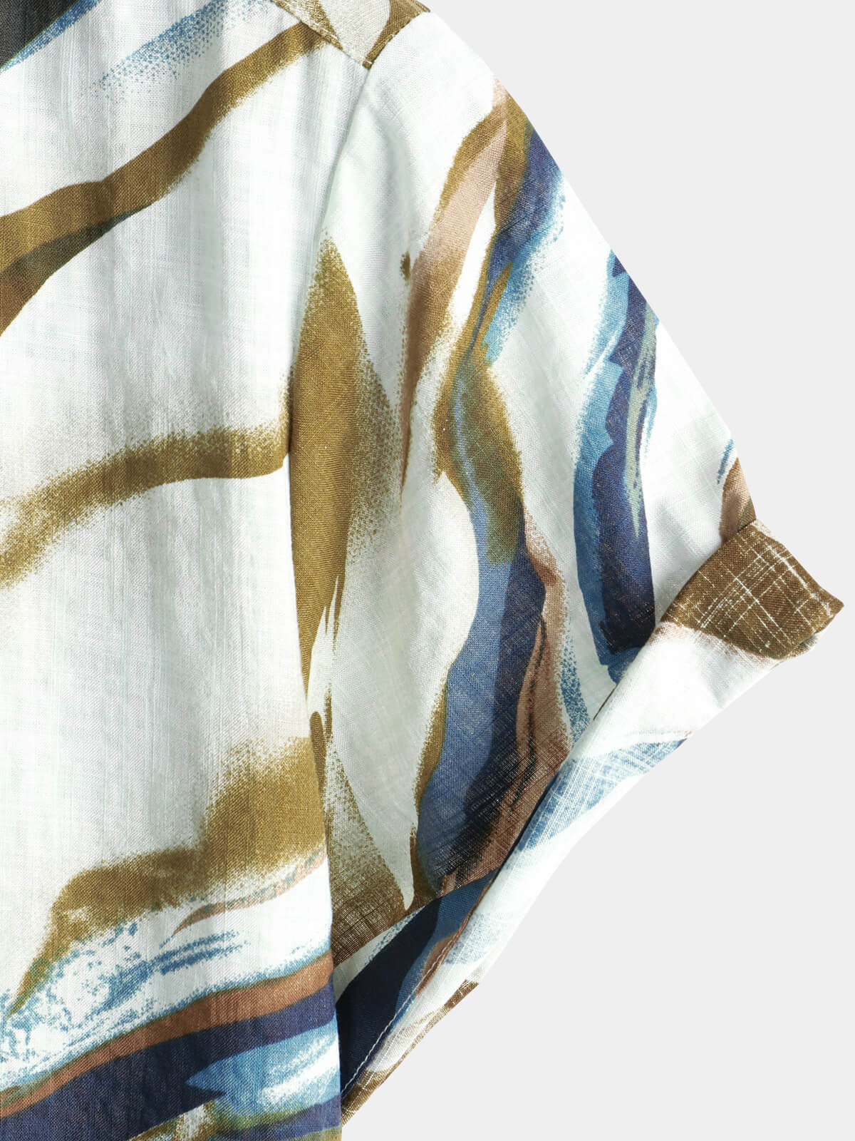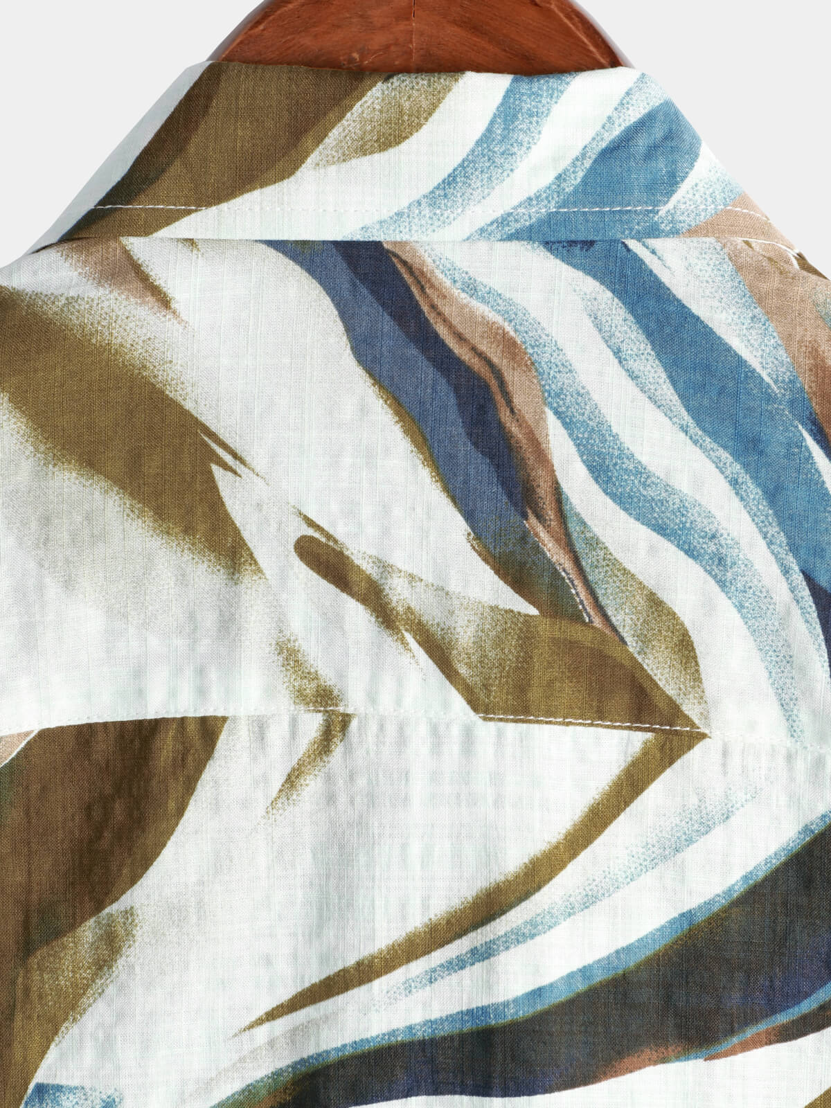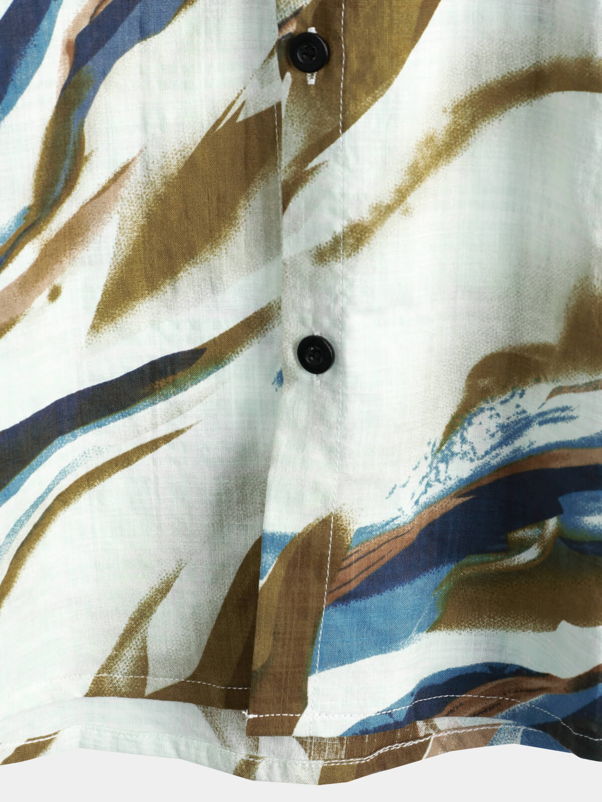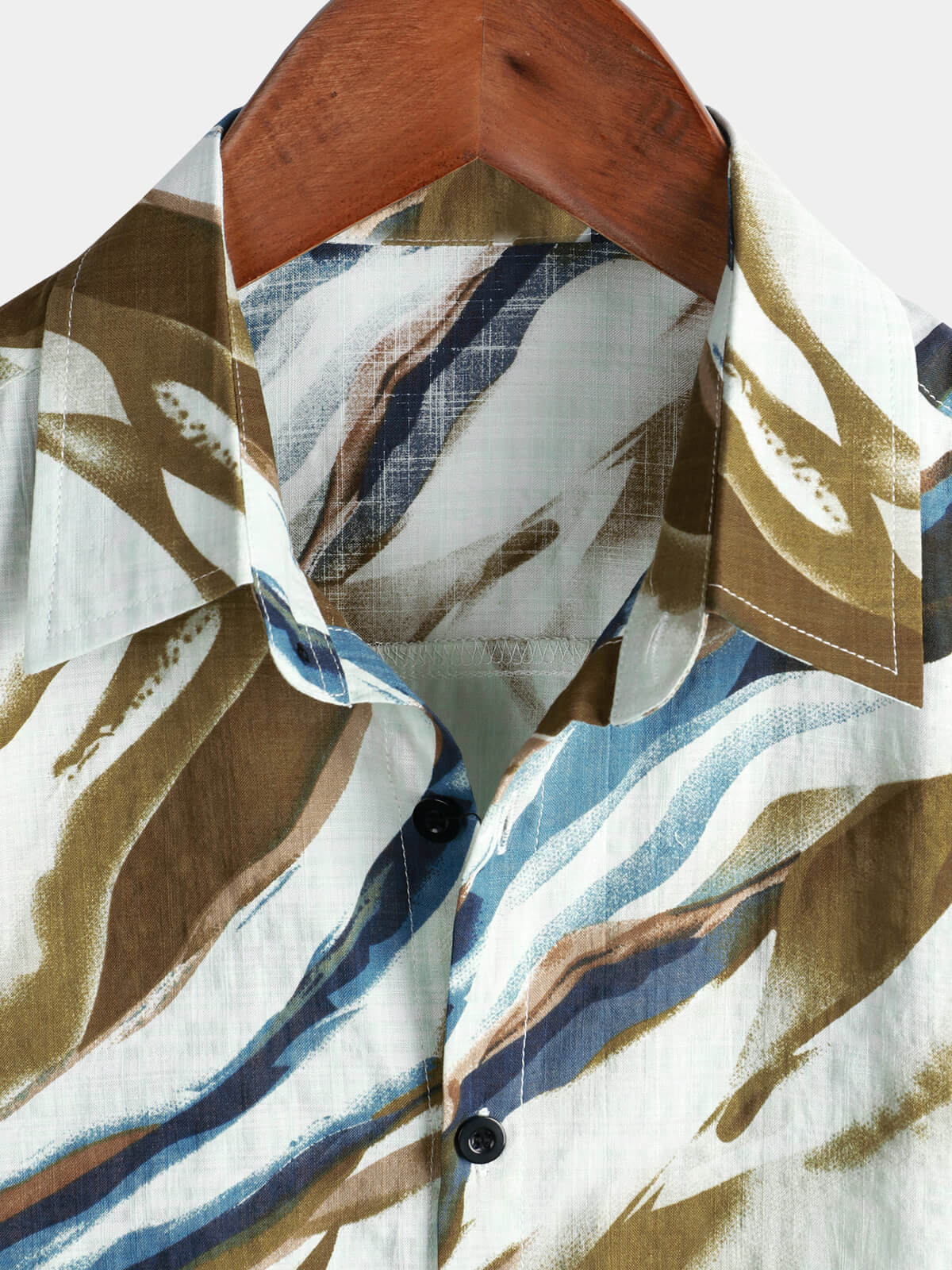 Men's Abstract Graphic Print Cotton Summer Short Sleeve Button Up Shirt